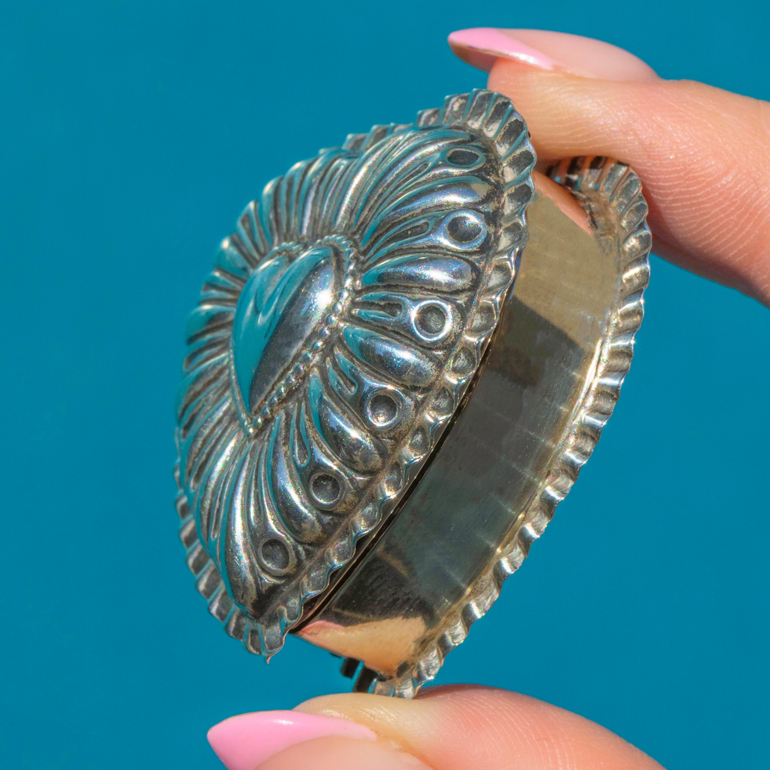 Akin to the tasty treat that is the jammy dodger biscuit, this Edwardian Silver repoussé heart trinket box is fun and feminine! The exquisite repoussé craftsmanship displayed in this Silver trinket box creates a feast of textures and shapes that are just as in trend in the modern day.