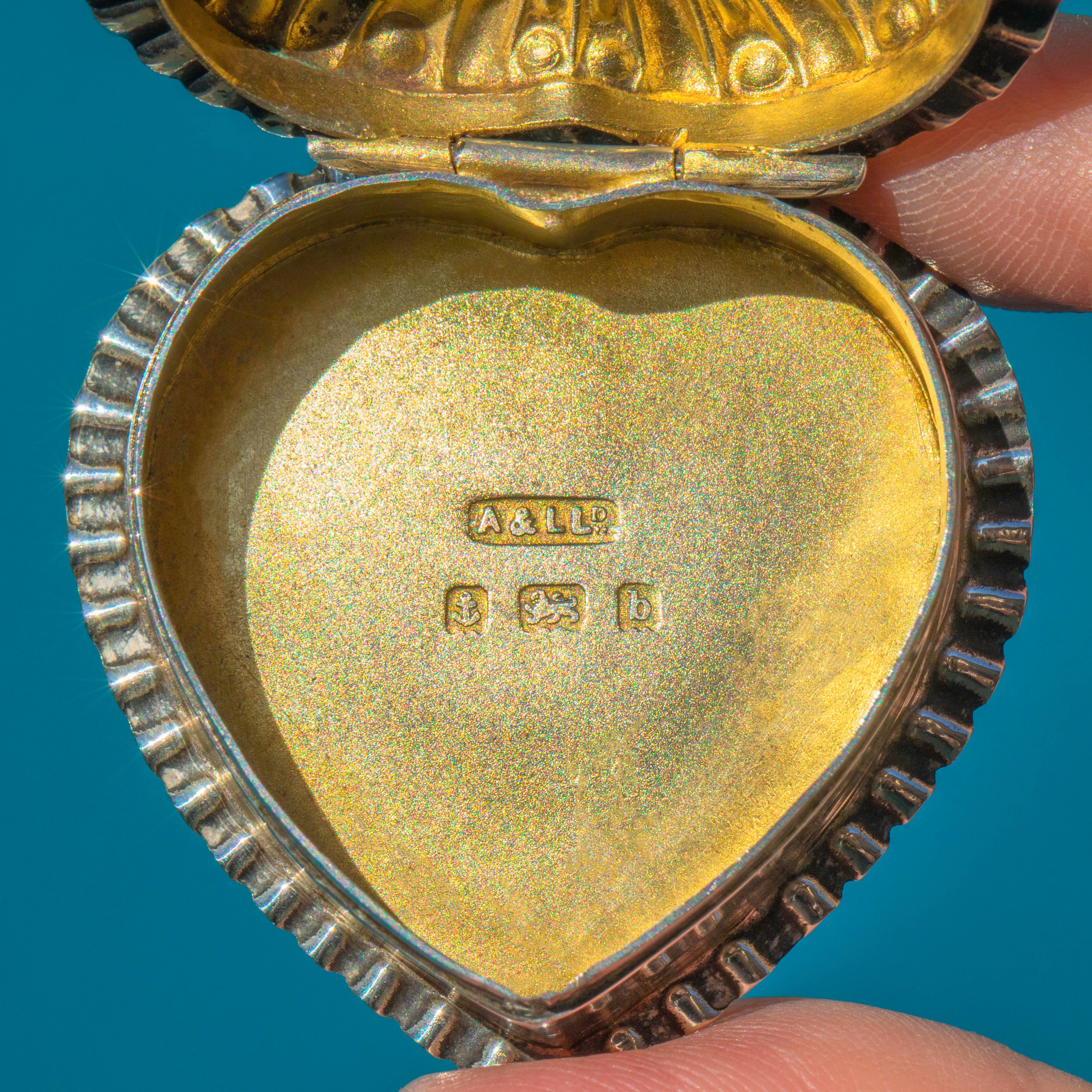 Once open, the gilded Gold interior beams against the admirable patina from the Silver, perfect for homing your most treasured possessions. Upon looking inside the trinket box you will notice a full set of English hallmarks on the base, that have allowed us to accurately date her to 1901!