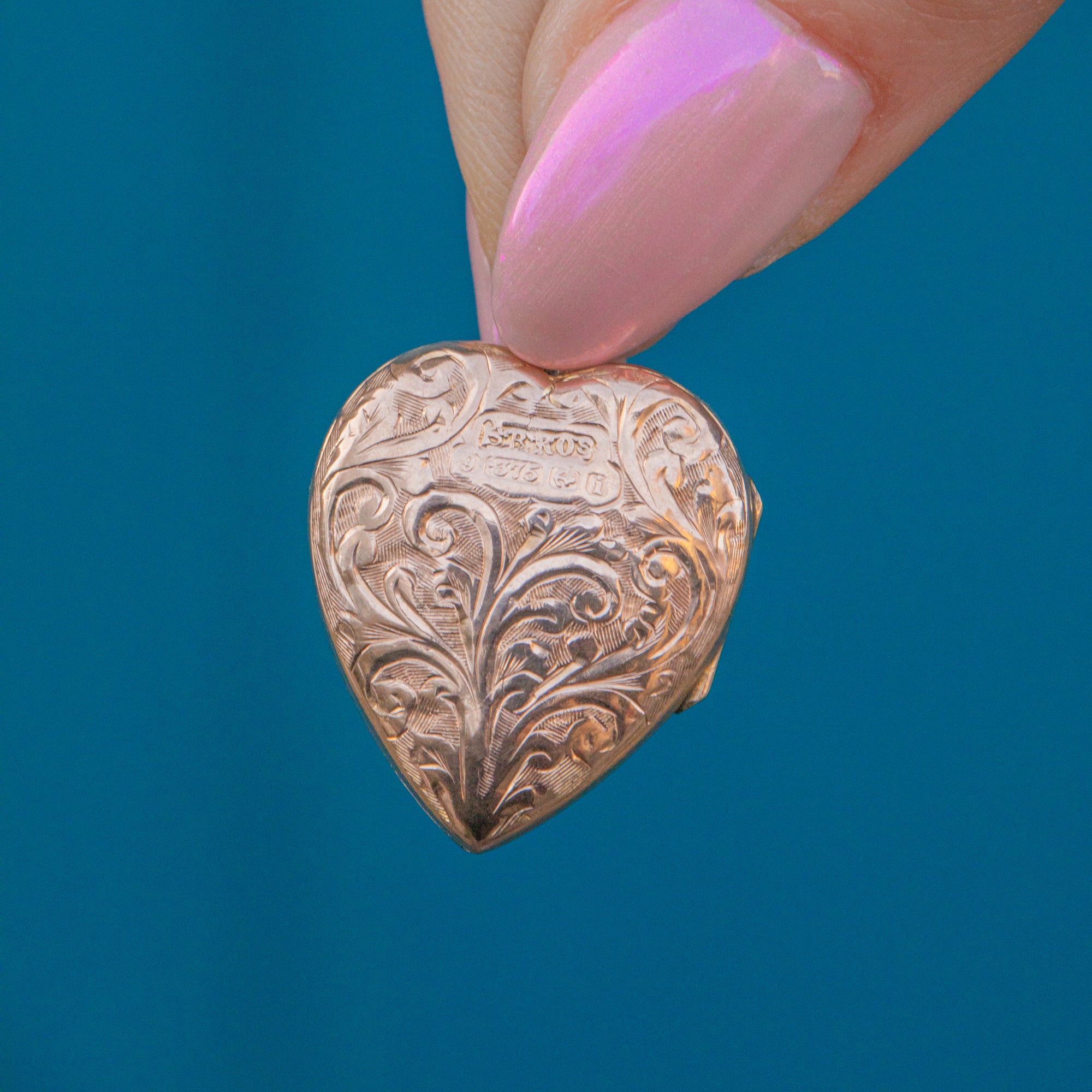 Edwardian Solid 9ct Gold Engraved Heart Locket, c.1908