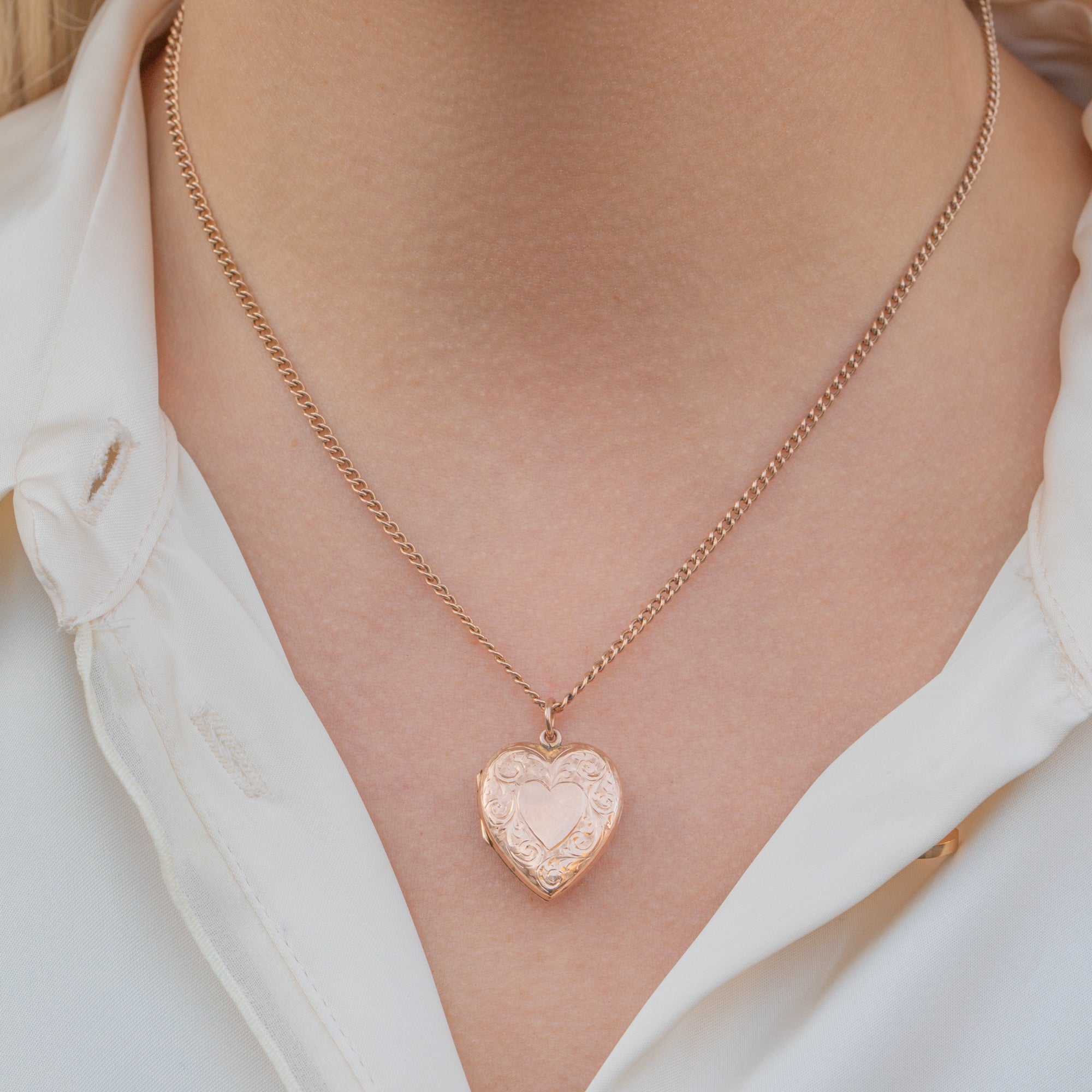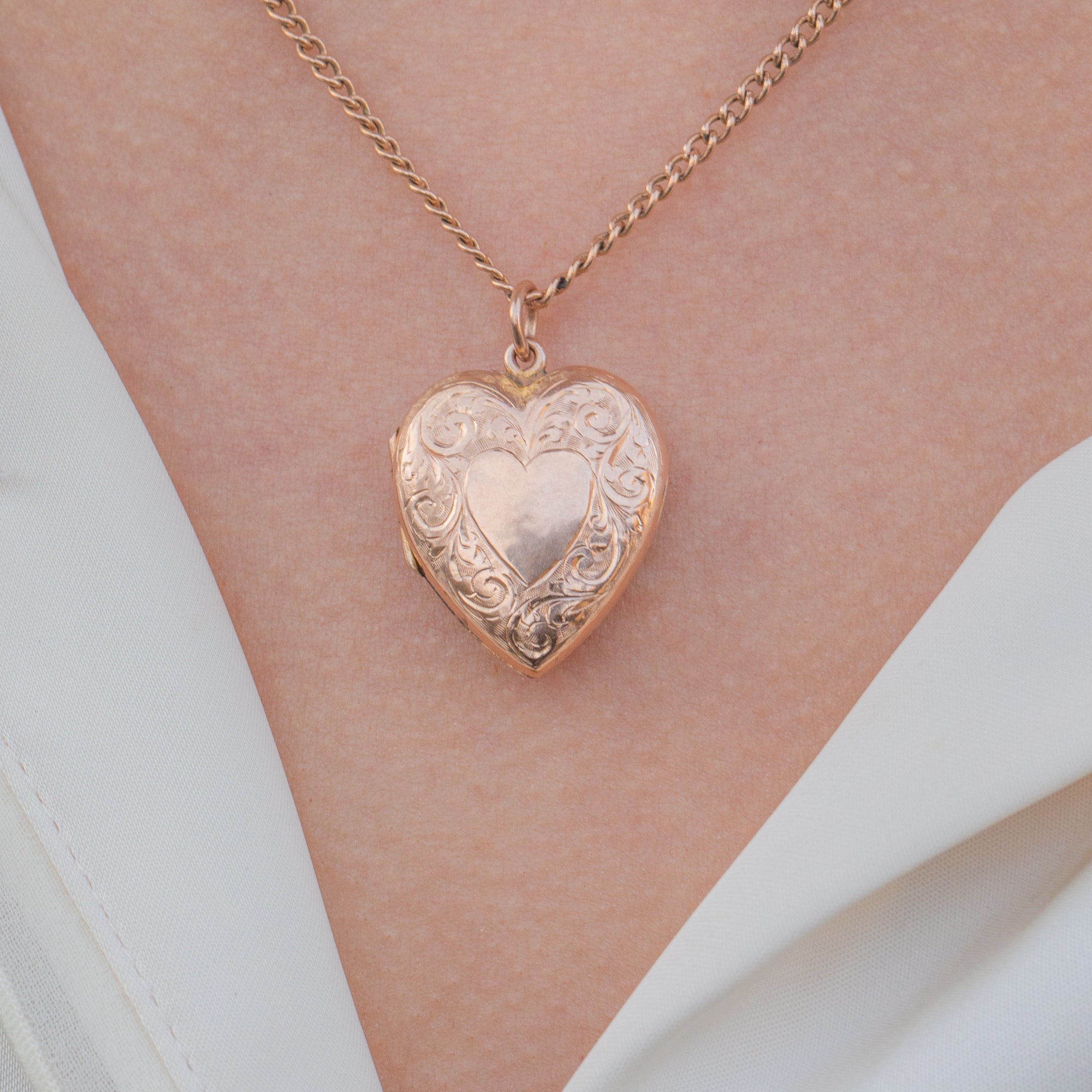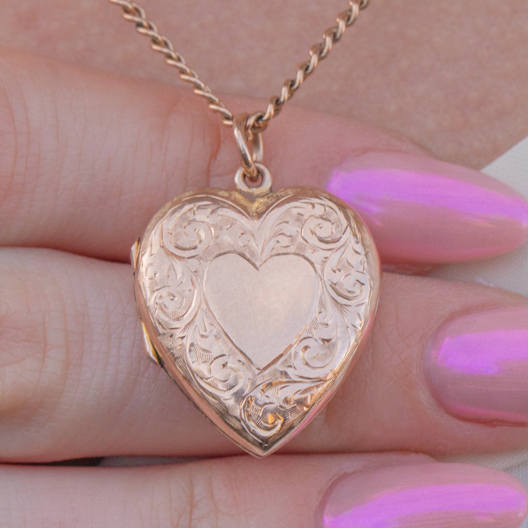 VERY GOOD-EXCELLENT. This Edwardian solid 9ct Gold engraved heart locket is in lovely condition. Her saturated Gold is free from any scuffs or scratches and is intricately engraved. There are some minor signs of wear to the Gold inside of the locket, however these are not visible when wearing. She closes securely, allowing for confident wear and, all in all, is in great condition.