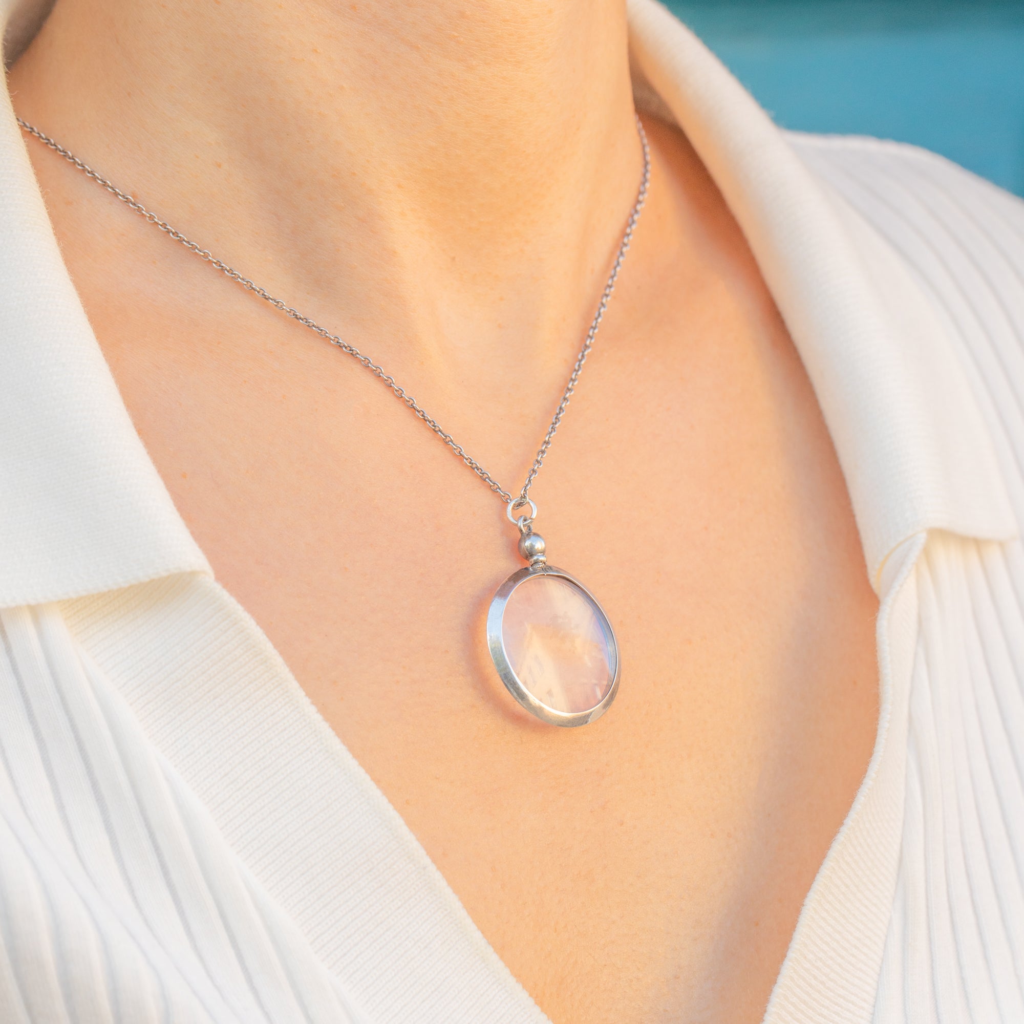 This elegant Edwardian locket pendant is a wonderful example of early 20th-century jewellery design. Crafted in Sterling Silver, the locket features a perfectly circular frame with clear glass windows, ideal for holding and protecting a cherished photograph or keepsake. Its screw-top mechanism remains tight and secure, making it both practical and charming.