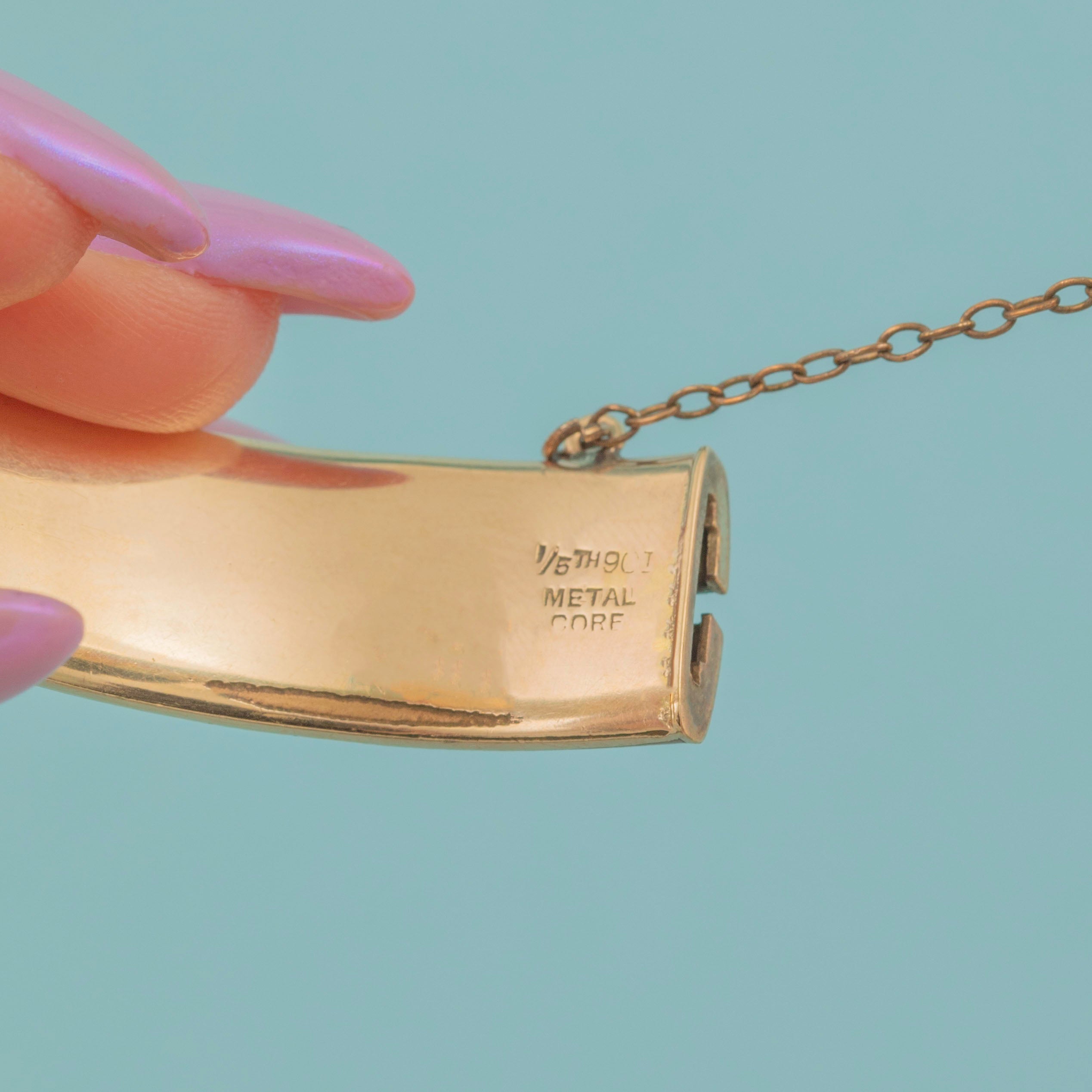 Formed of a Metal core with a layer of 9ct rolled Gold on top, this vintage bangle gives the appearance of solid Gold for a fraction of the price, and no one would know the difference!