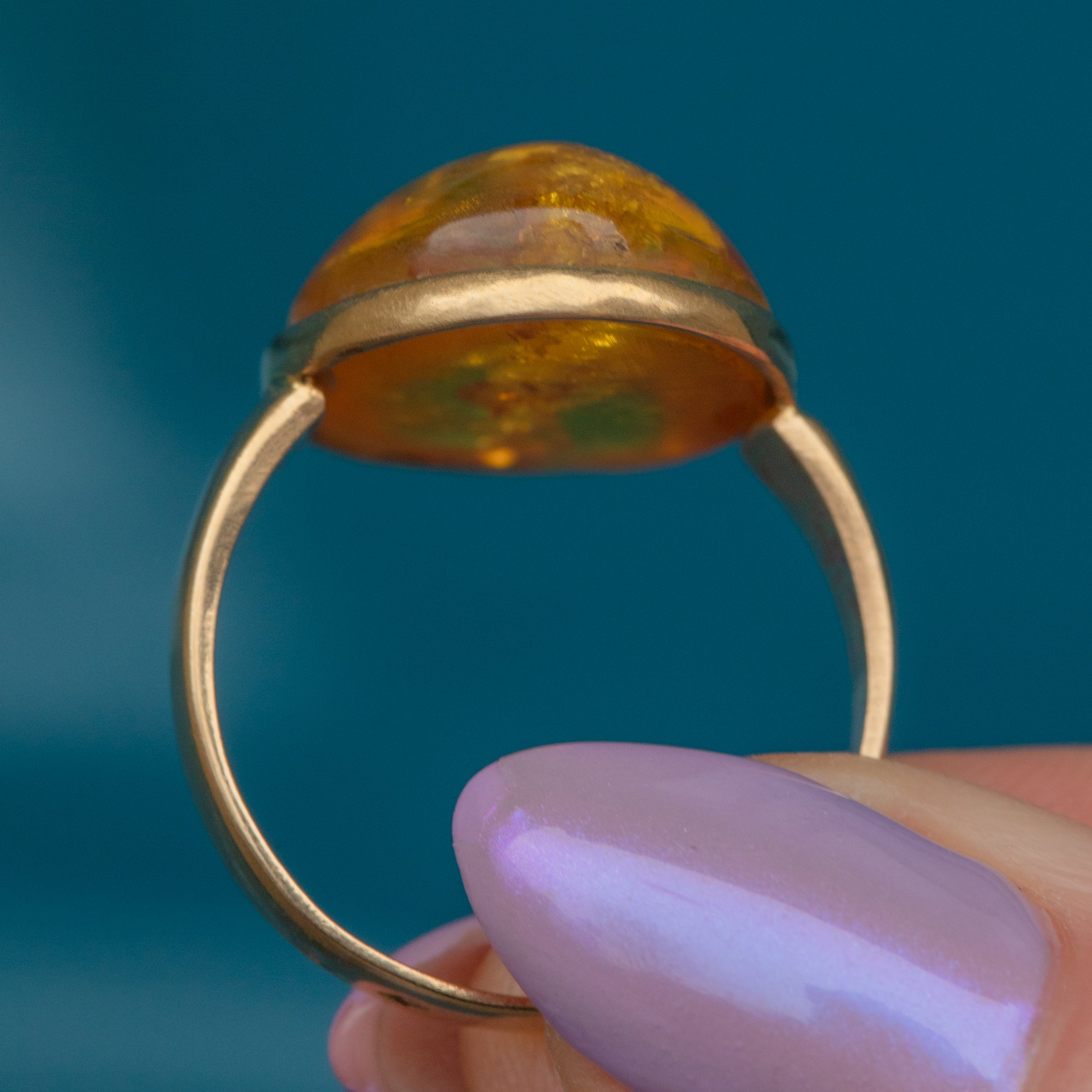 French 18ct Gold Baltic Amber Cabochon Ring