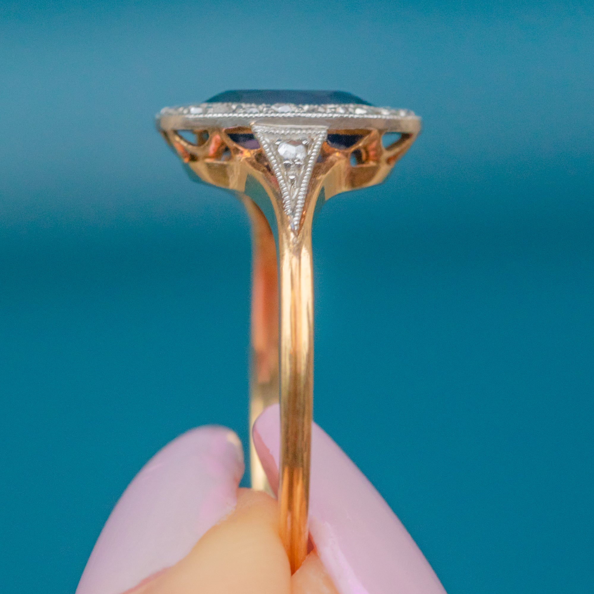 Bearing the French eagle head hallmark for 18ct Gold, this ring perfectly captures the Art Deco balance of geometry and grace. Sleek, timeless, and beautifully made, it’s a wonderful example of classic French craftsmanship and would make an exquisite engagement ring choice.