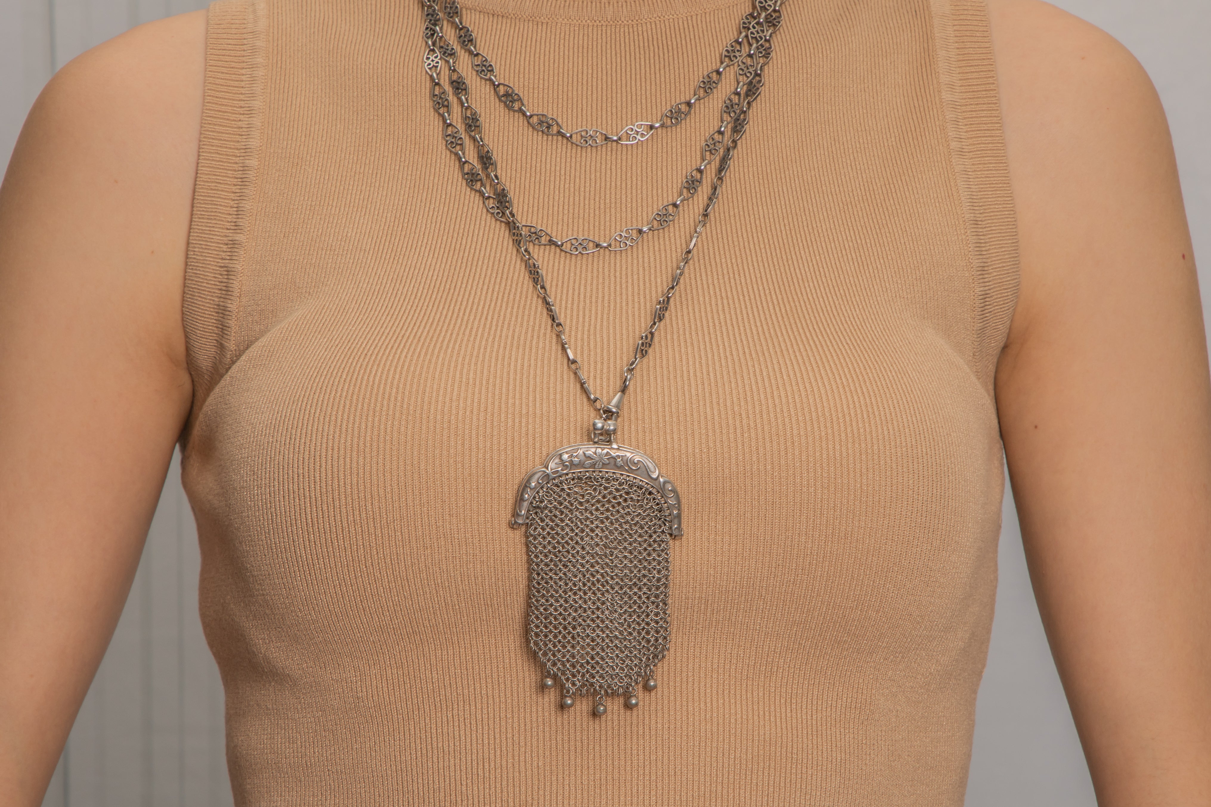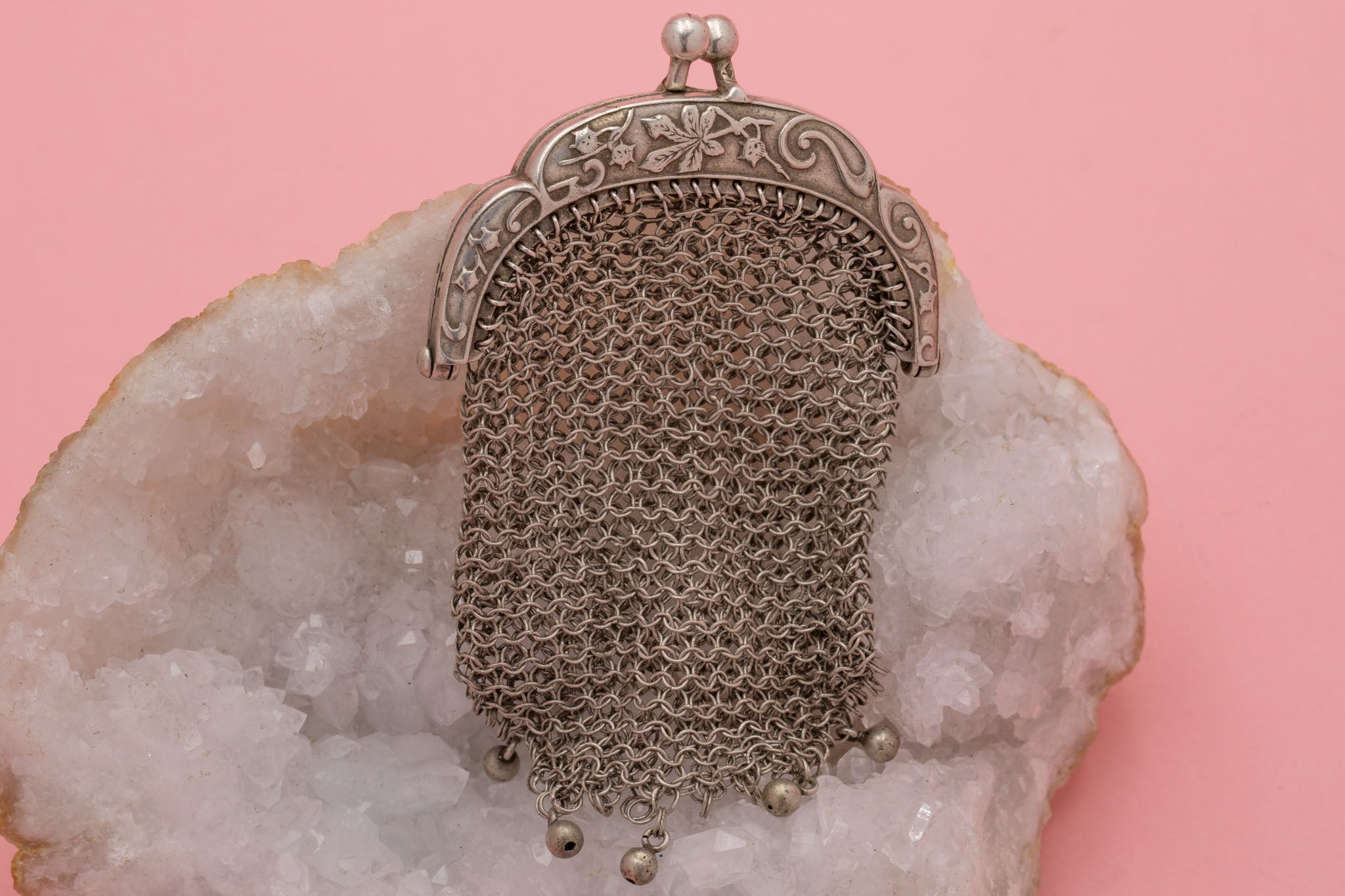 Bourse à pièces en cotte de mailles en argent français Chatelaine