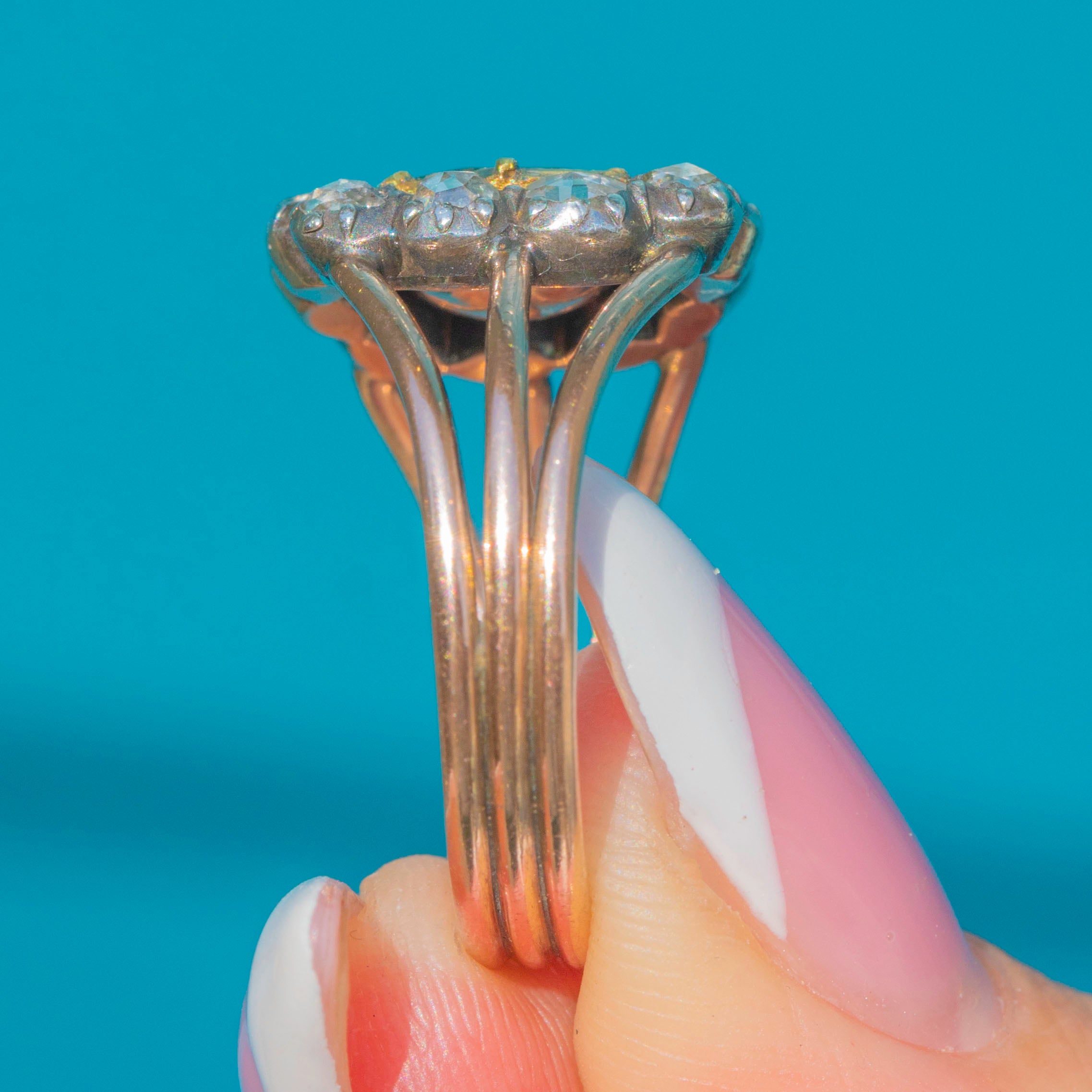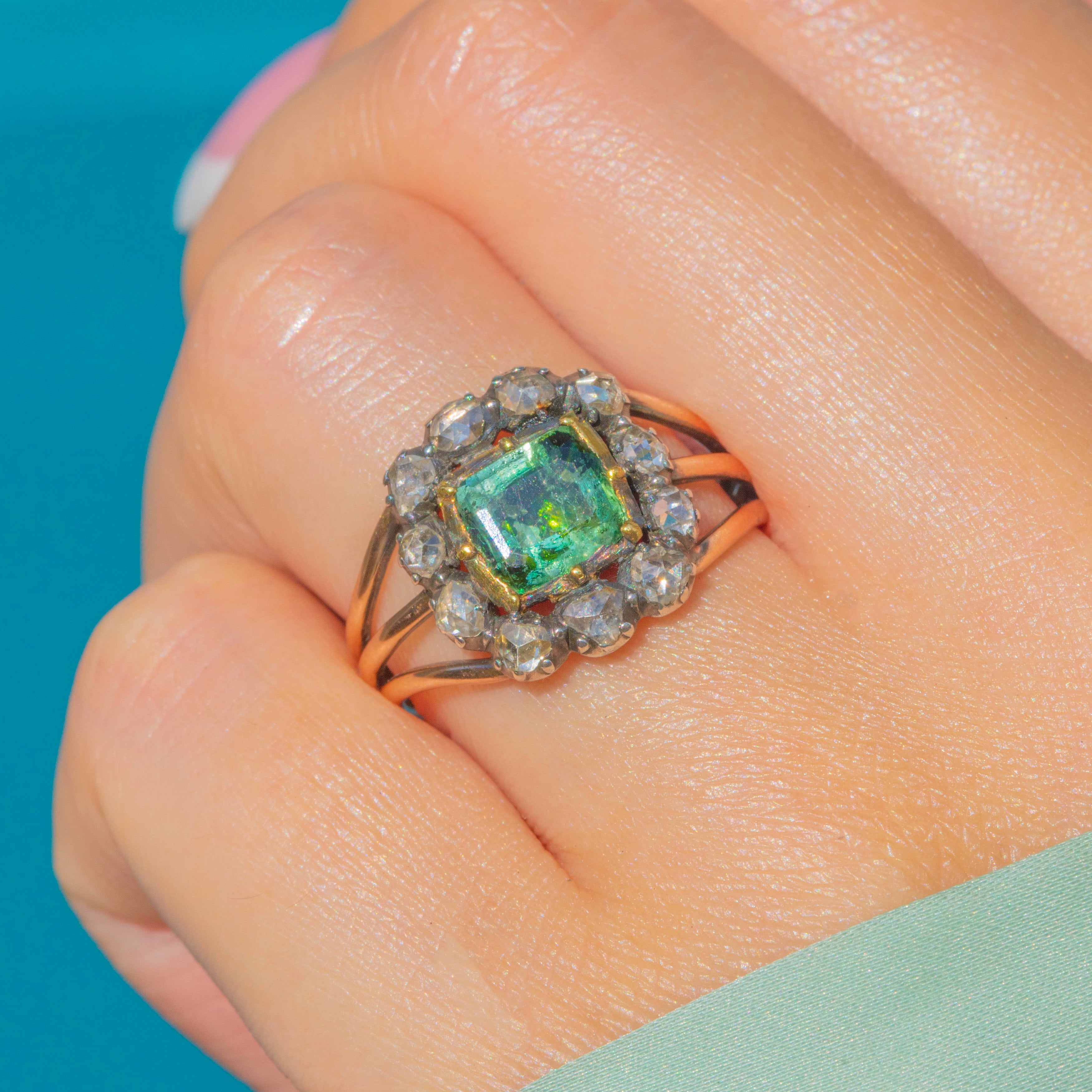Rare Georgian 15ct Gold Emerald Rose-Cut Diamond Cluster Ring