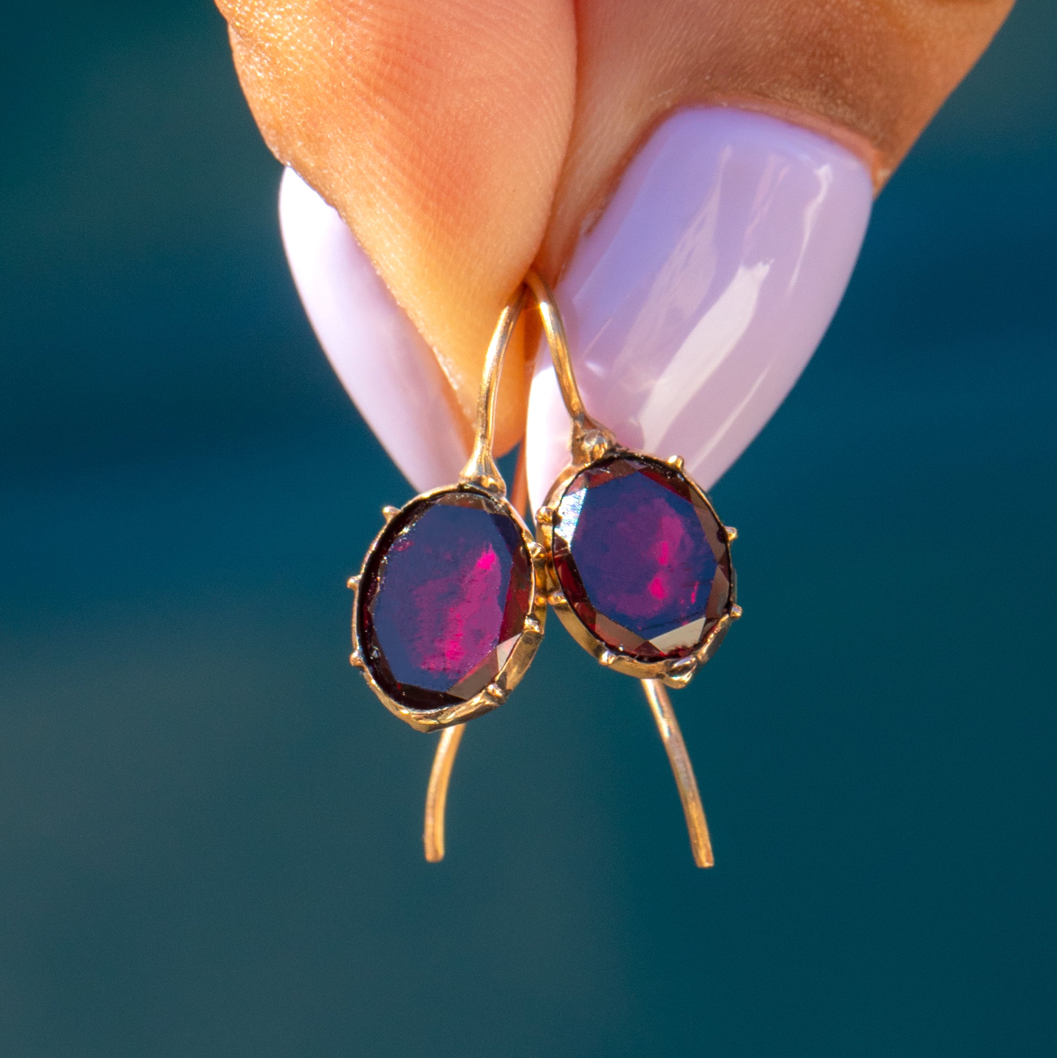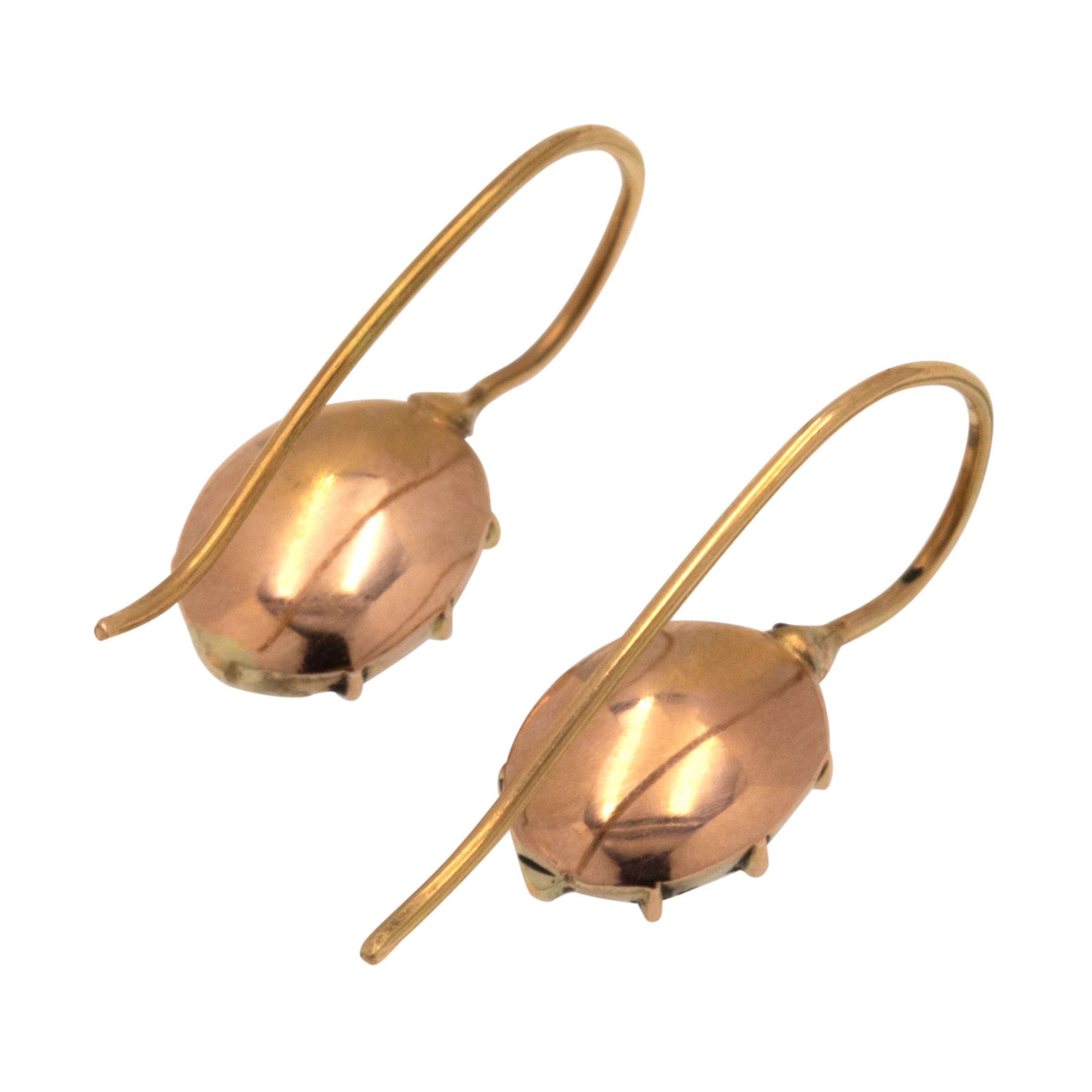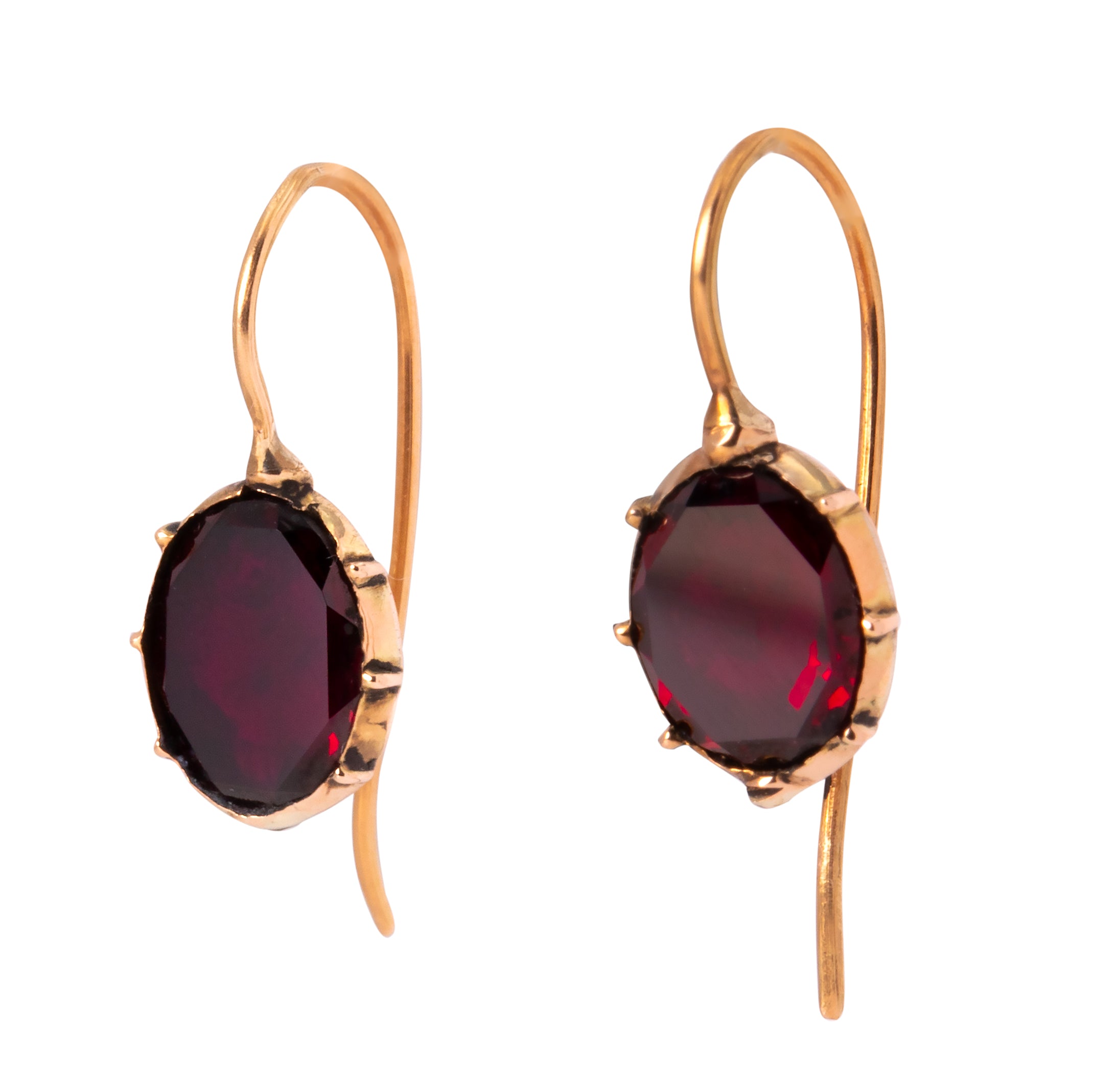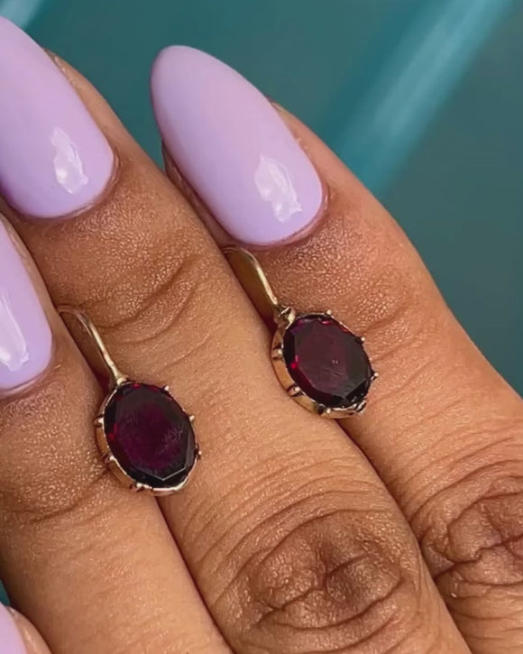 Boucles d'oreilles géorgiennes en or 15 carats avec grenat taillé plat, 1,50 ct