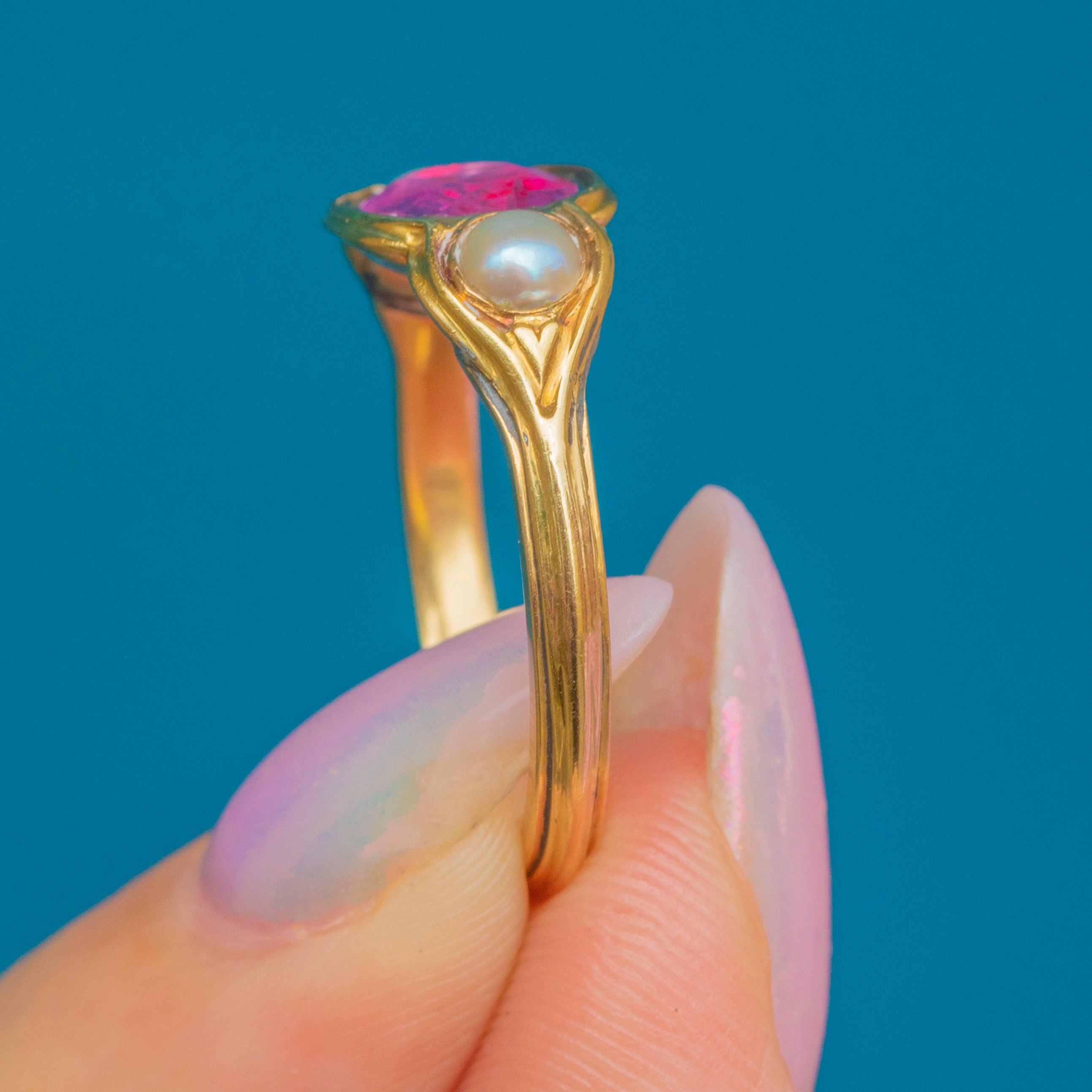 Georgian 18ct Gold Flat-Cut Natural Ruby Pearl Ring, 1.09ct