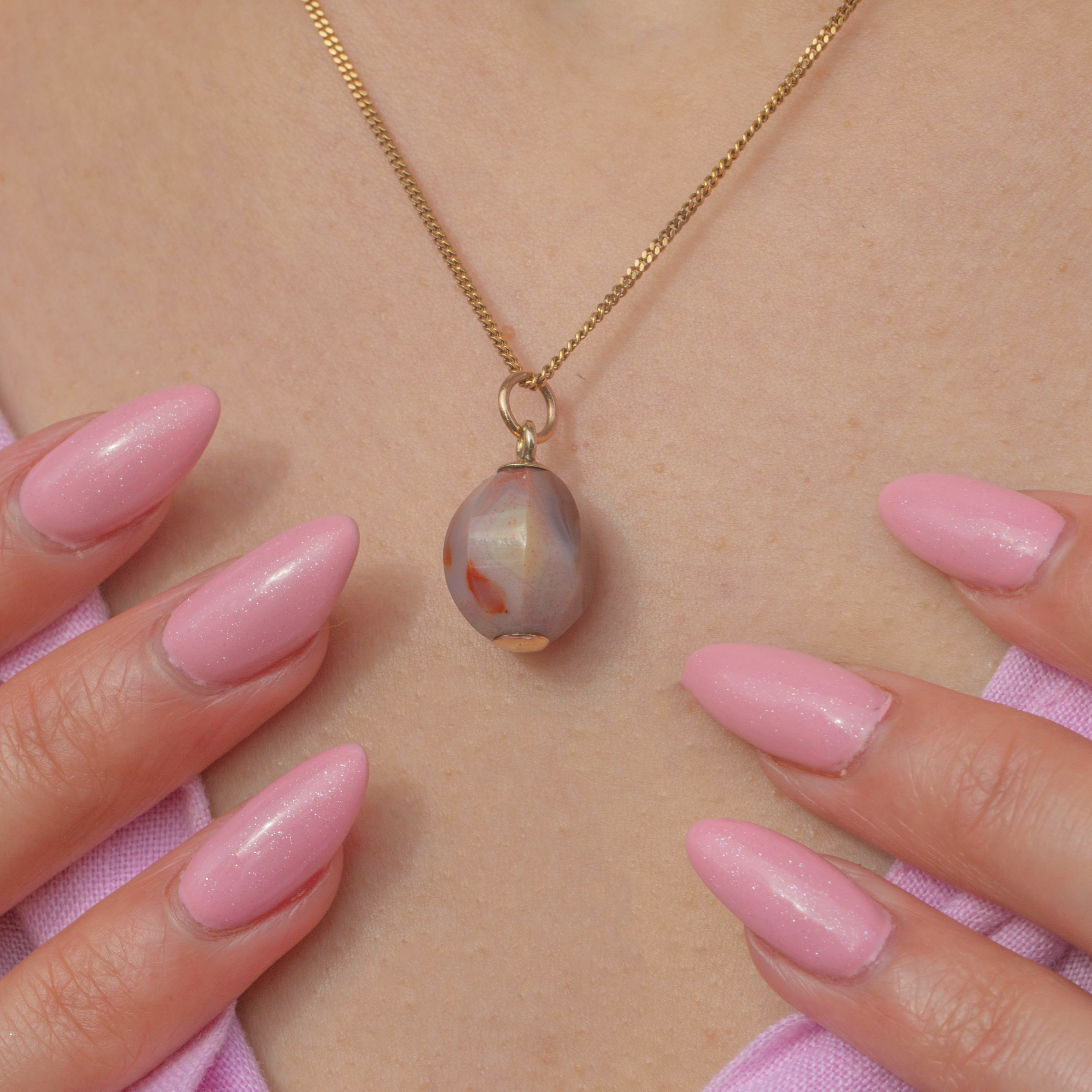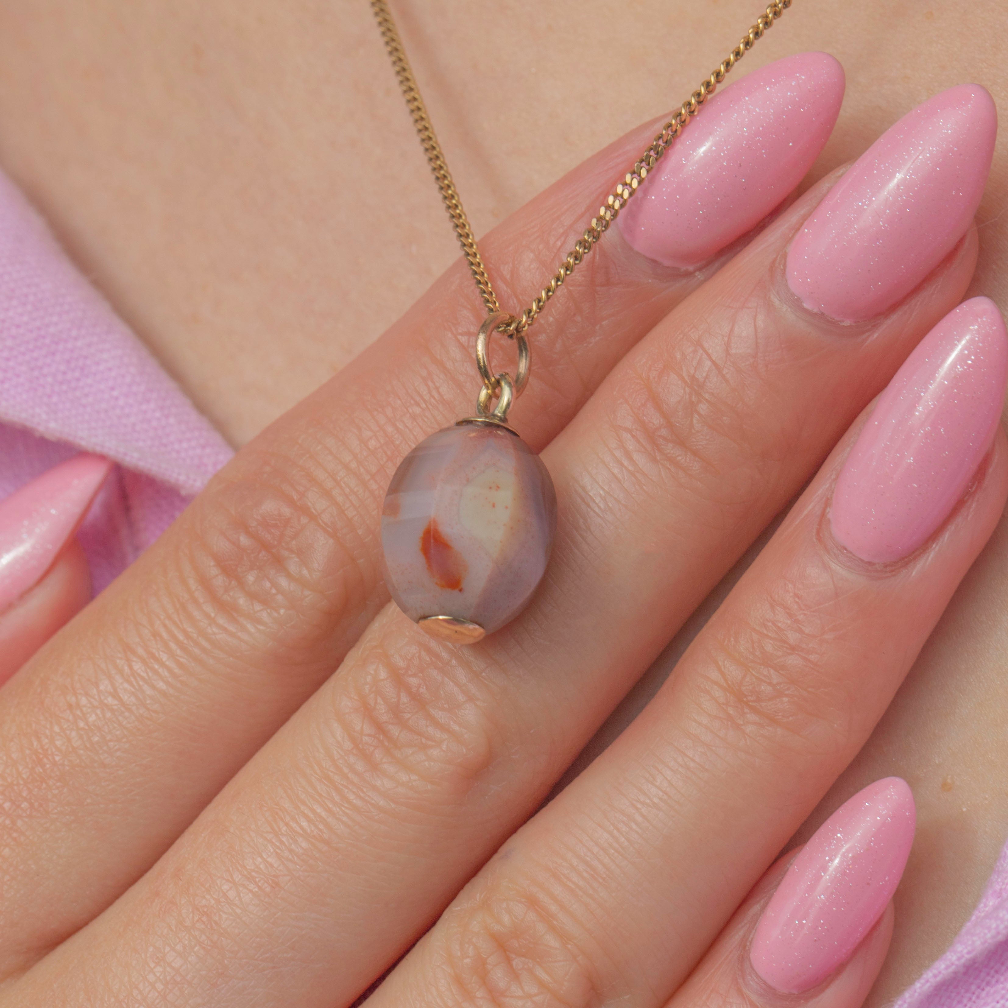 Add a touch of elegance to your collection with this exquisite Georgian 9ct Gold faceted Agate orb pendant! The Agate boasts a wonderfully faceted orb of richly striated Agate set in warm 9ct Gold.