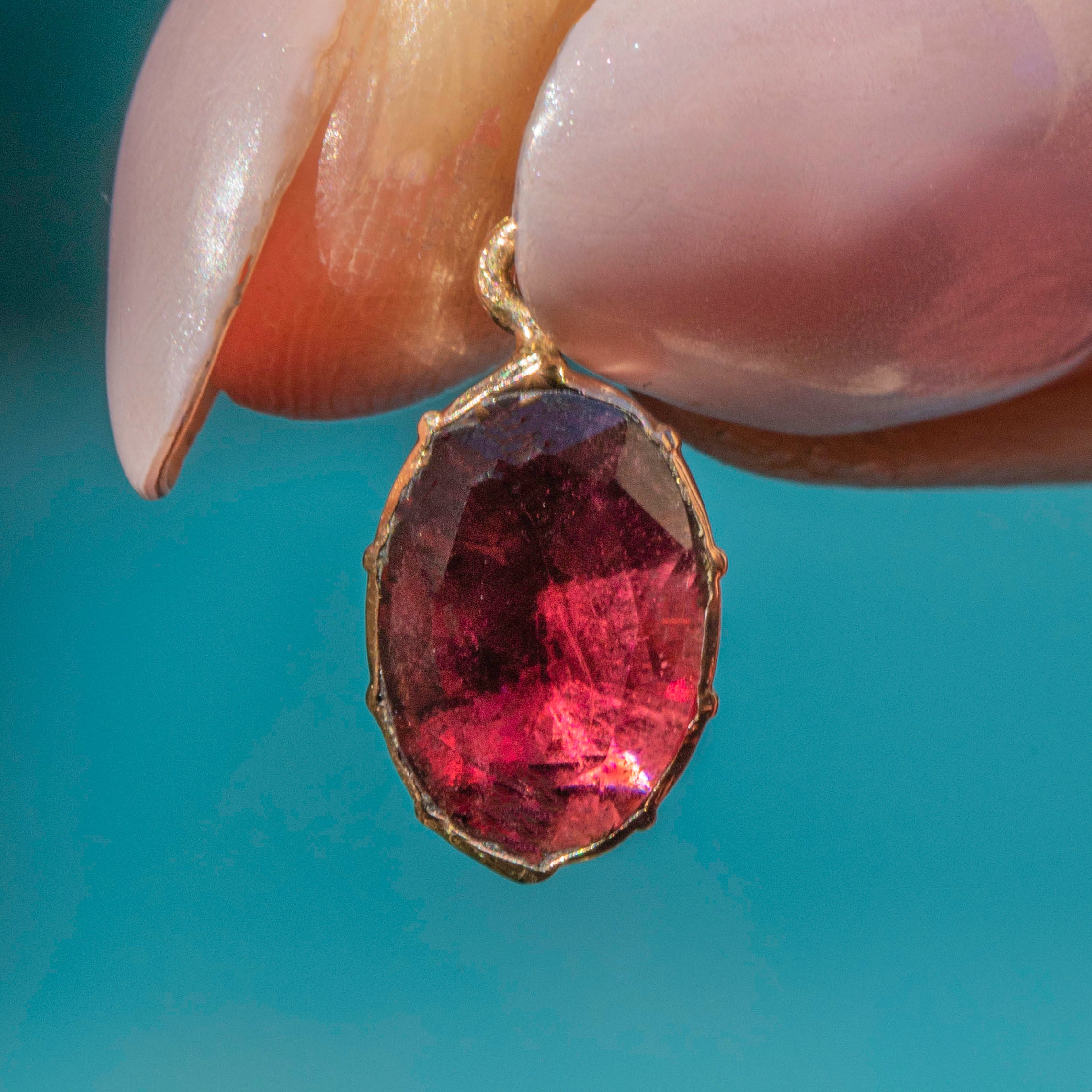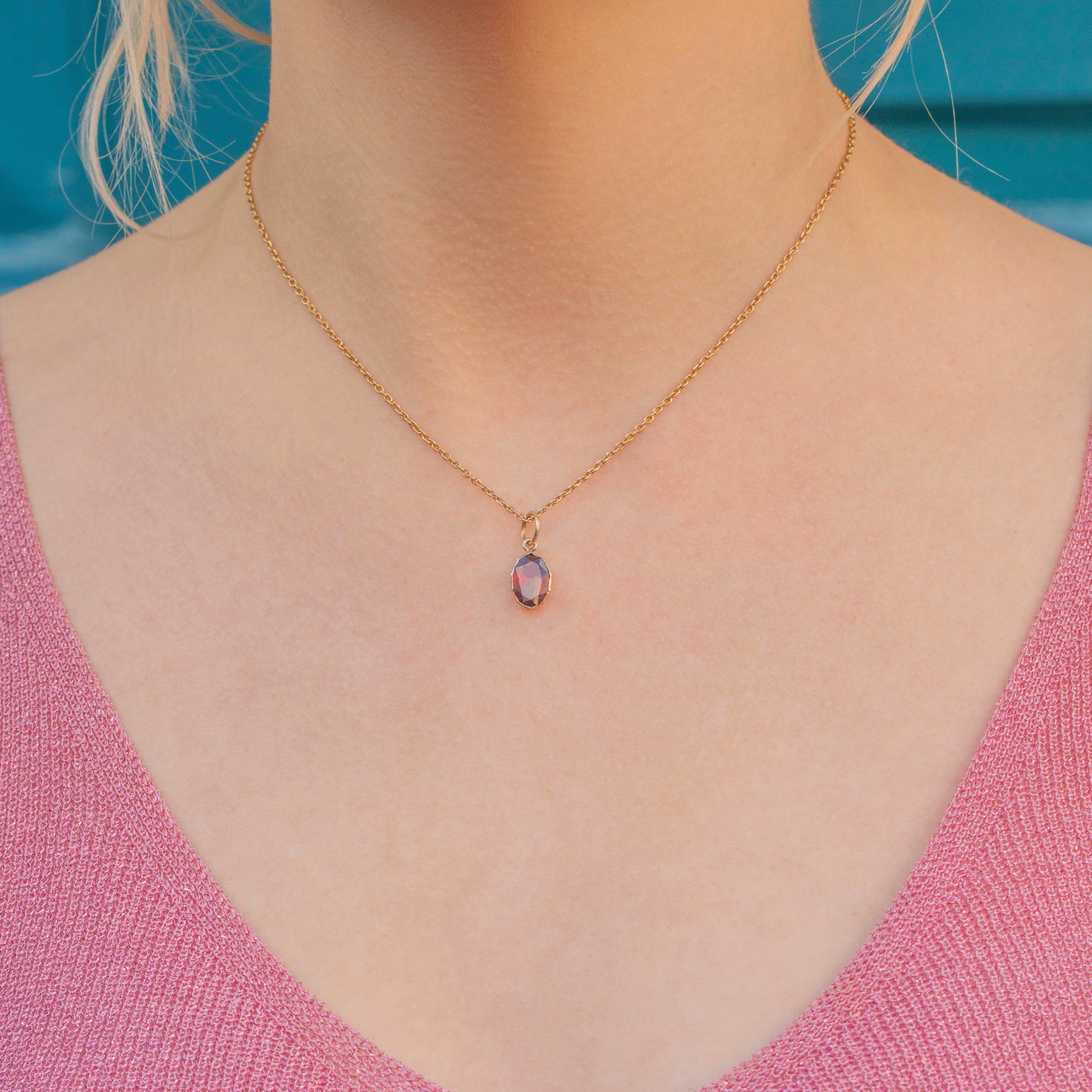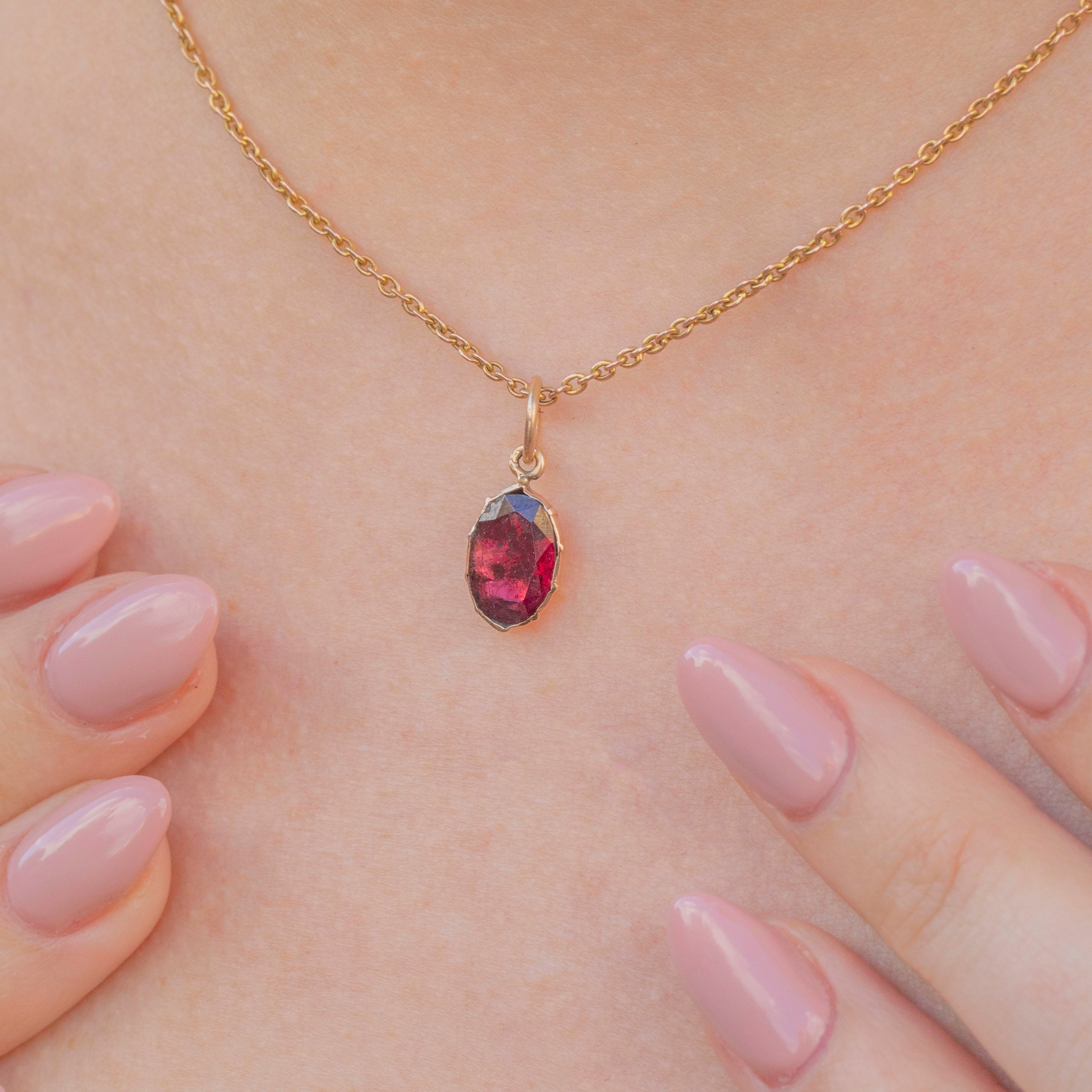 The saturated, rosy 9ct Gold perfectly complements her foiled 0.65ct Garnet, which glows magnificently under the light. At over 200 years old, this Georgian pendant is a fascinating piece of history, ready and waiting for a loving new home!