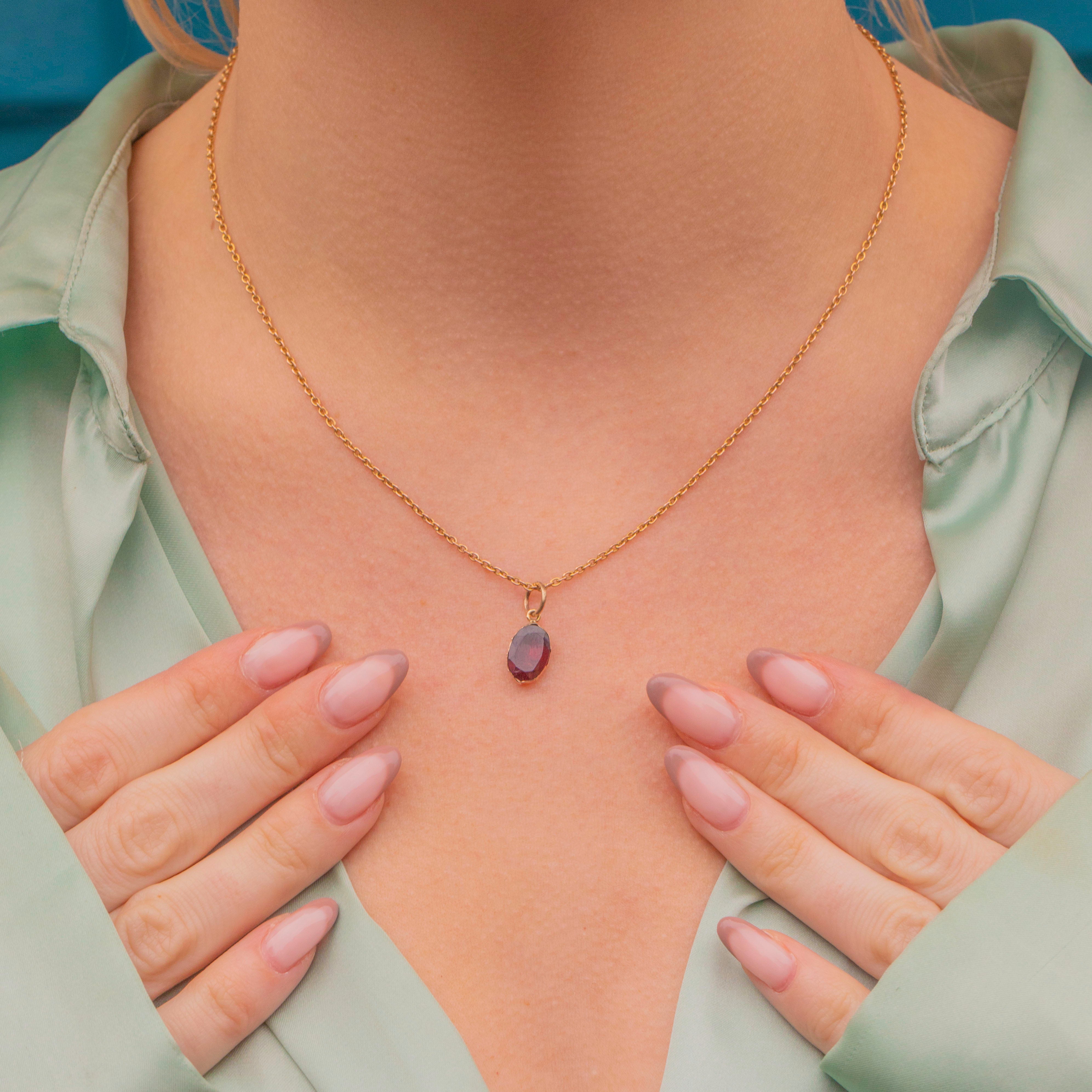 This deliciously juicy Georgian 9ct Gold flat-cut Garnet charm will liven up your collection! The Garnet has a gorgeous merlot hue and her faceted, foiled form reveals fabulous flashes of vivid crimson under the light, framed by classically Georgian piecrust settings in buttery 9ct Gold.