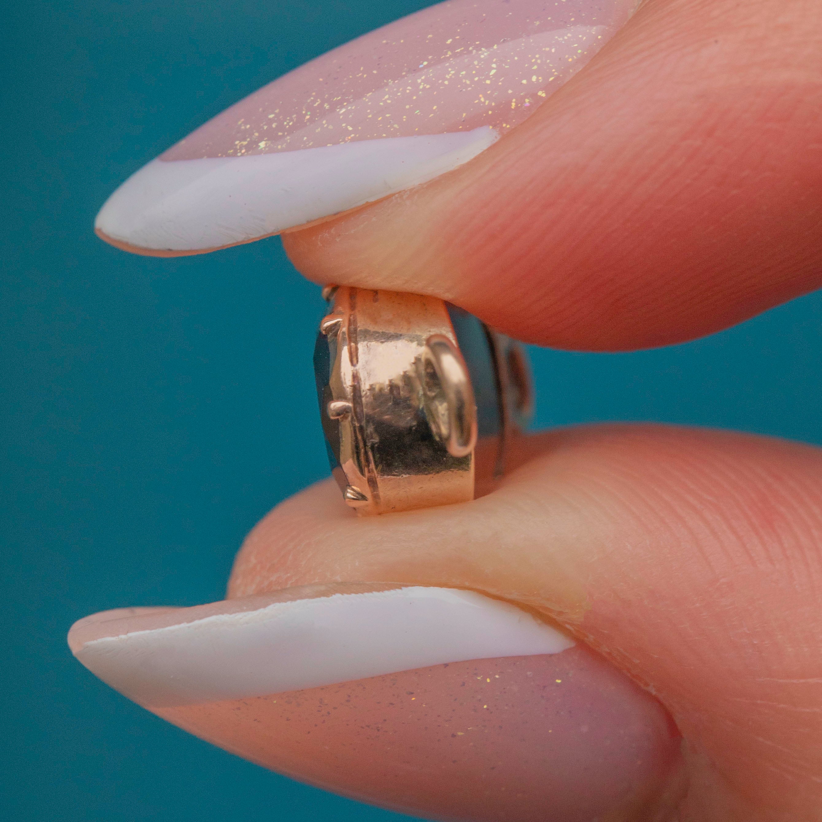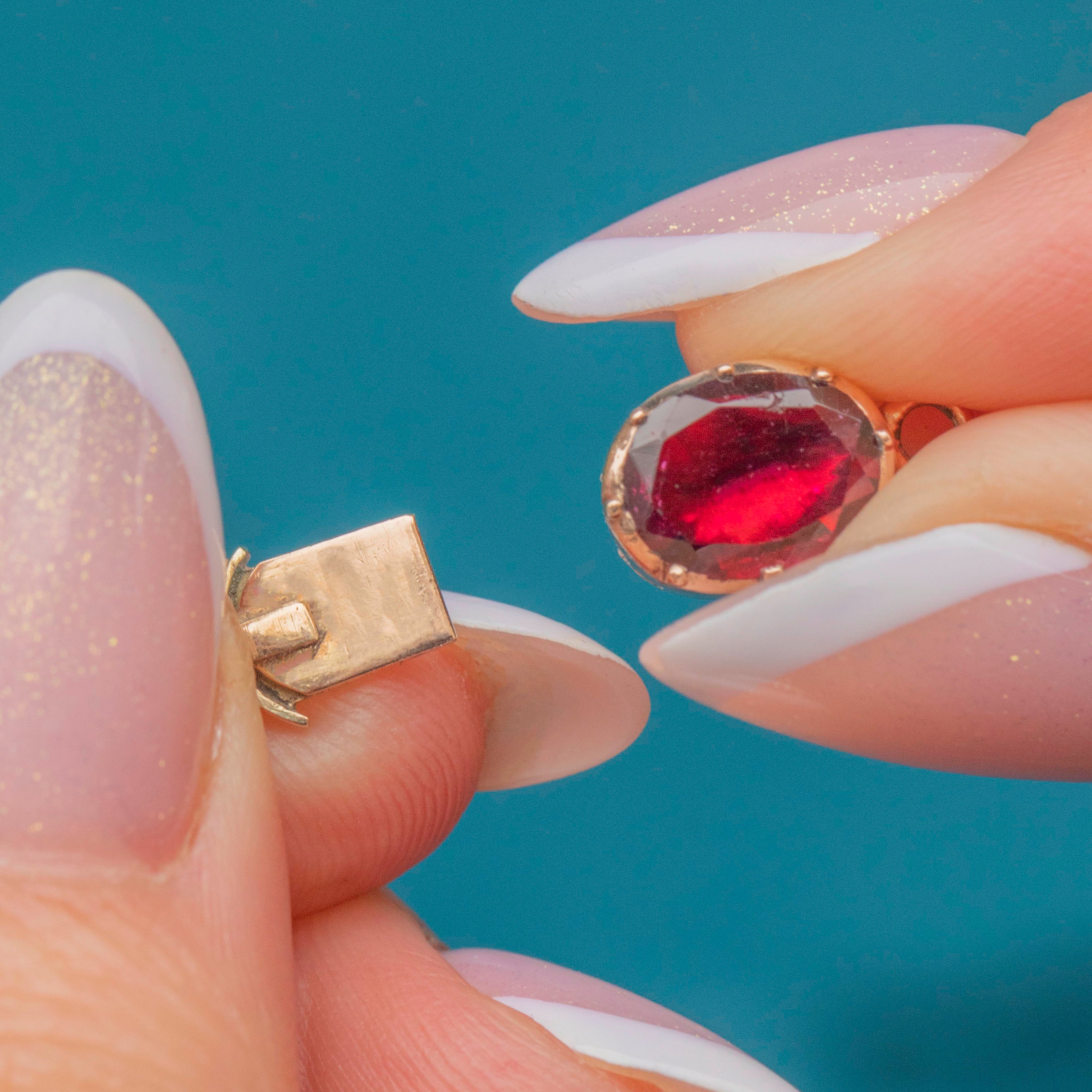 If you have a penchant for unique antique collectibles, don't hesitate to make this Georgian 9ct Gold flat-cut Garnet clasp your newest acquisition! Crafted from solid 9ct Gold and inlaid with a bright crimson Garnet, this antique clasp is the perfect accessory for those who like to experiment with their jewellery pieces.