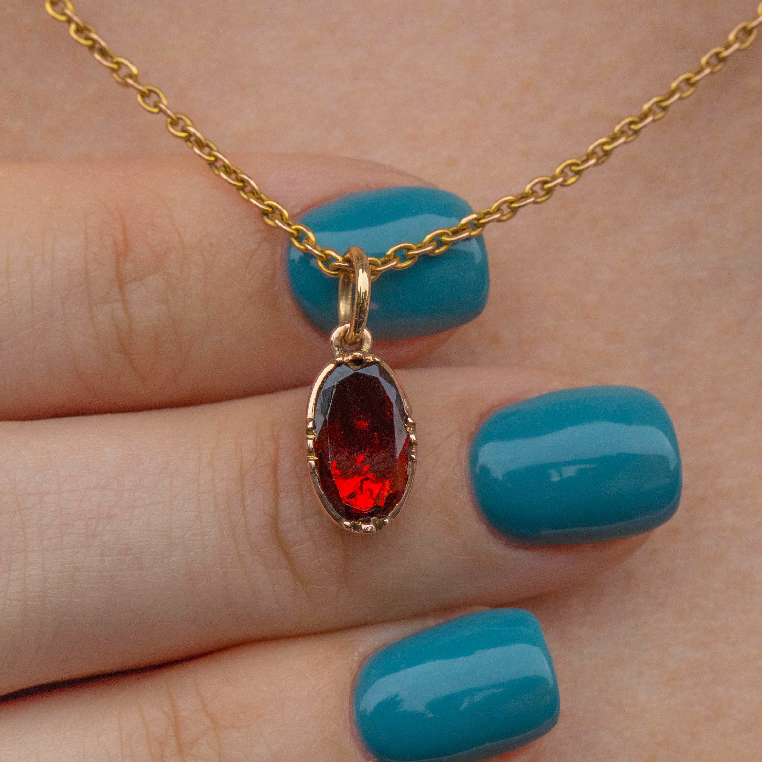 This delectable Georgian 9ct Gold flat-cut Garnet oval charm oozes delicious berry red tones, she looks good enough to eat!