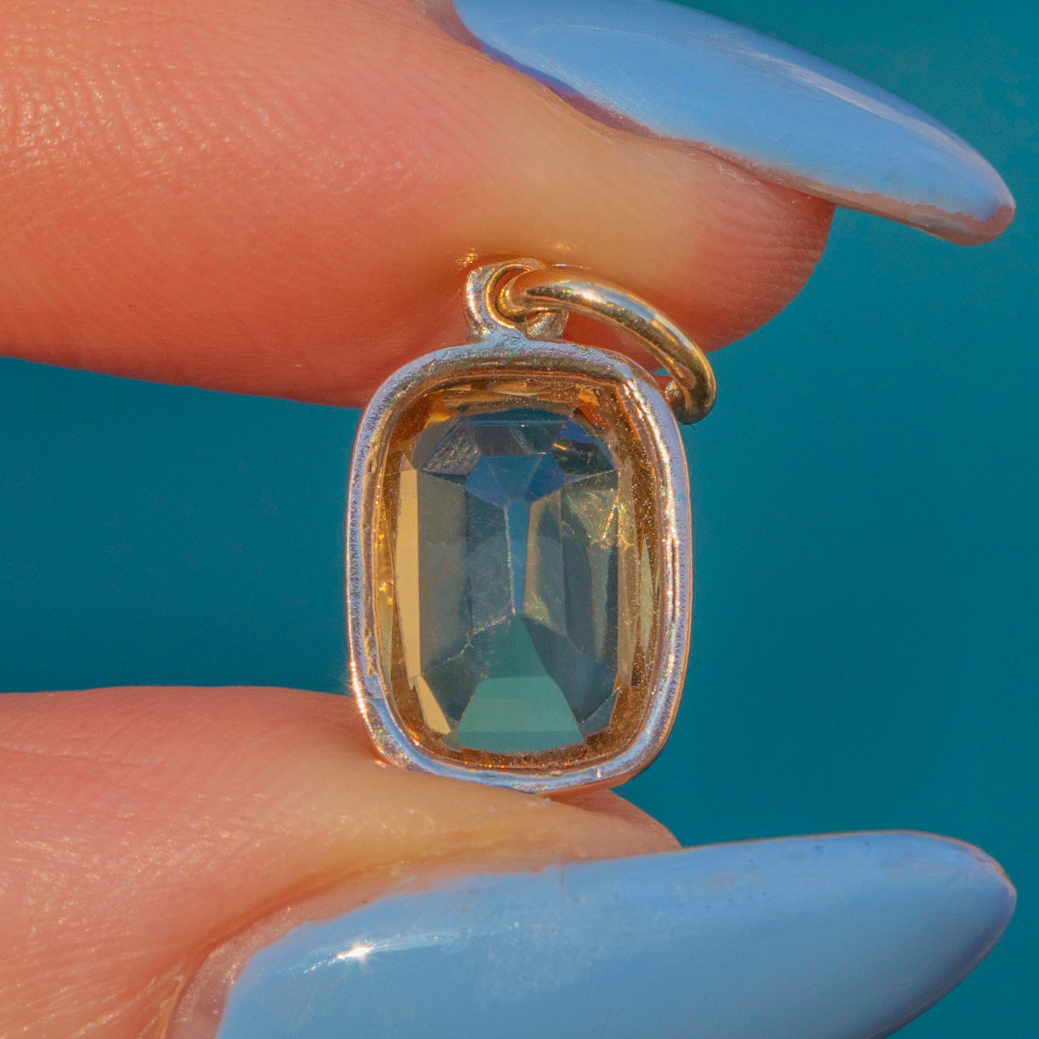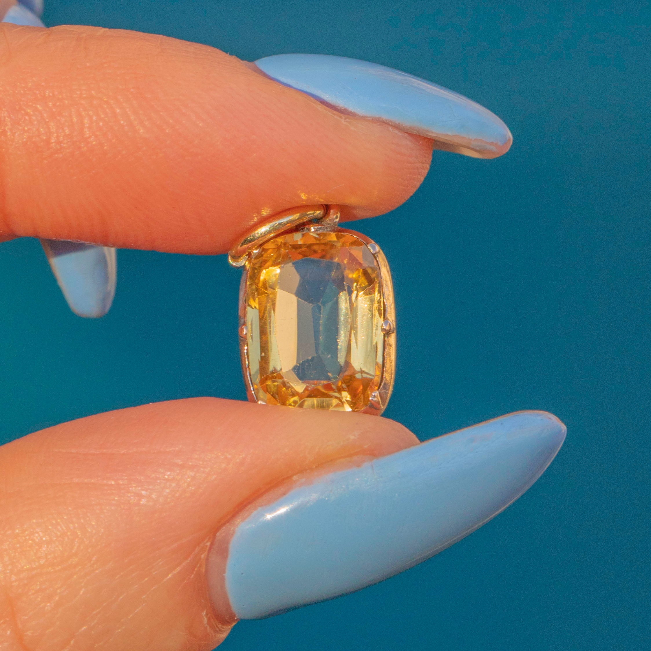 VERY GOOD This Georgian 9ct Gold Golden Topaz charm is in very good condition, with only minor, barely noticeable scratches and dings to the surface. The Topaz remains securely set with no chips to note!