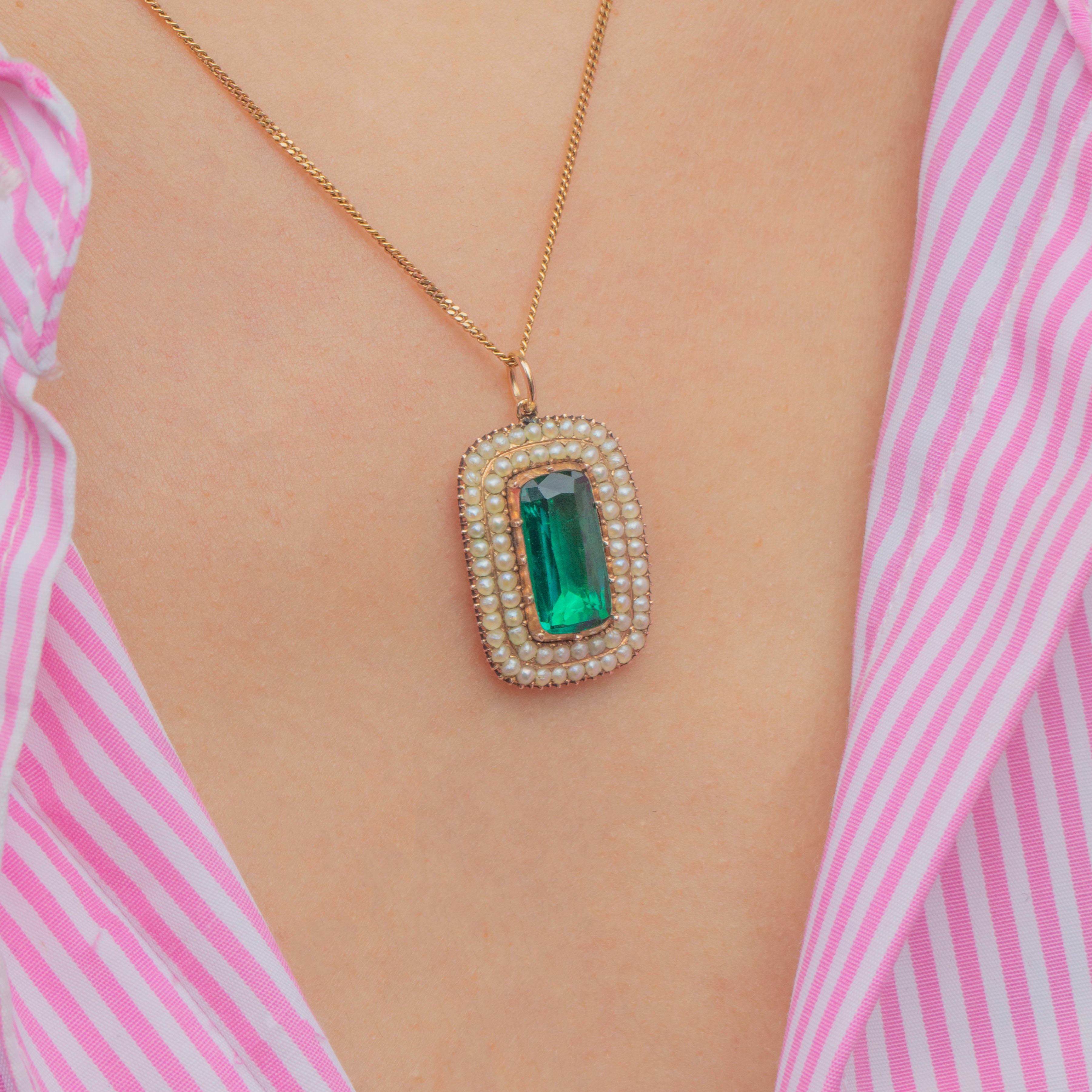 Georgian 9ct Gold Green Paste Pearl Cluster Pendant