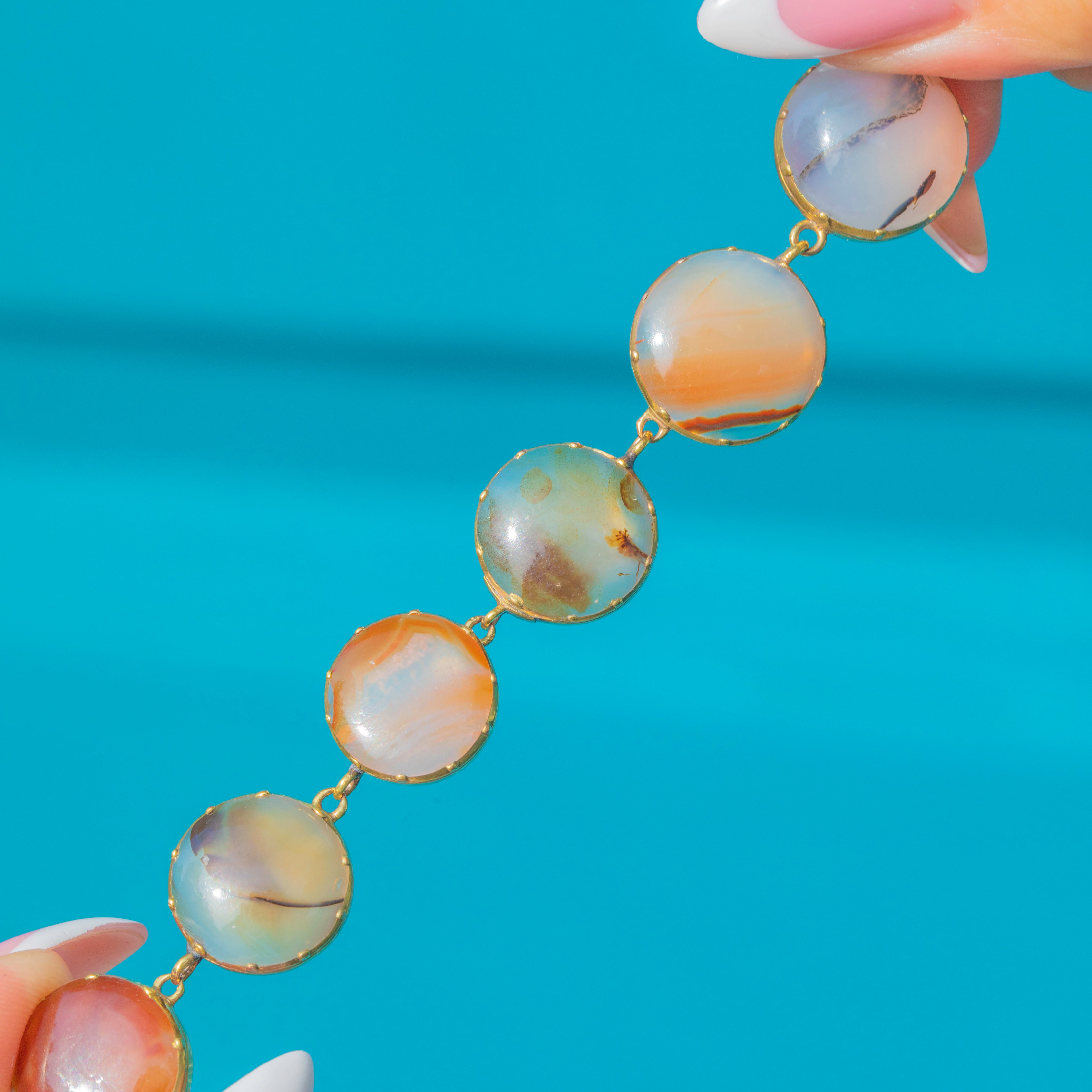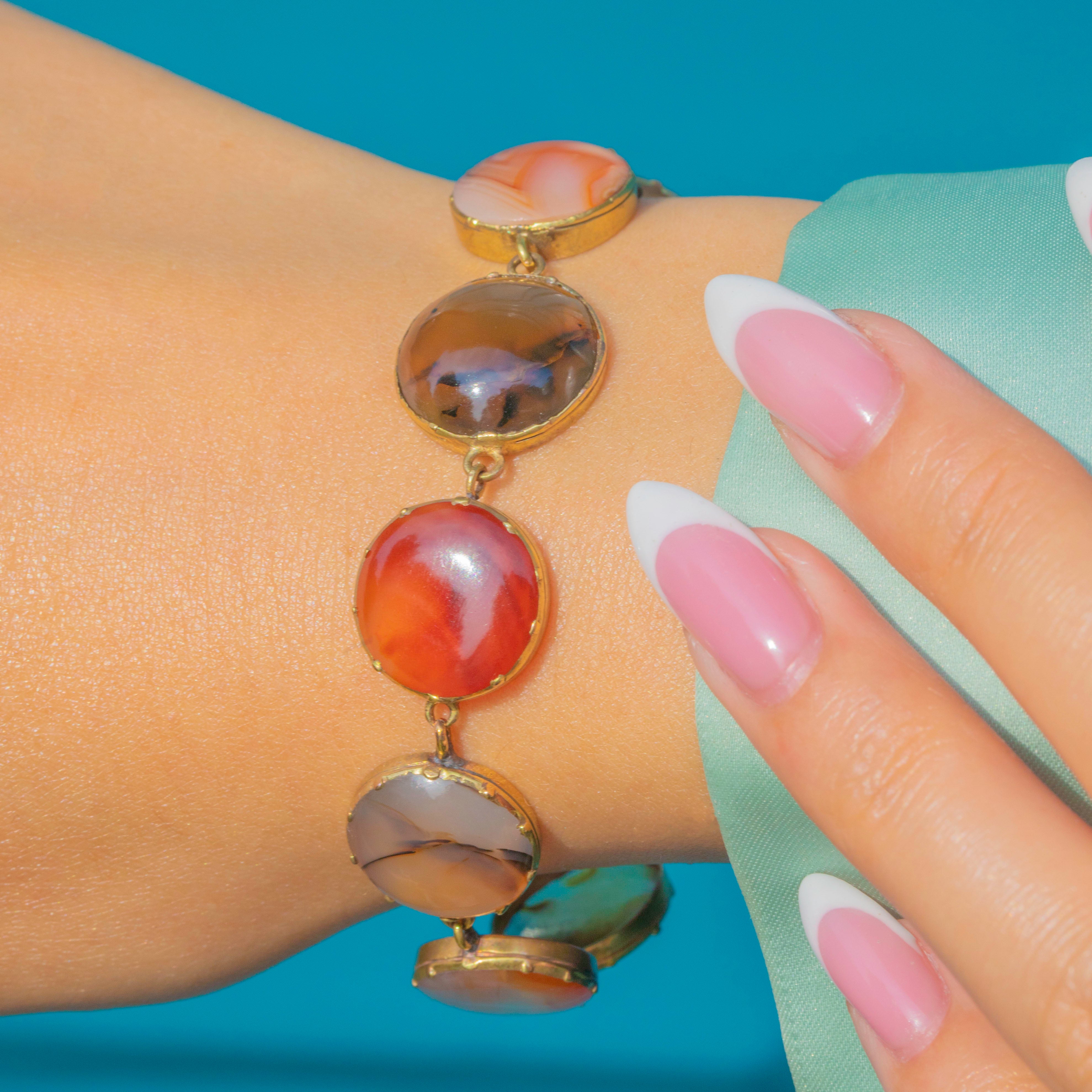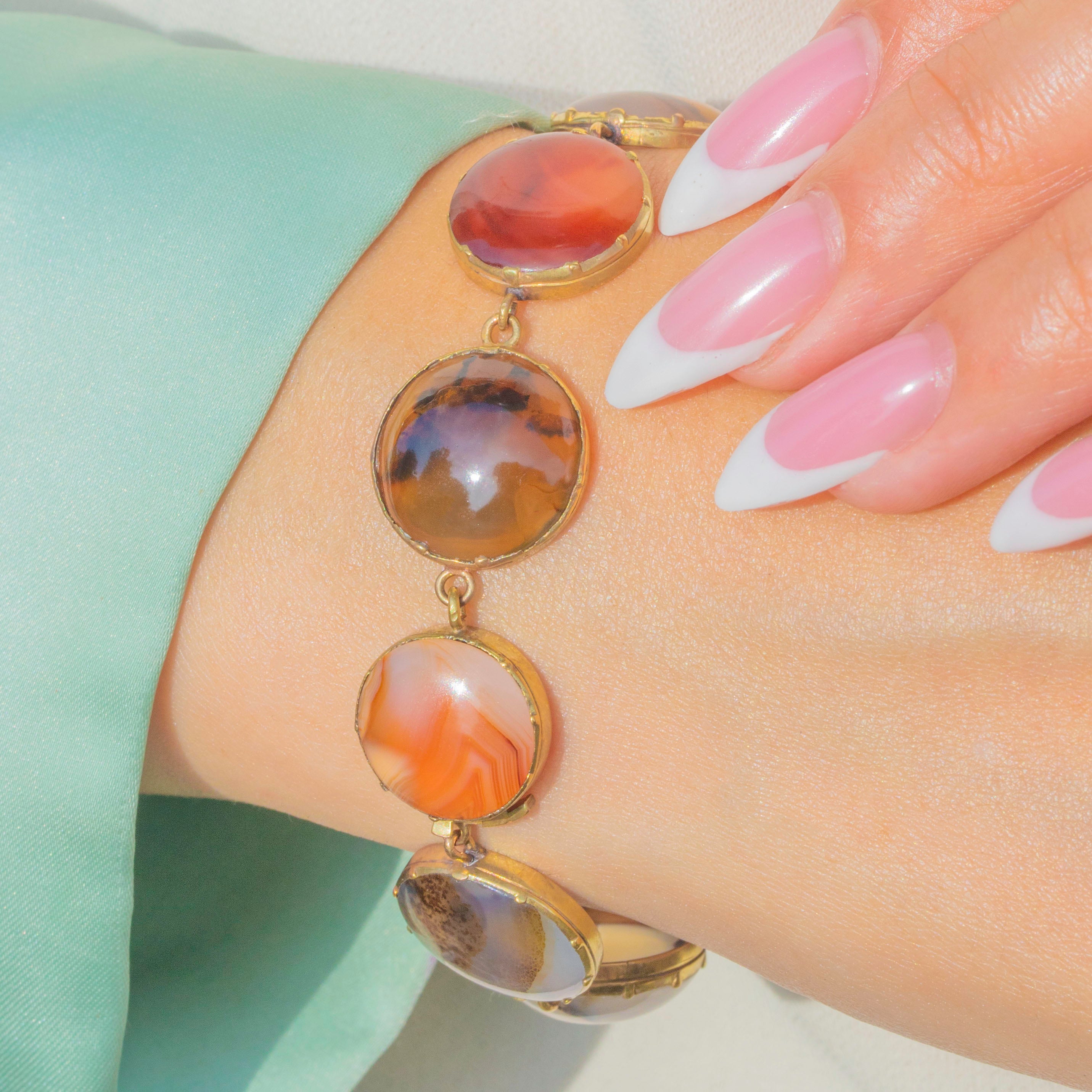 The bracelet combines traditional Scottish Agates, revered for their attractive colours and patterns, with a timeless design, making it a versatile and sophisticated piece. Its polished links and secure clasp reflect the care and precision of its creation.