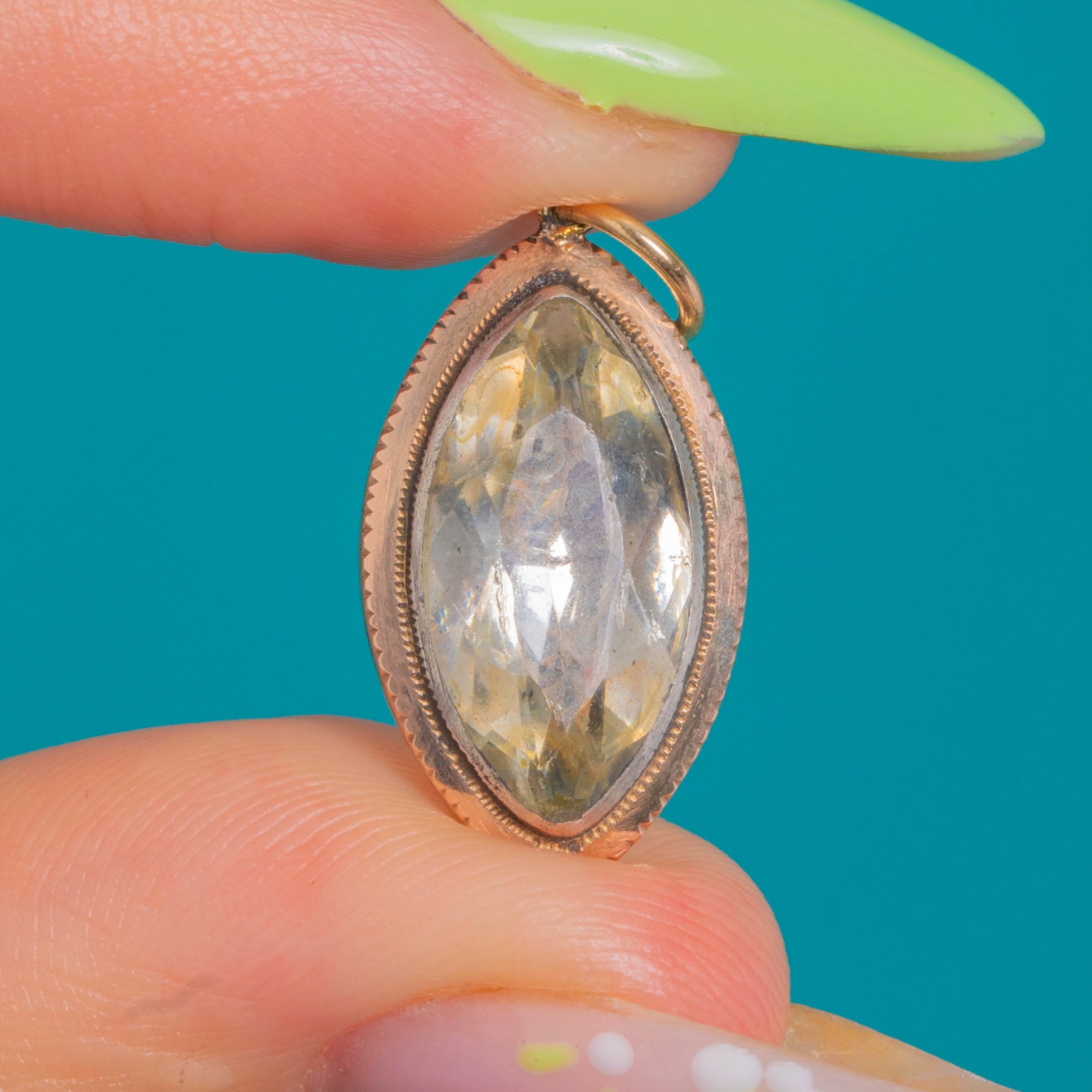 Georgian 9ct Gold & Silver Foiled Rock Crystal Navette Charm