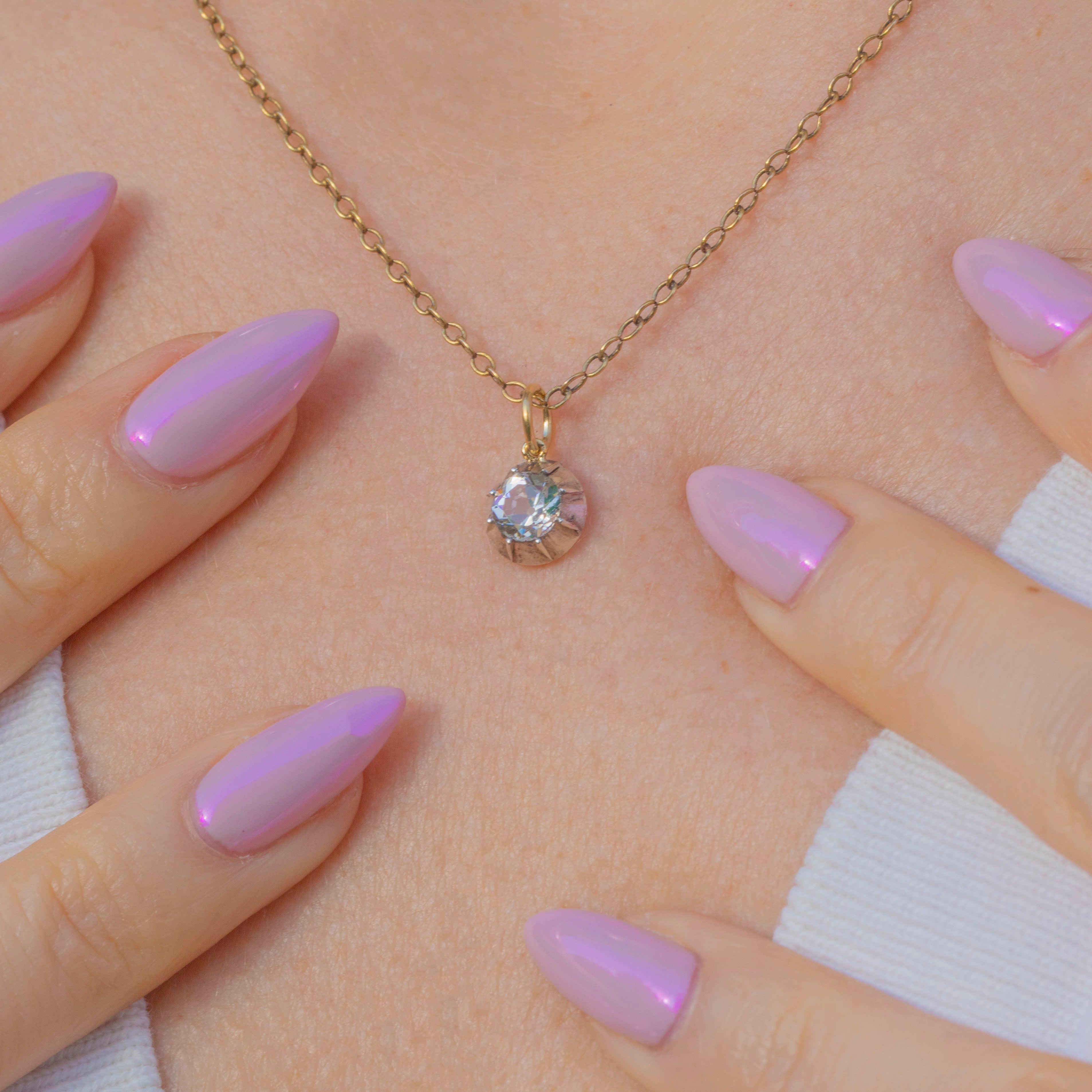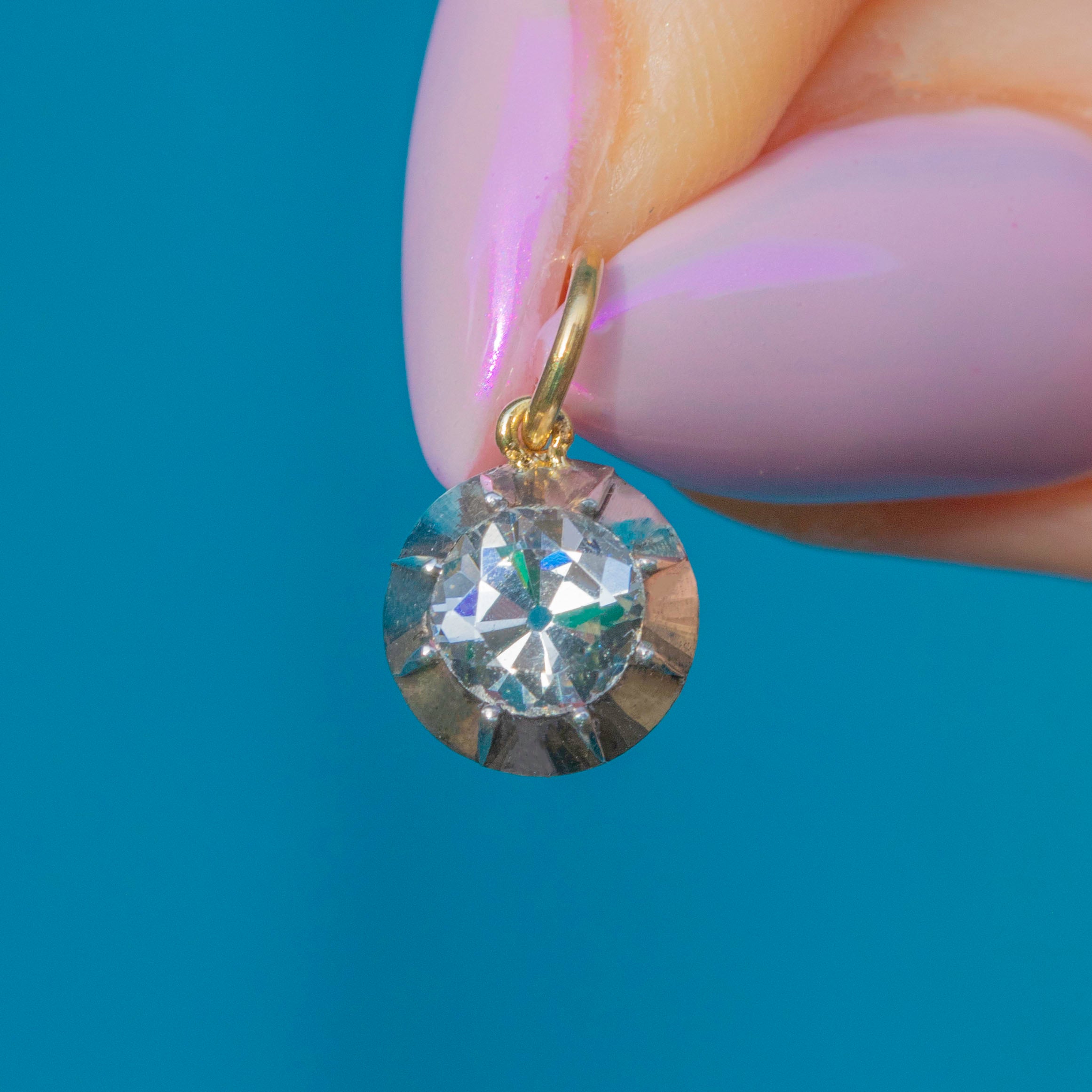 This charming Georgian era piece is set with a sparkling white Paste stone, capturing the antique allure of the late 18th to early 19th century. Though small in scale, the stone shines brightly, making it a perfect accent charm for a bracelet or to layer as part of a pendant stack.