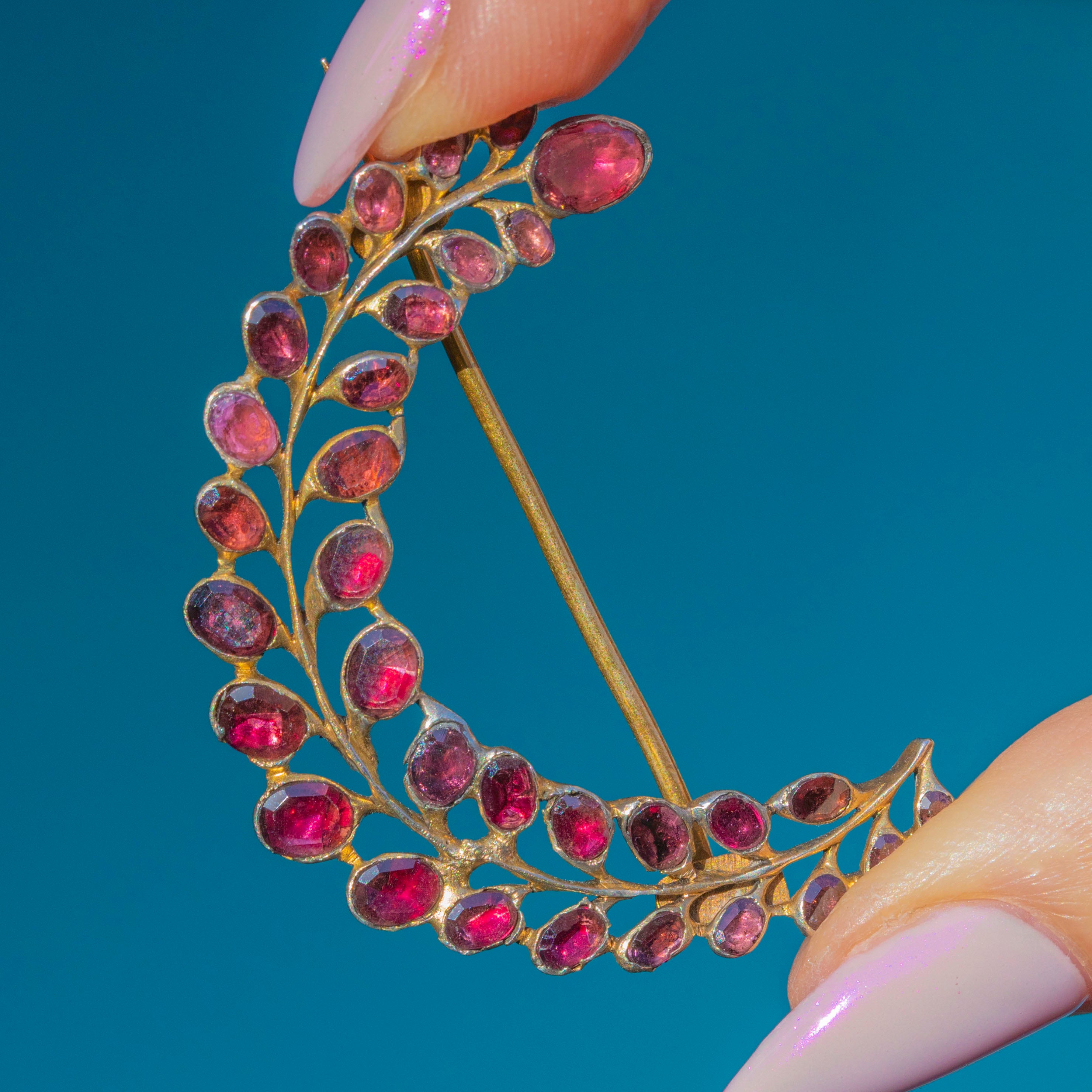 18th Century Georgian Queen Anne Garnet Leaf Spray Brooch c.1780