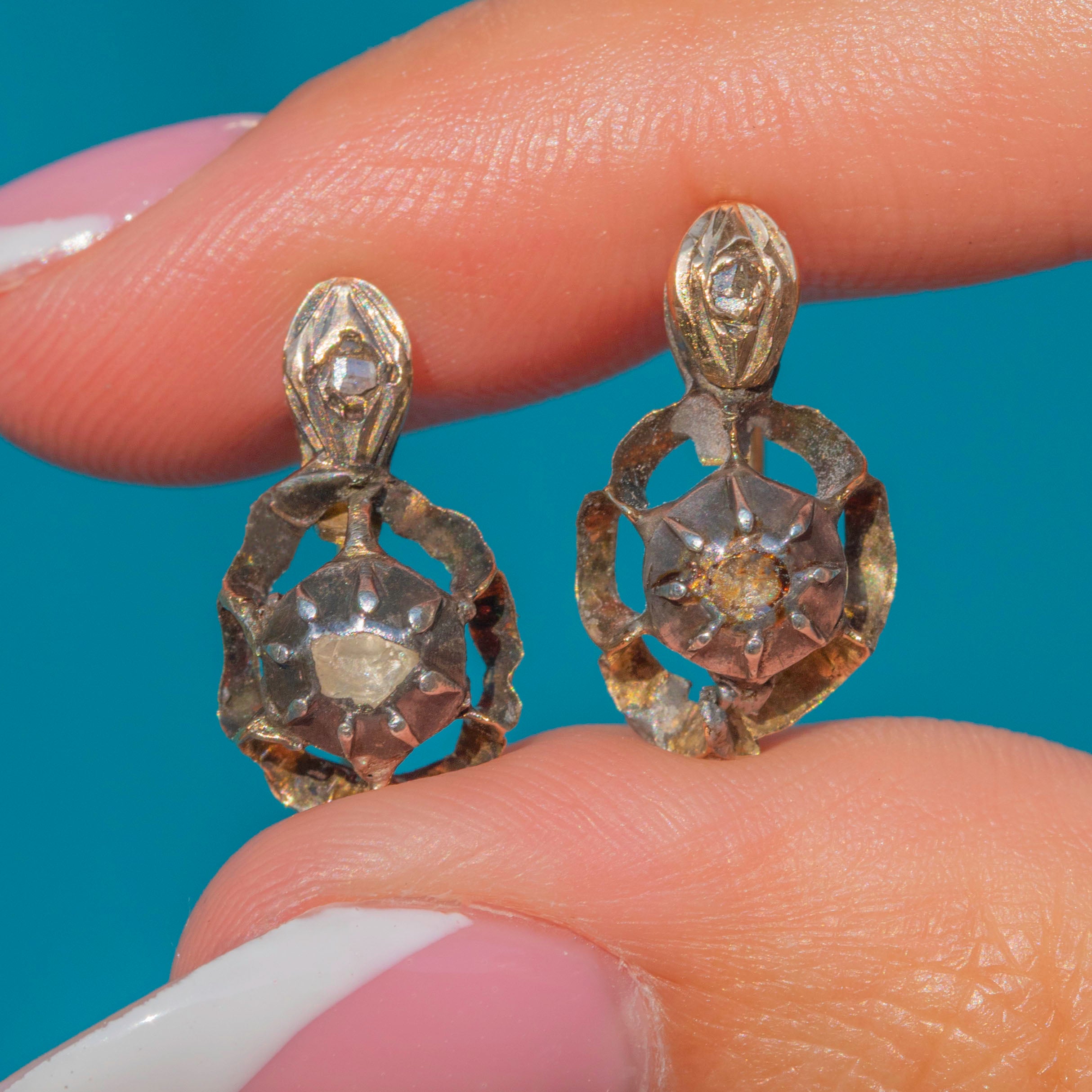 Georgian Iberian 18ct Gold Rose-Cut Diamond Day & Night Earrings