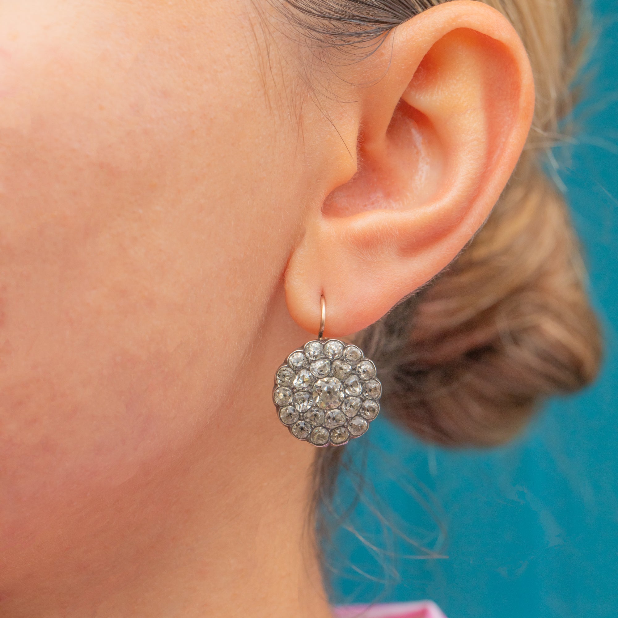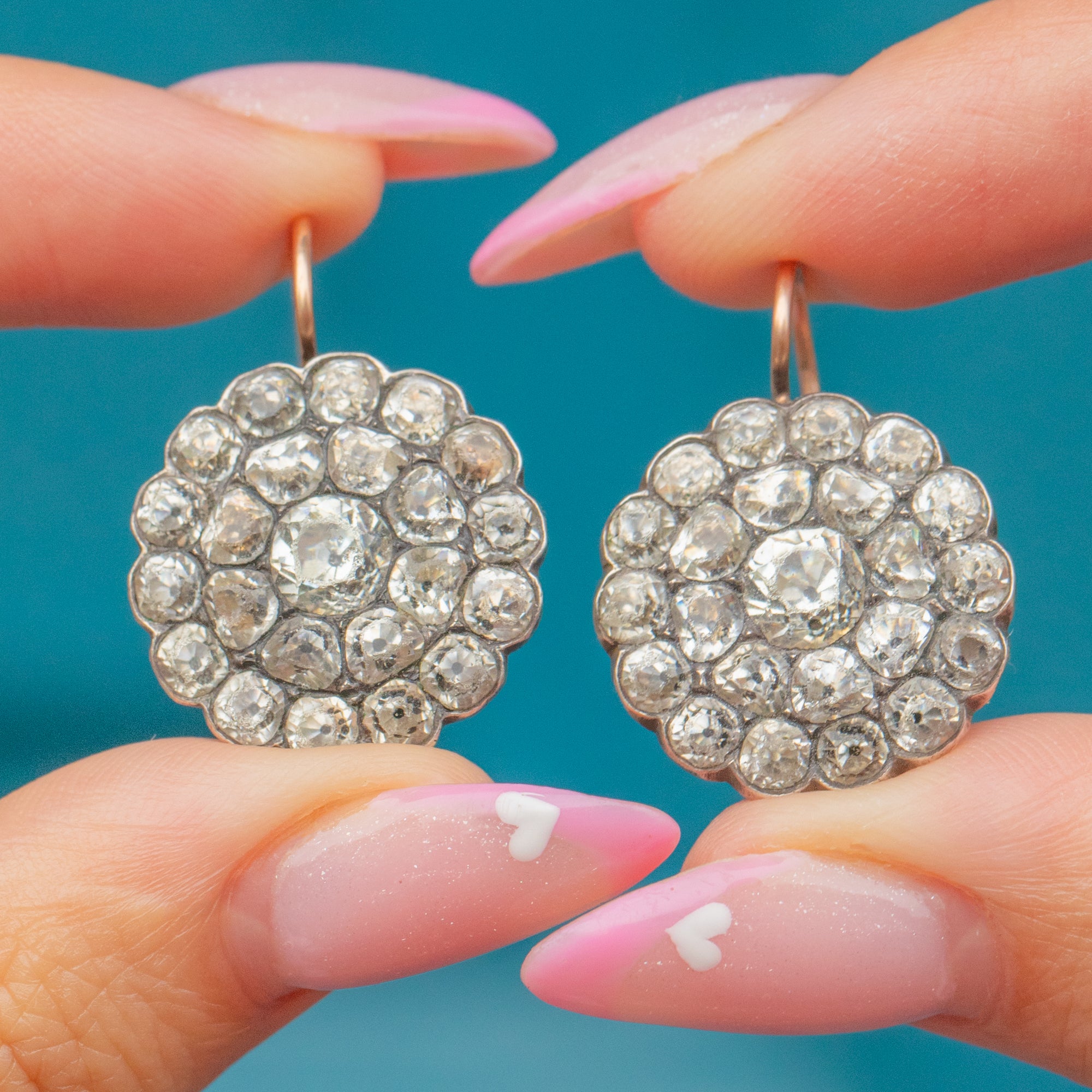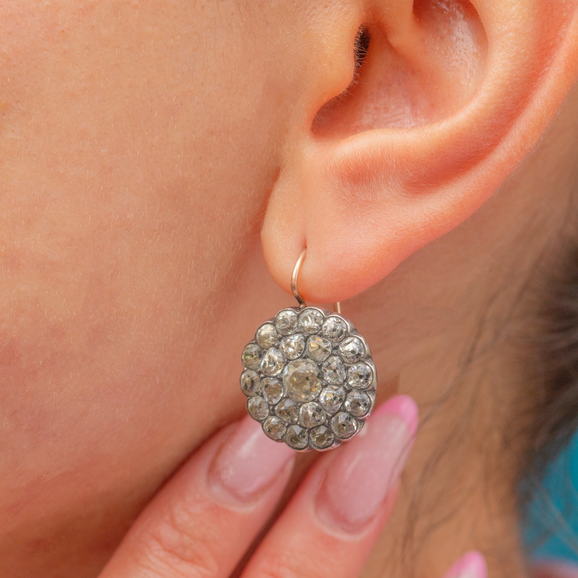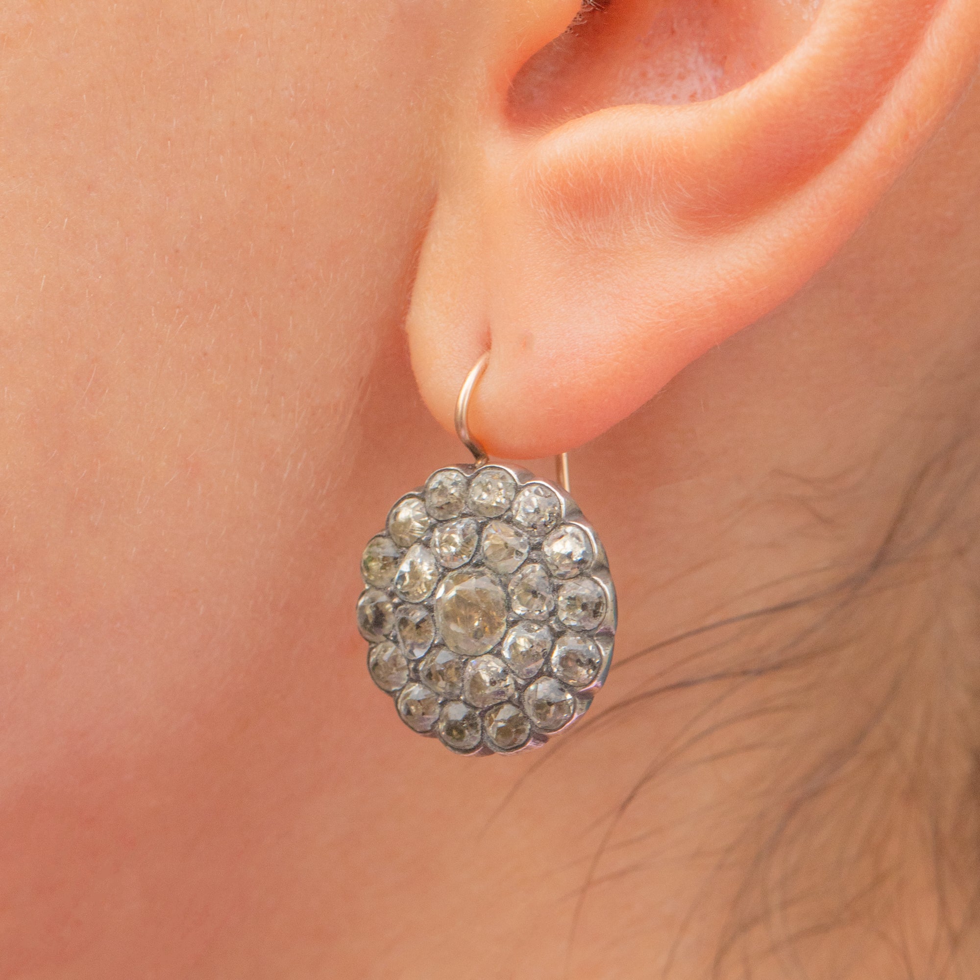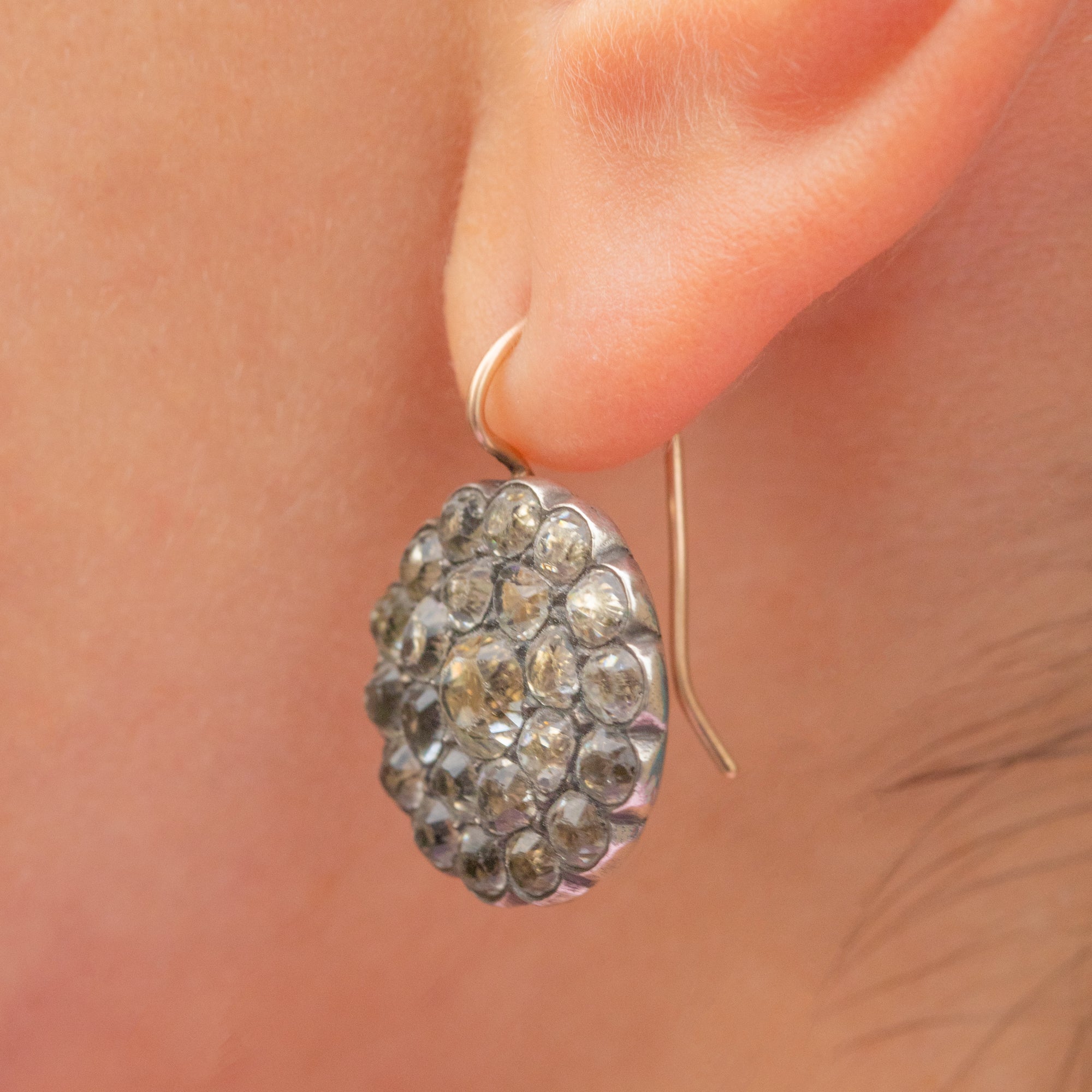 Georgian Paste Cluster Earrings with 9ct Gold Hooks