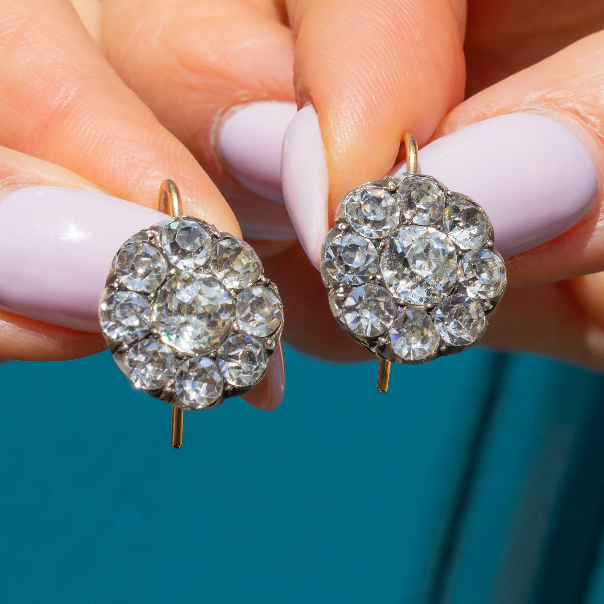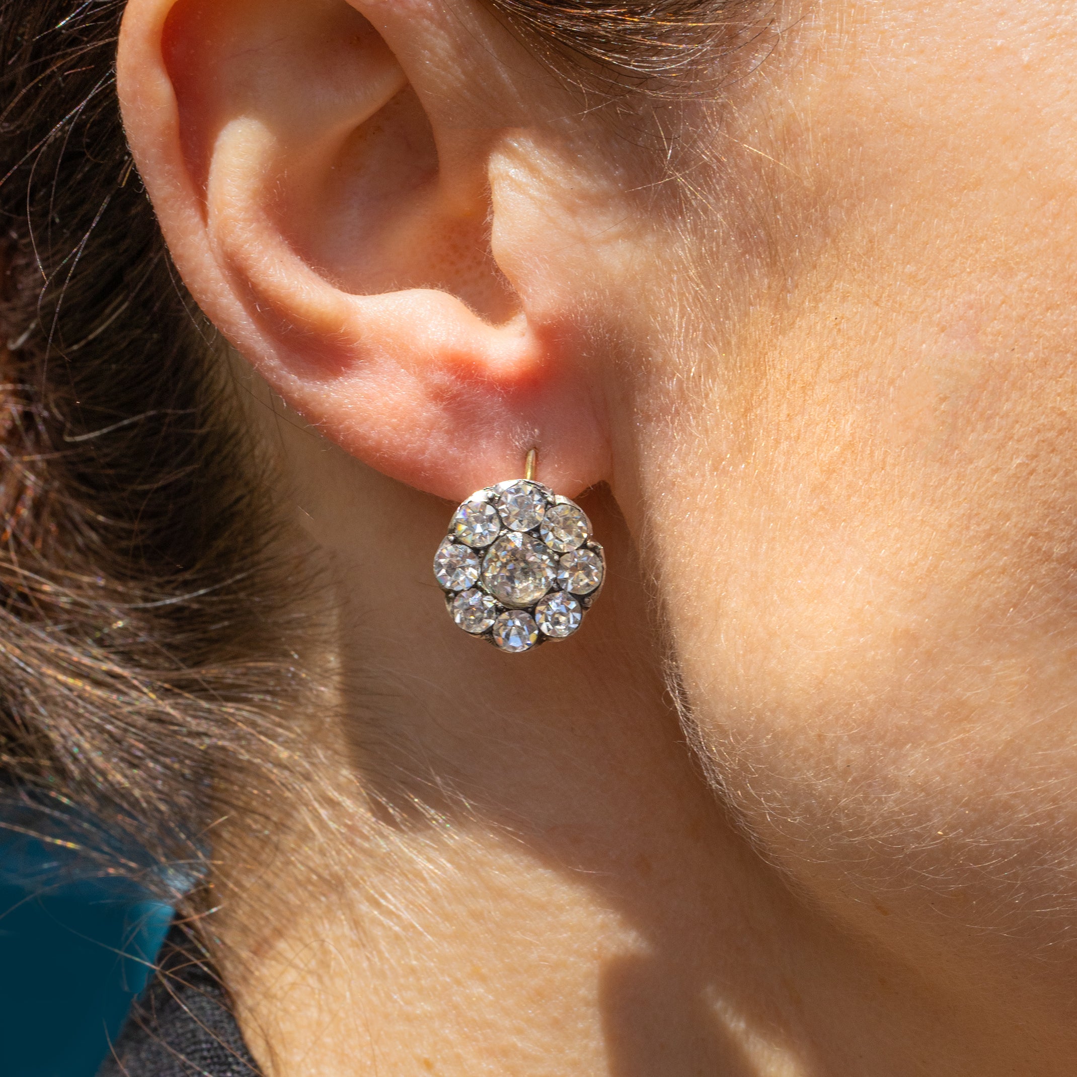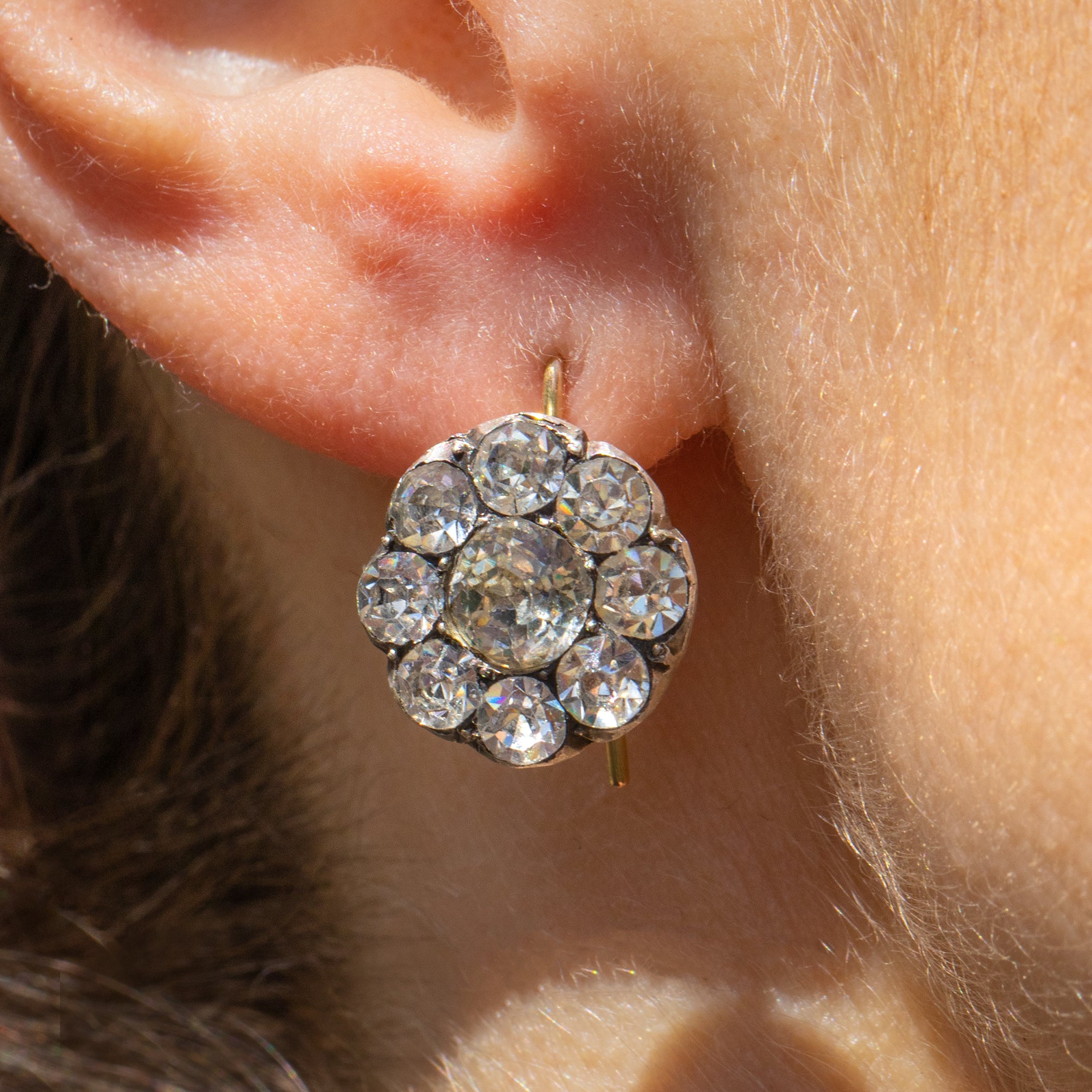 These Georgian Paste flower cluster earrings are an unmissable myriad of sparkles. Their floral clusters are formed of impressive Paste gemstones, each with a characterful charm that sits just below the lobe.