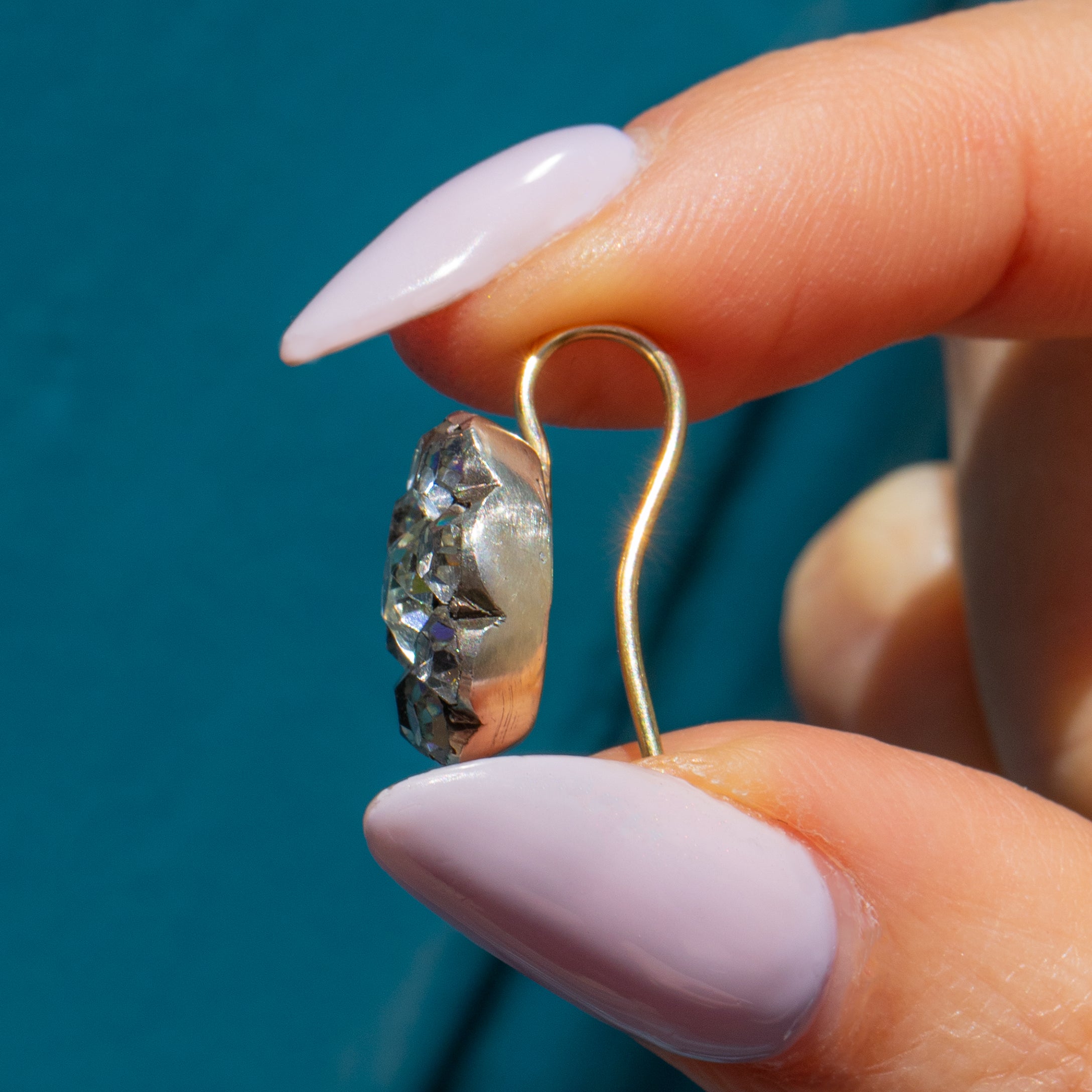 MATERIALS: Tests as Sterling Silver settings, 15ct Gold hooks, Paste.