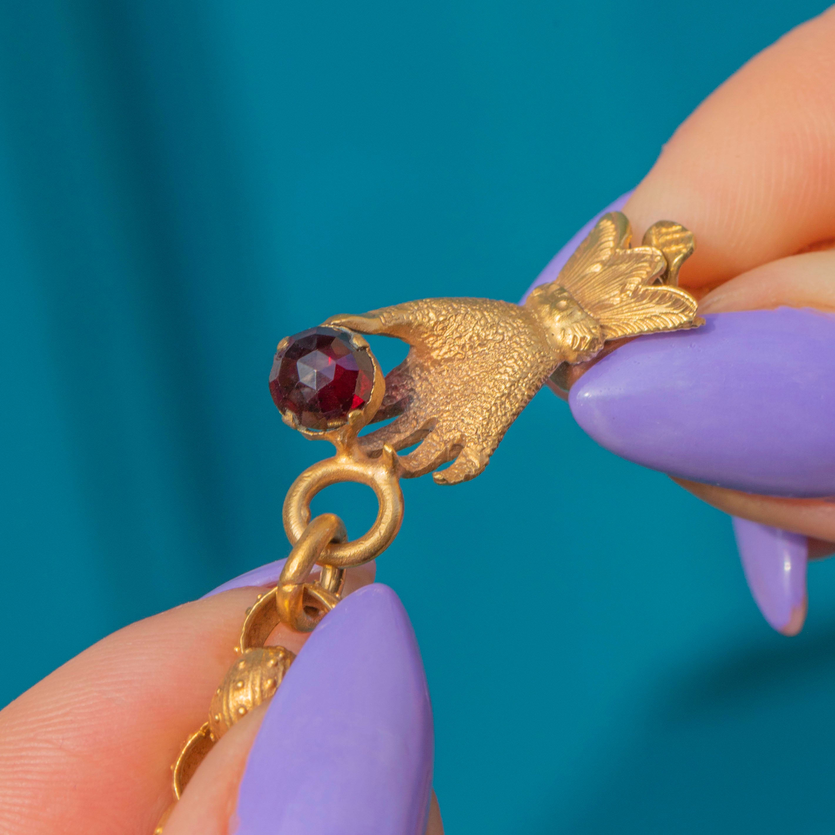 Her merlot-hued Garnet perfectly complements the golden honey hues of the Pinchbeck. During the Georgian period, Pinchbeck was used as an affordable alternative to Gold, and having retained every inch of her splendour, you can see what makes her so desirable! The necklace sits uber comfortably against the skin, and at a wearable length of 15.5", you'll be reaching for her often!