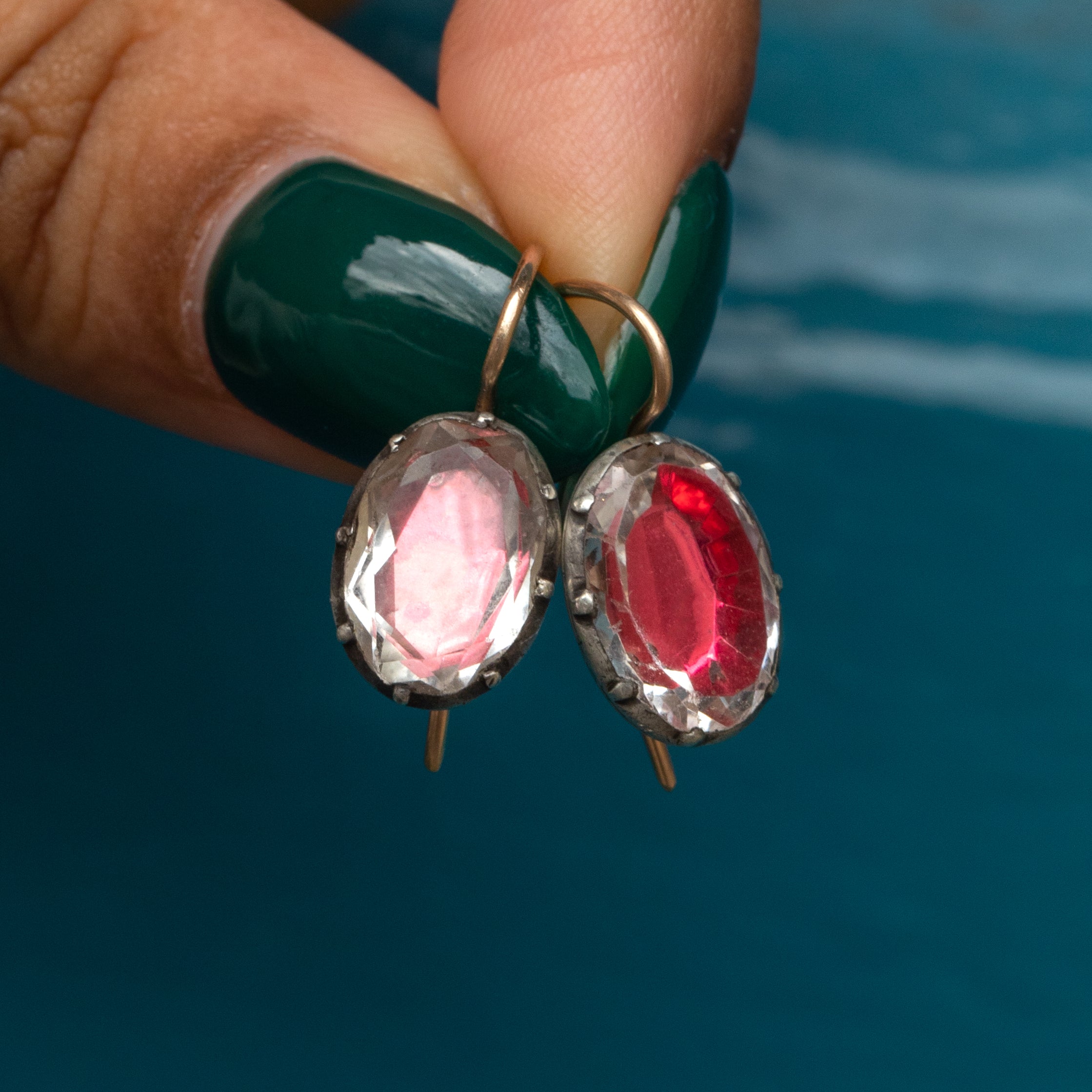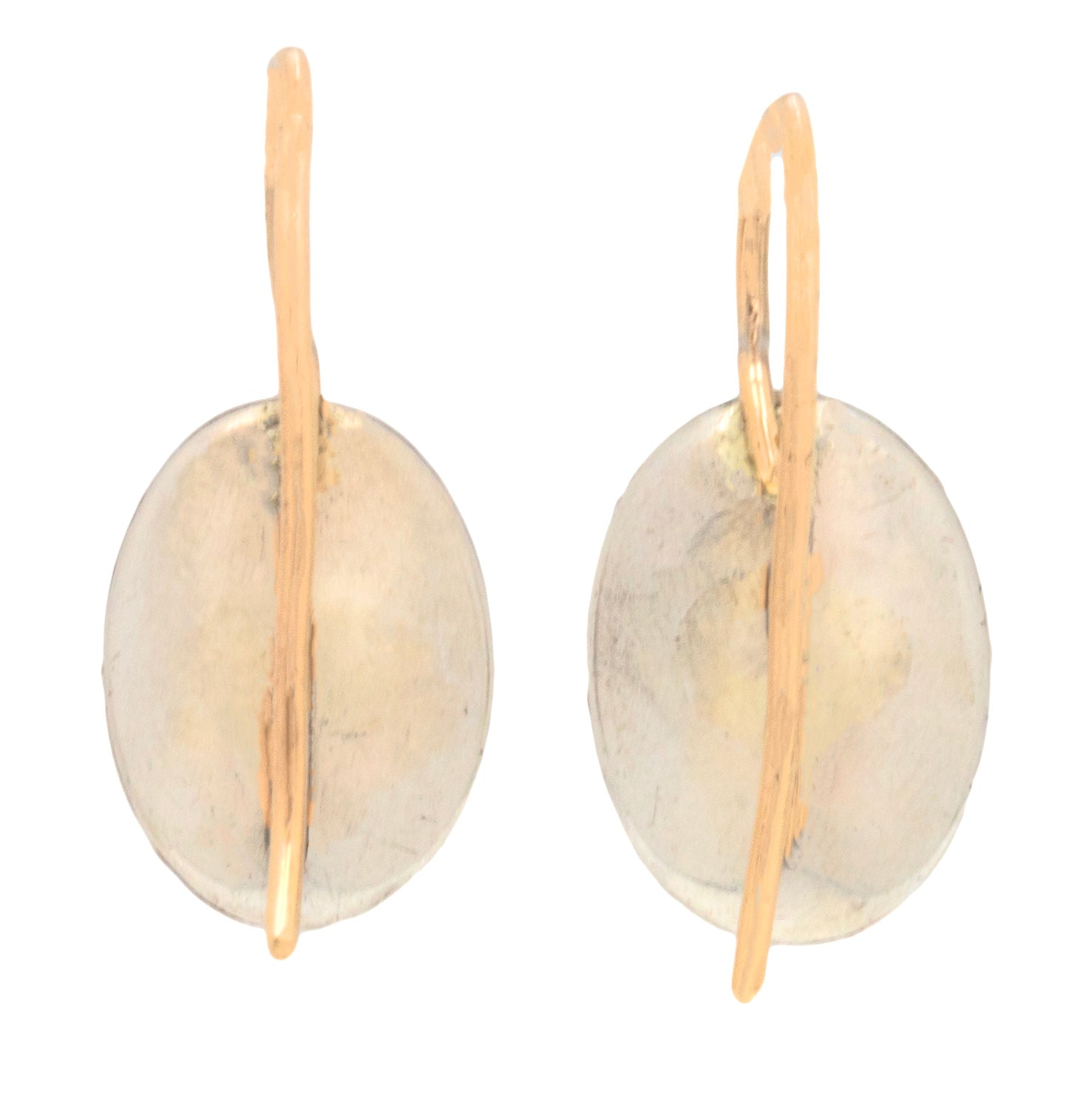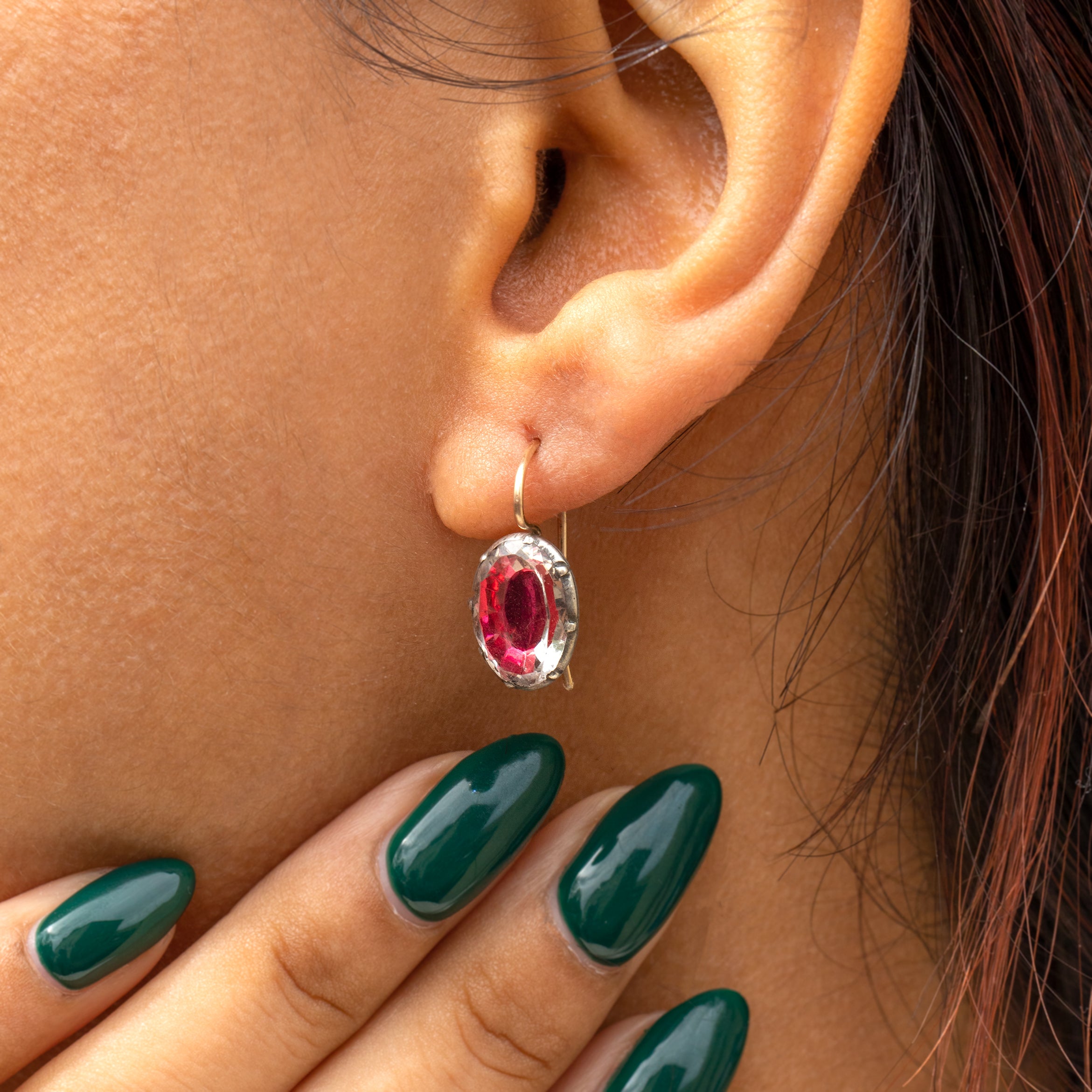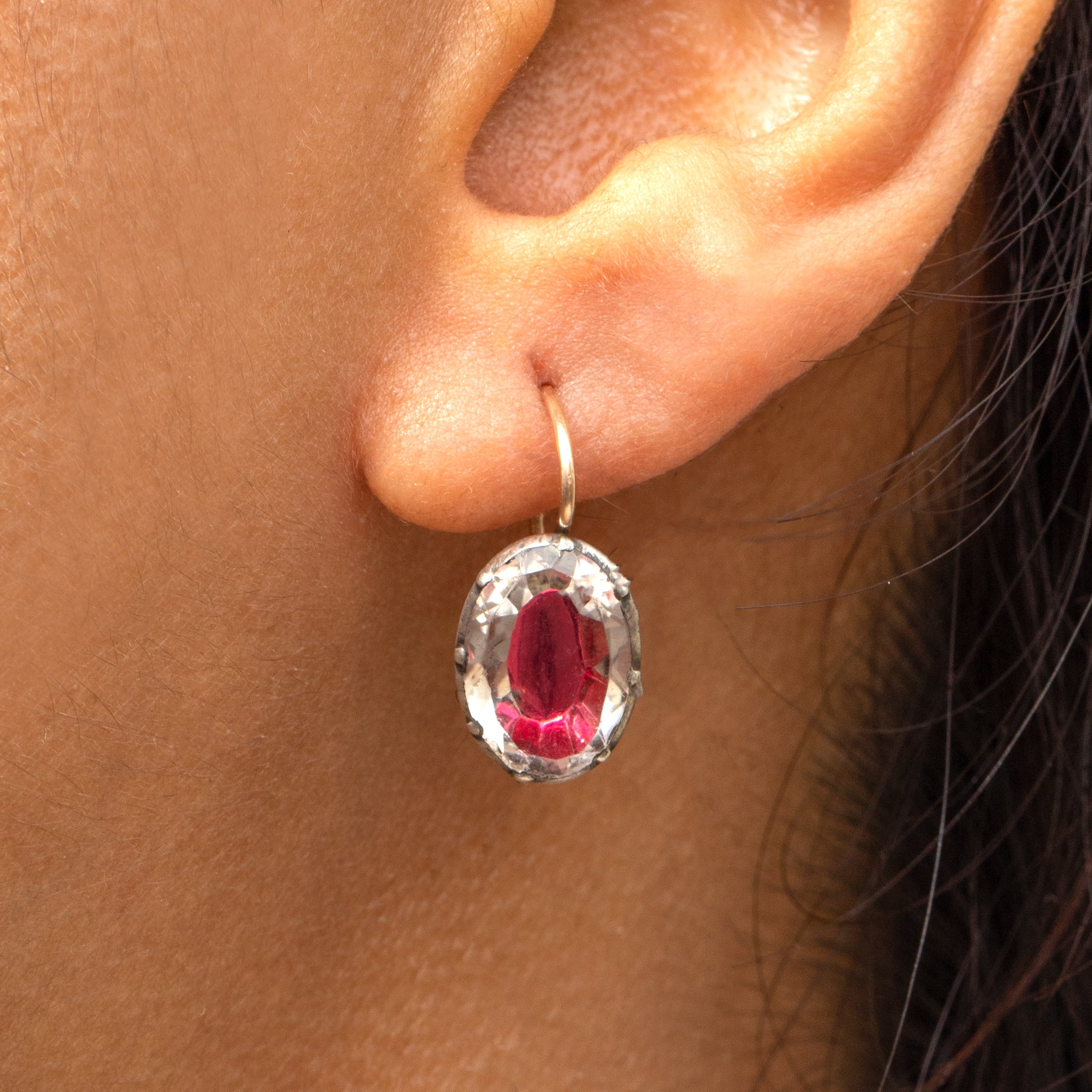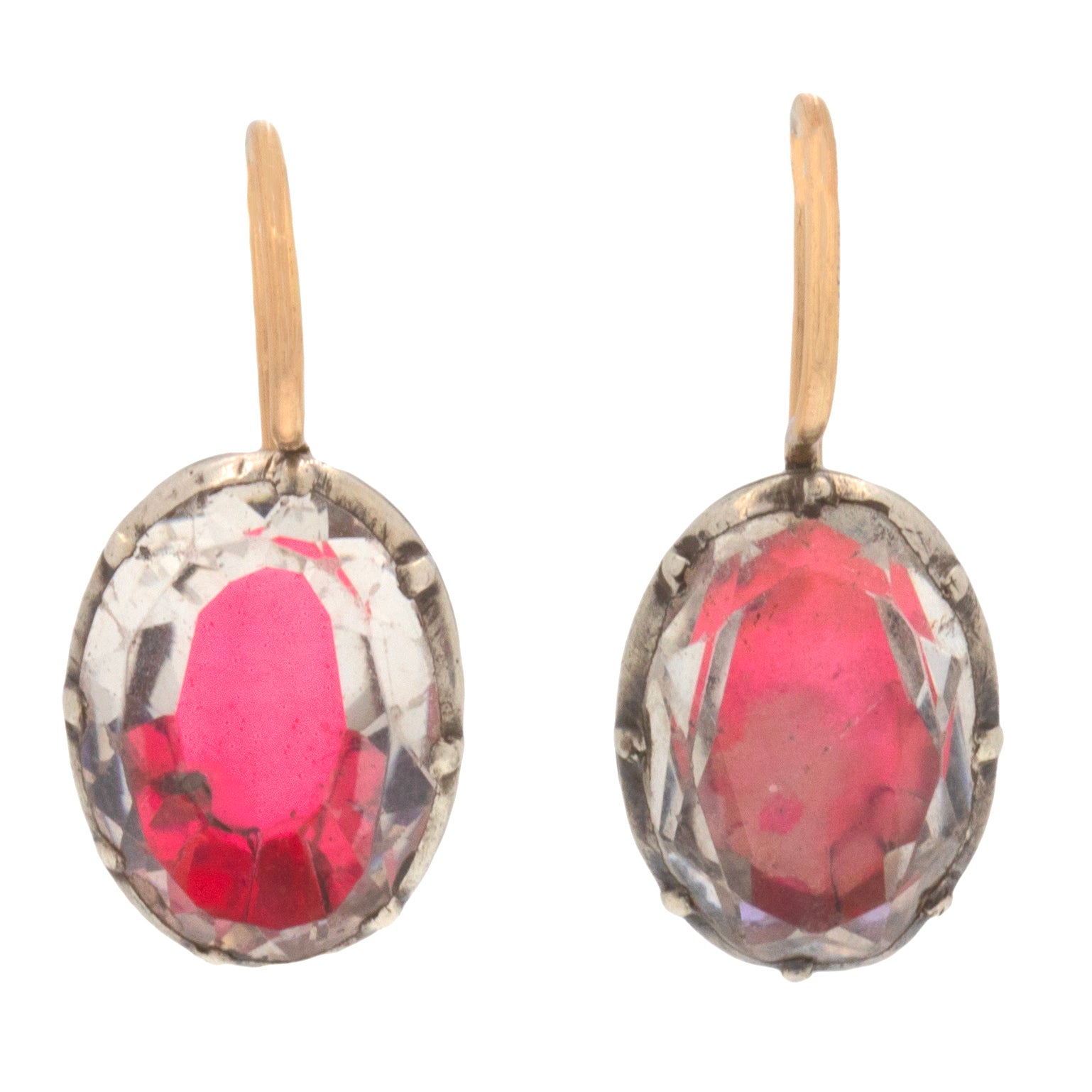 Boucles d'oreilles boutons ovales en pâte rose à dos argenté géorgien, crochets en or 9 carats