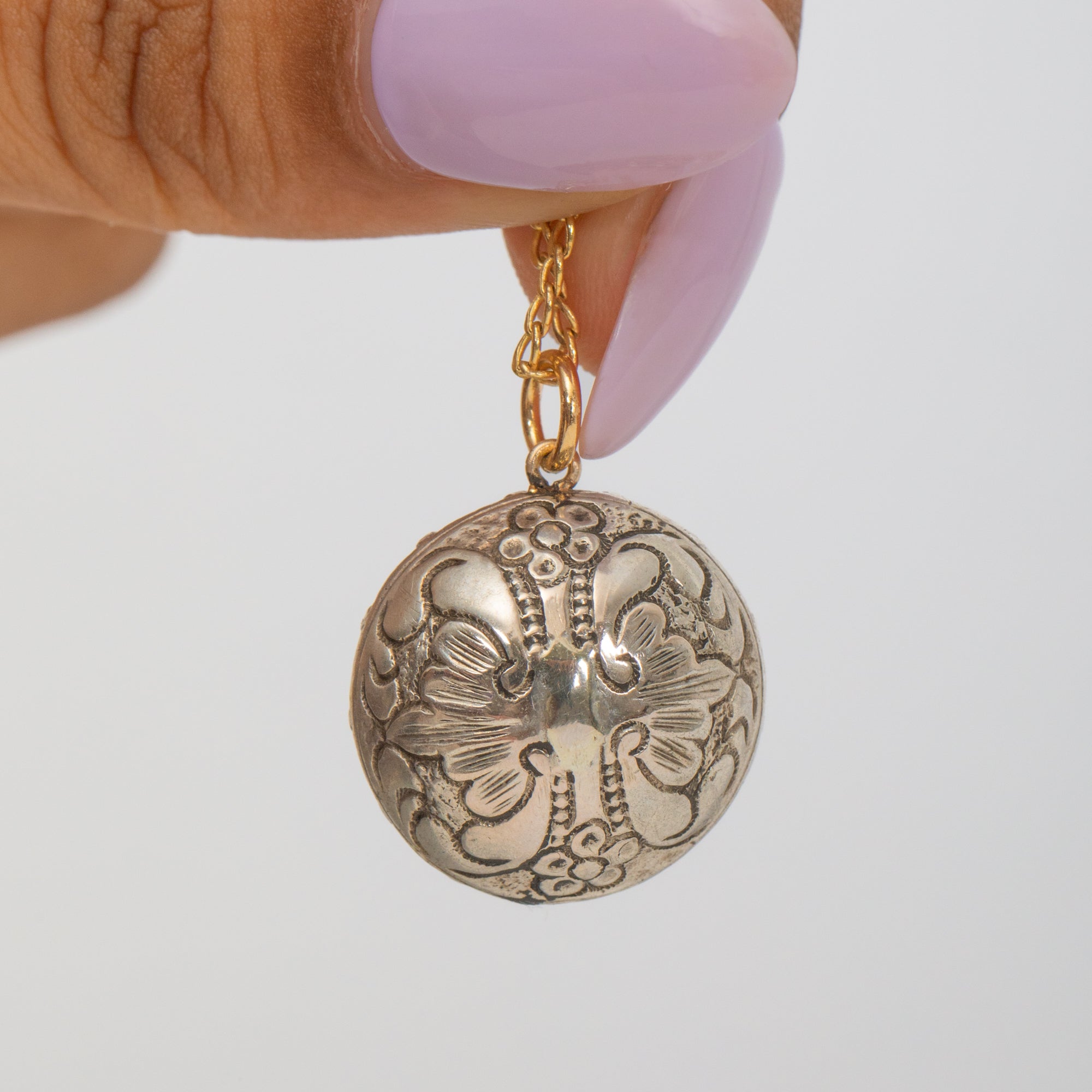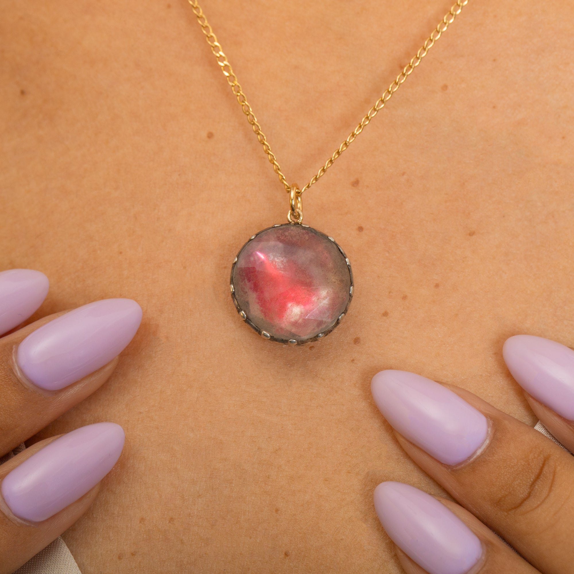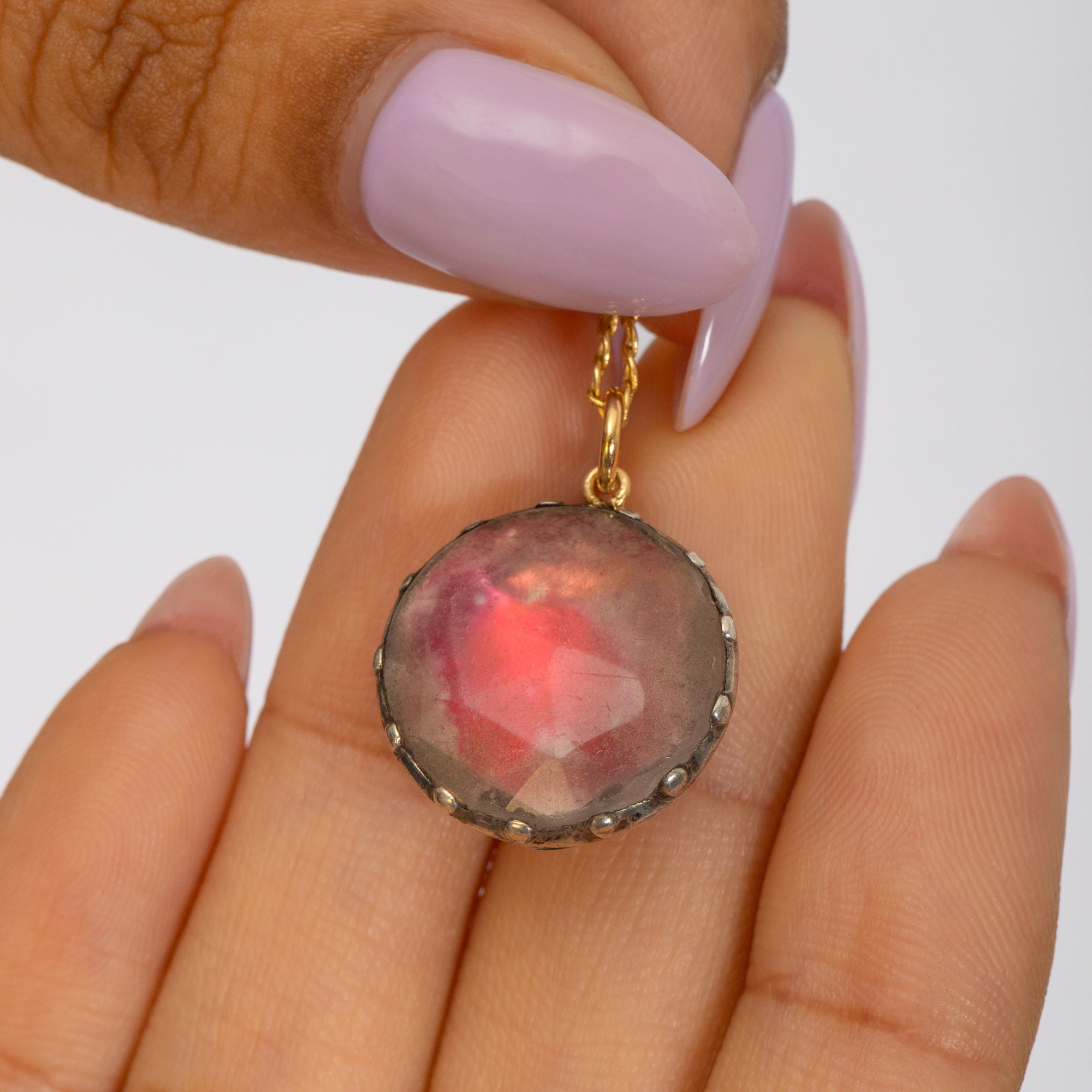 Pendentif géorgien en pâte à effet nacré rose blush avec dos argenté