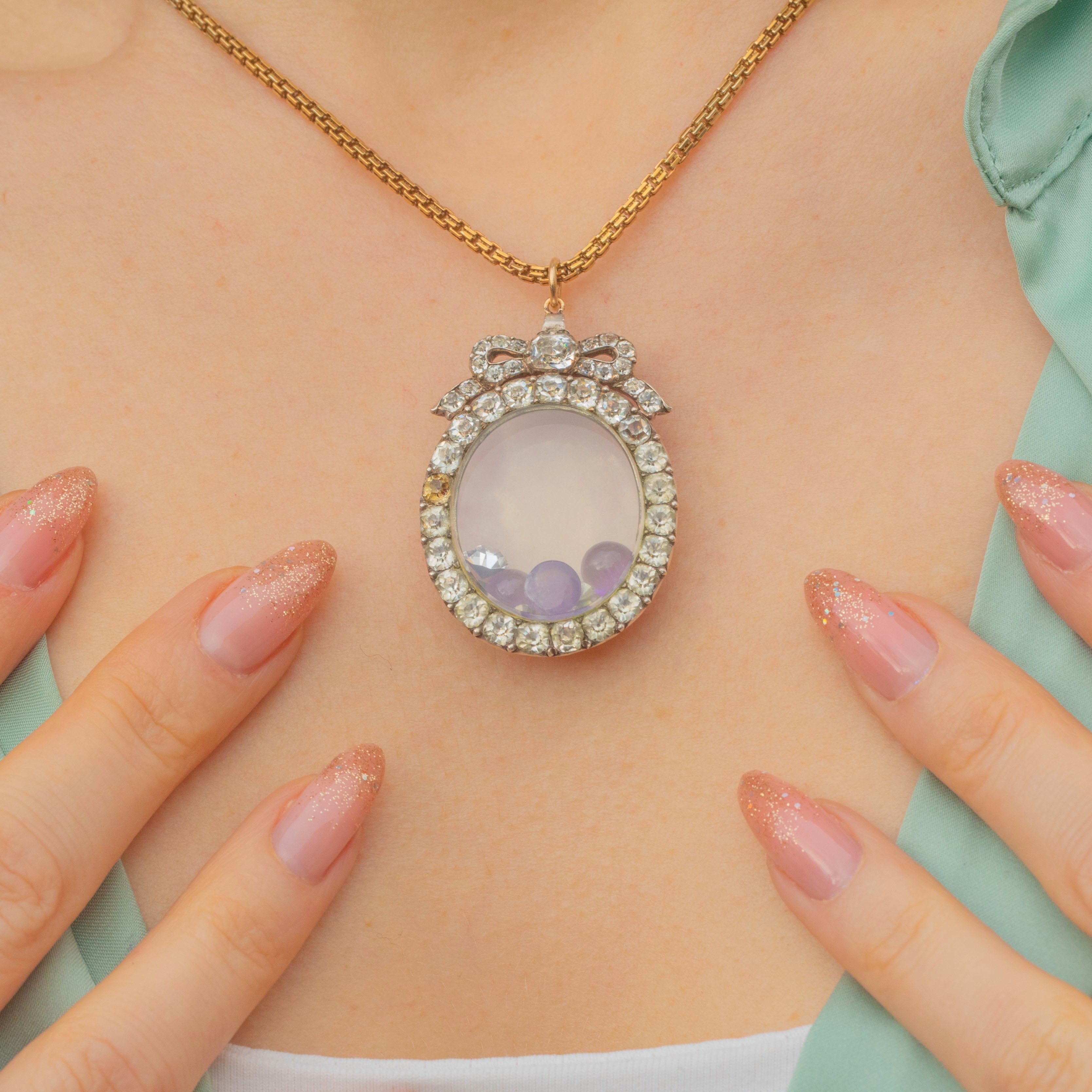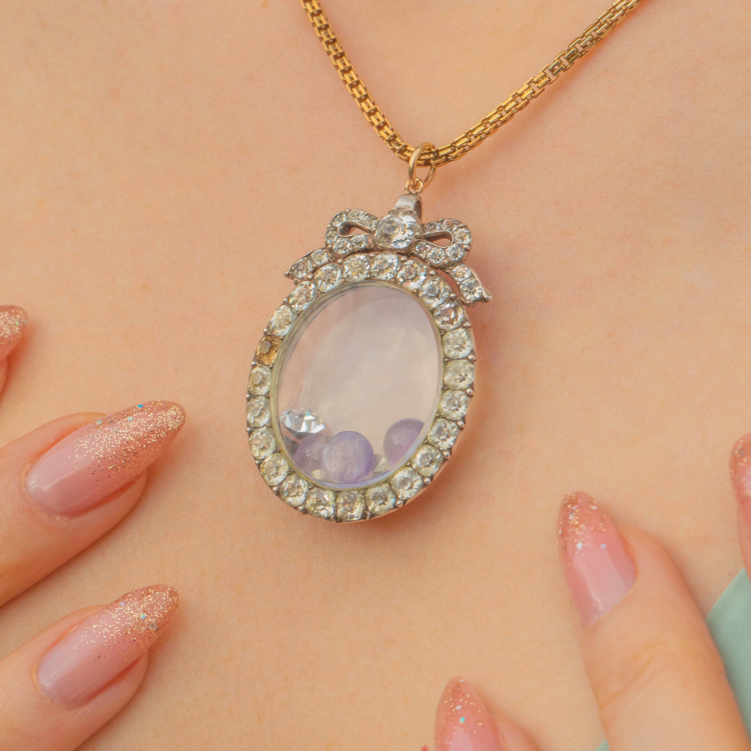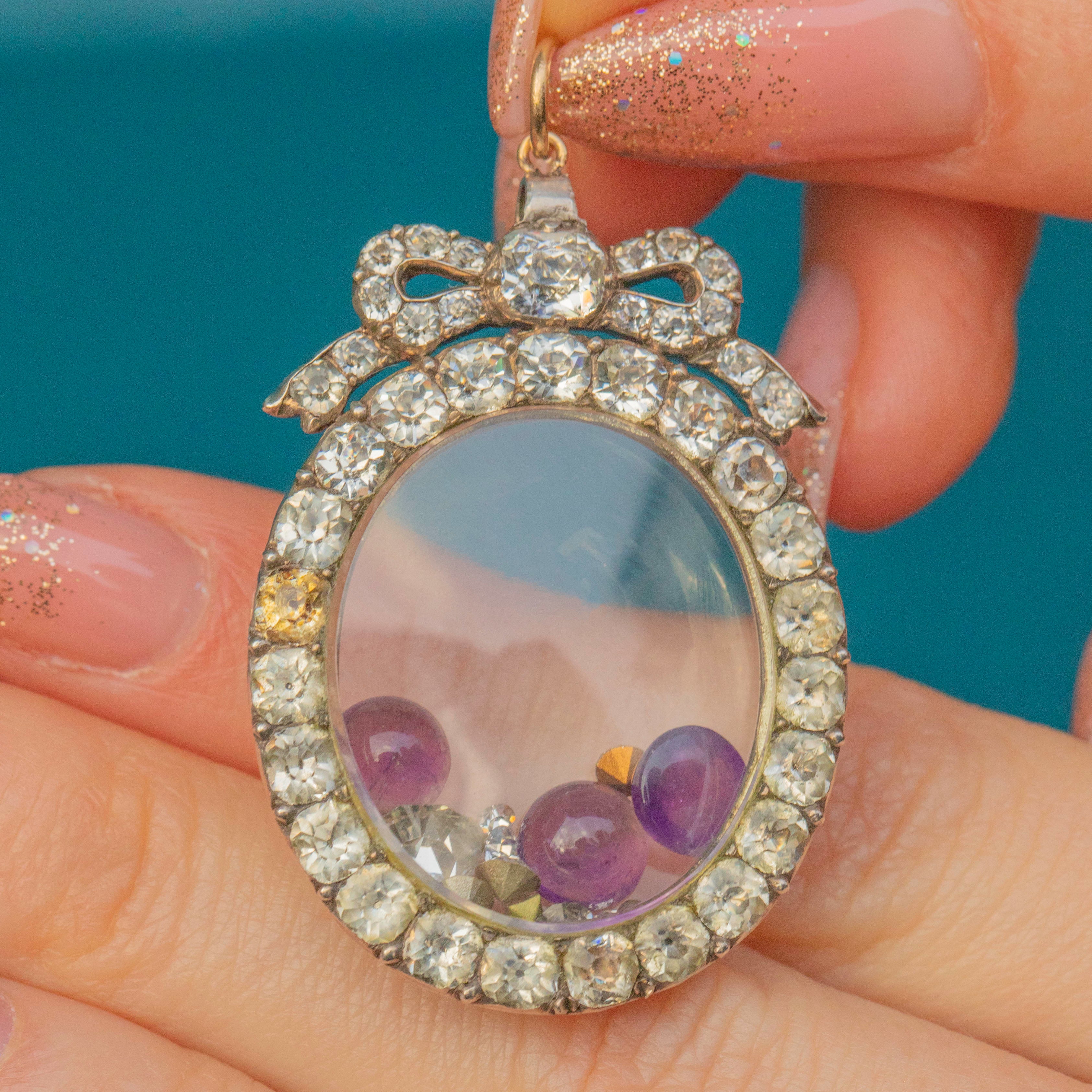 Feast your eyes on this exquisite Georgian Silver Black Dot Paste Shaker Locket! This timeless Georgian beauty is breathtaking, made from Silver, inlaid with fine quality Black DotPaste gems and home to Amethyst cabochons and foiled Paste gemstones