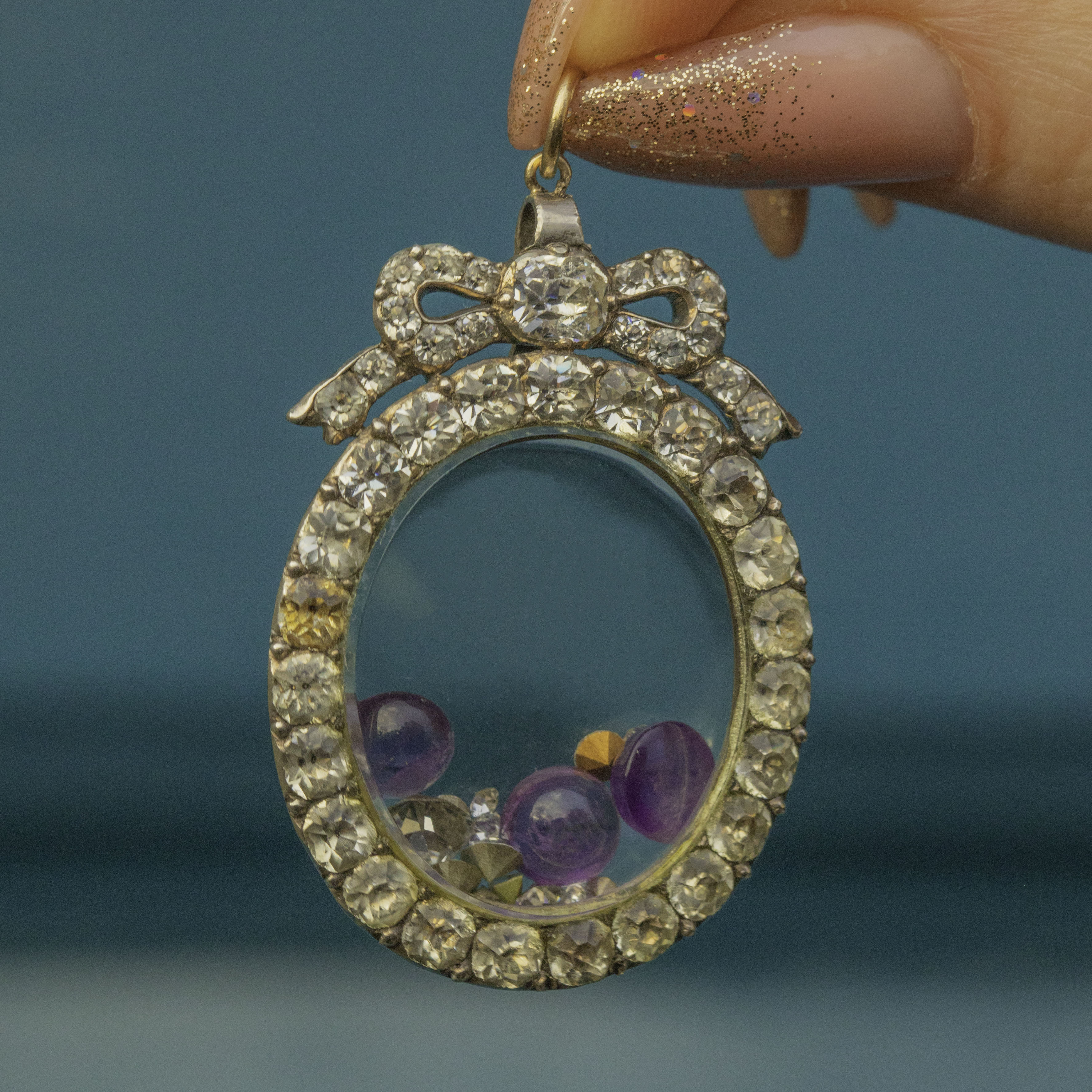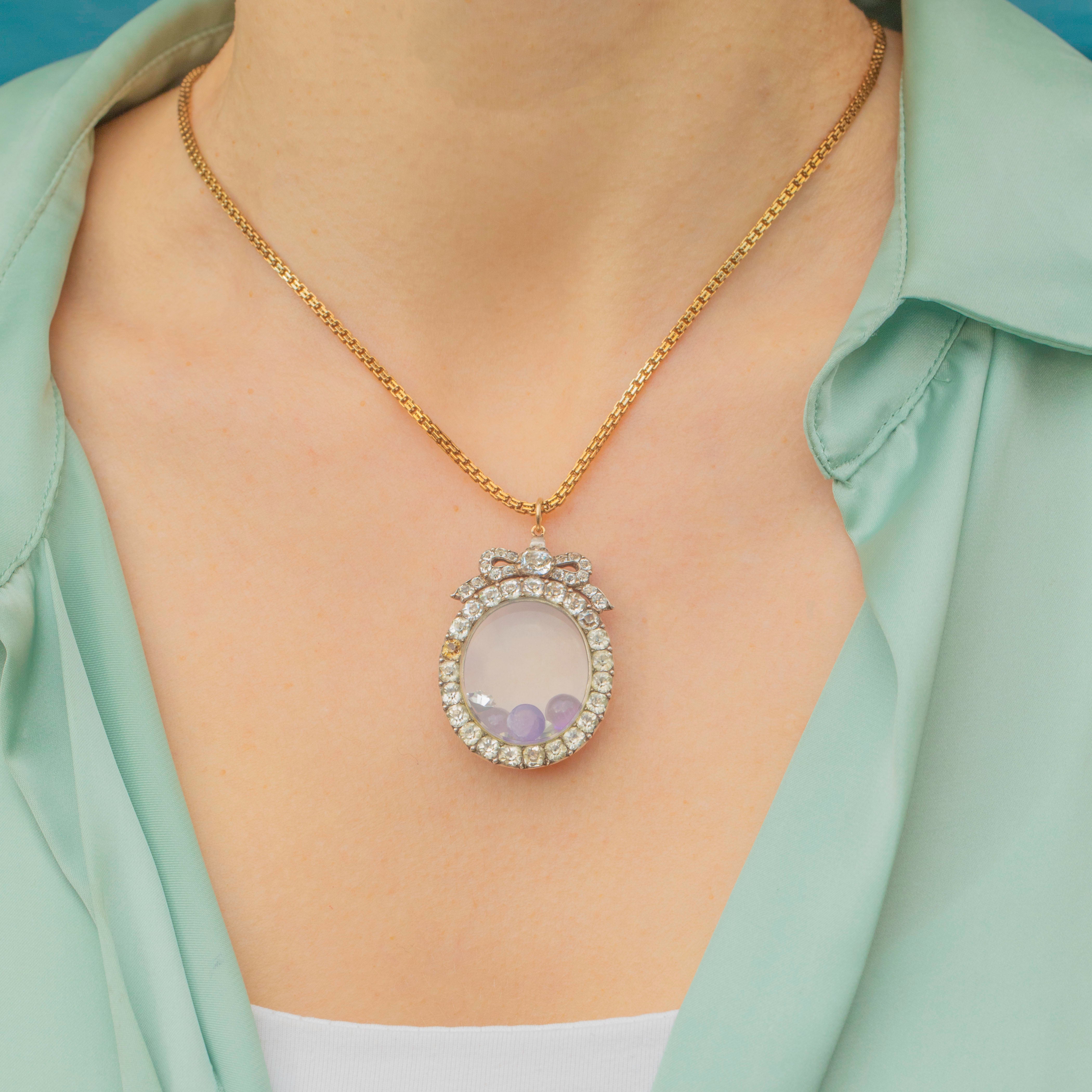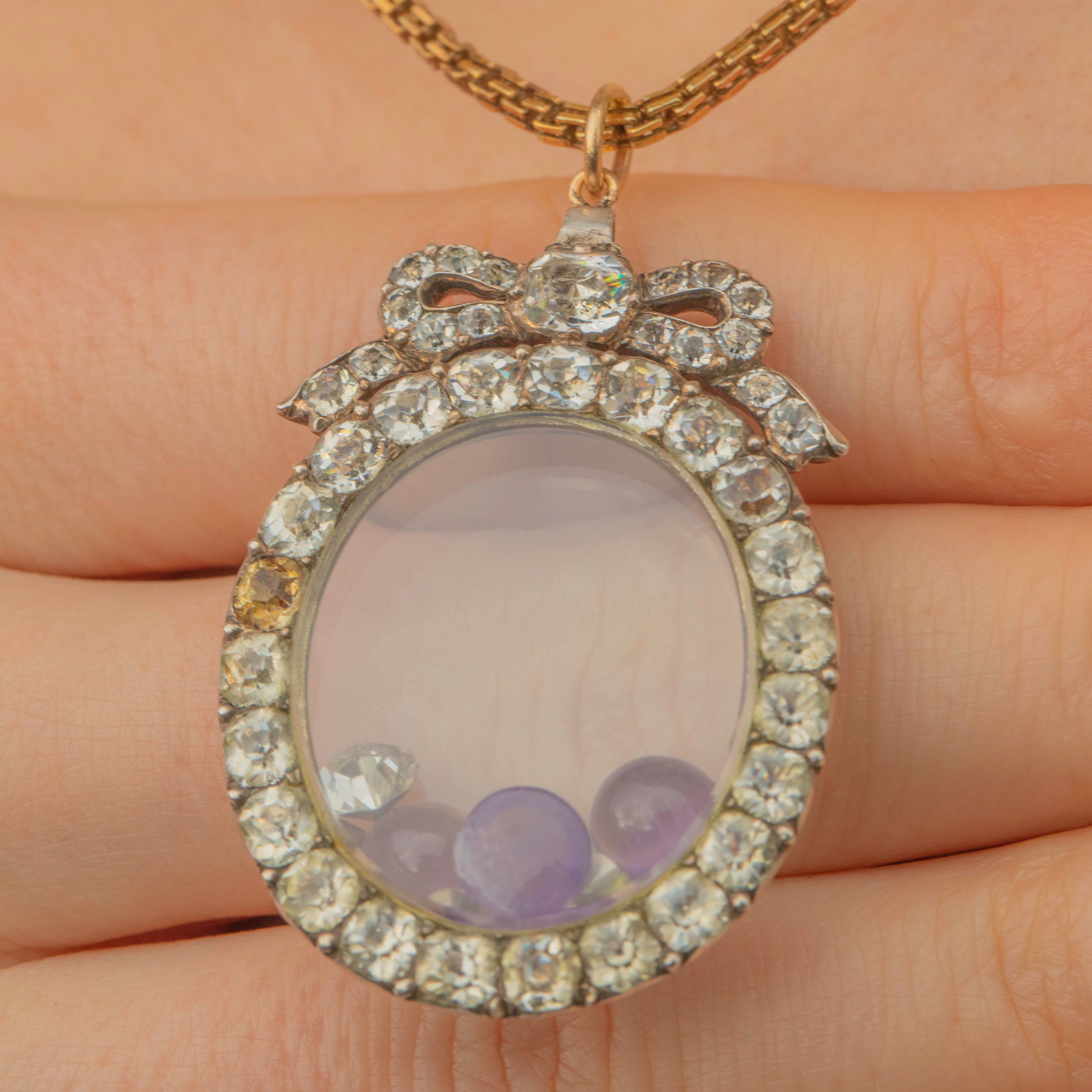 Feast your eyes on this exquisite Georgian Silver Black Dot Paste Shaker Locket! This timeless Georgian beauty is breathtaking, made from Silver, inlaid with fine quality Black DotPaste gems and home to Amethyst cabochons and foiled Paste gemstones