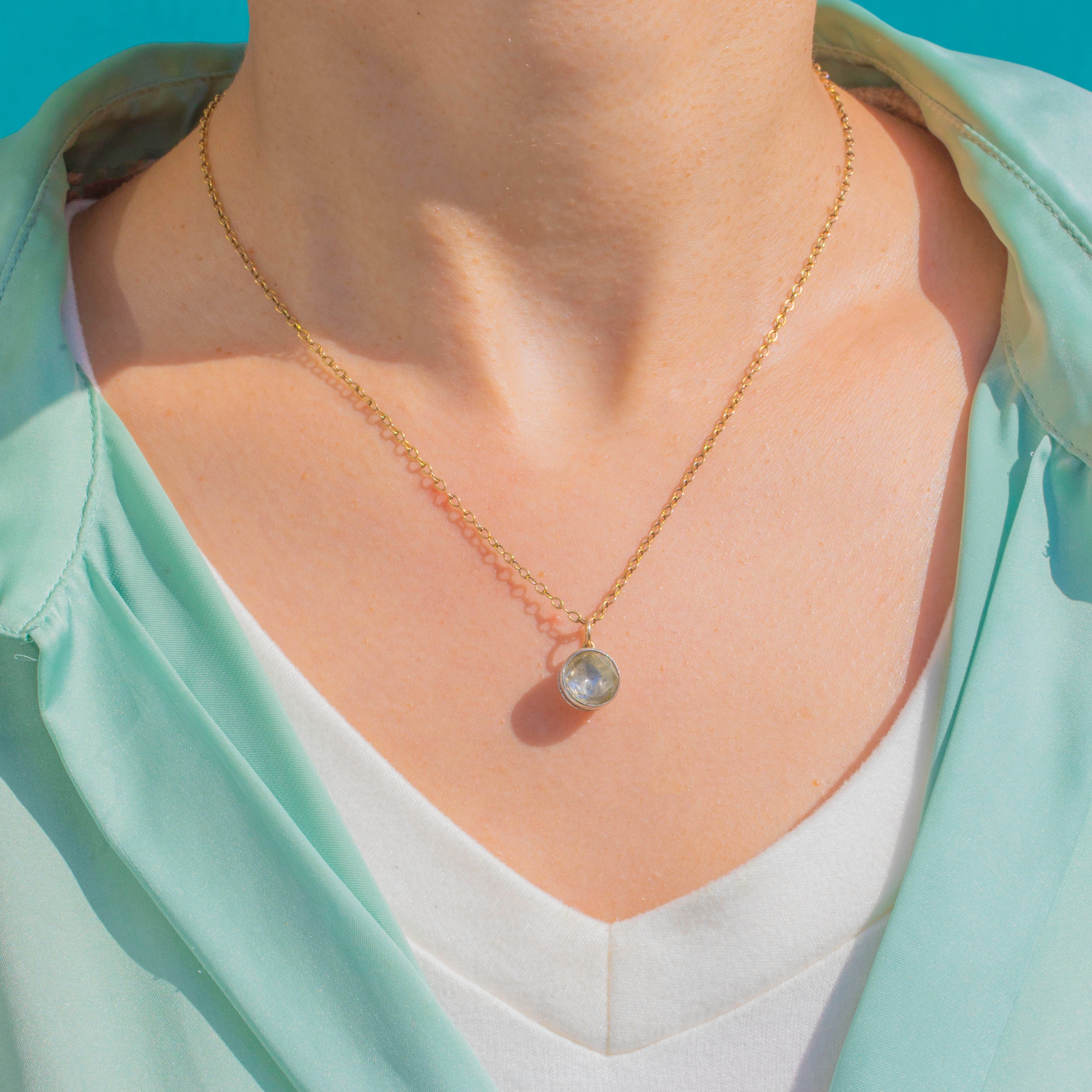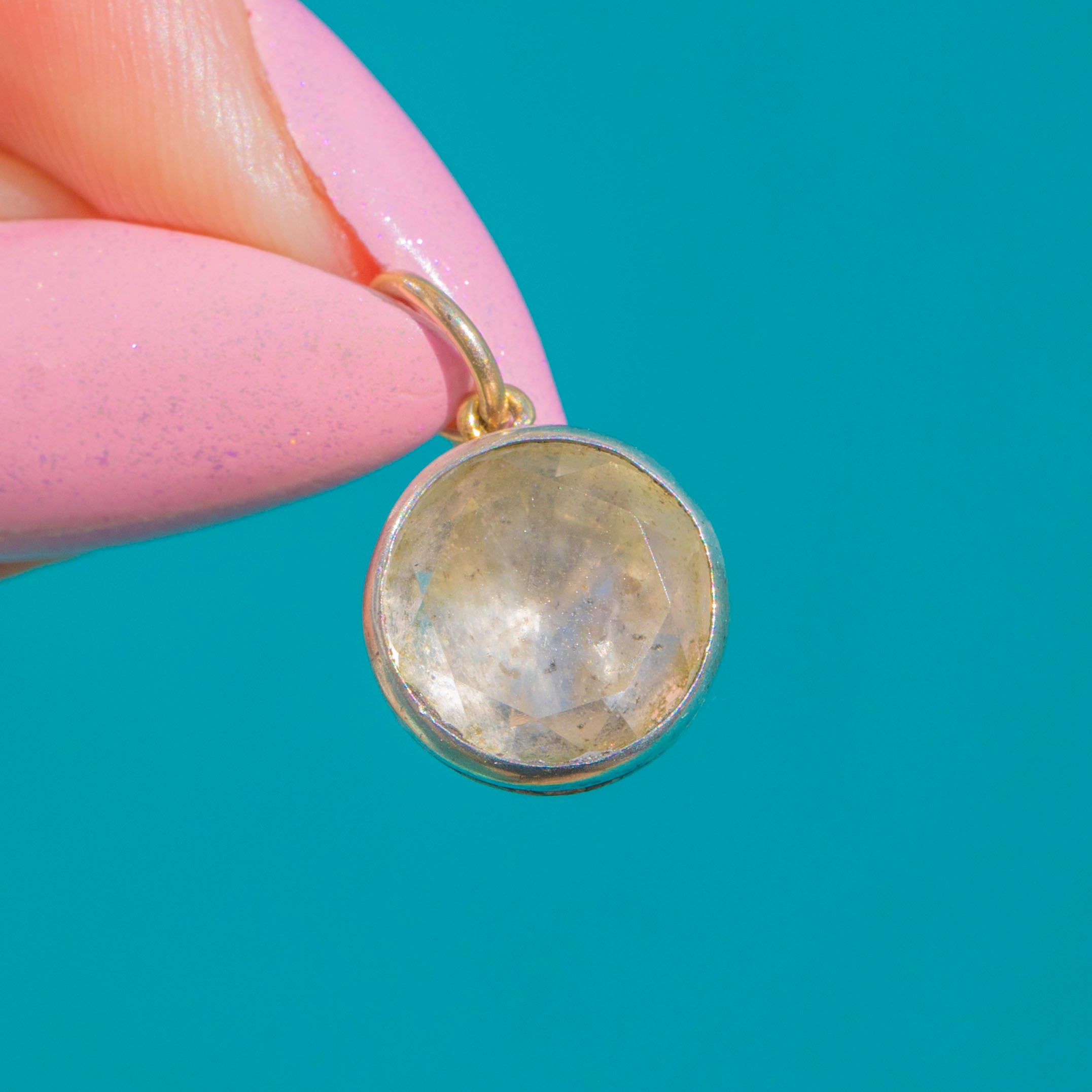 Glowing with that coveted Georgian charm, this petite foiled Quartz pendant shimmers with a bright, silvery luminosity. The round Quartz is set in a closed-back Silver bezel to amplify its glow, with a neat 9ct Gold jump ring adding a refined two-tone touch. Minimalist and elegant, it’s a timeless solitaire that feels wonderfully wearable every day.