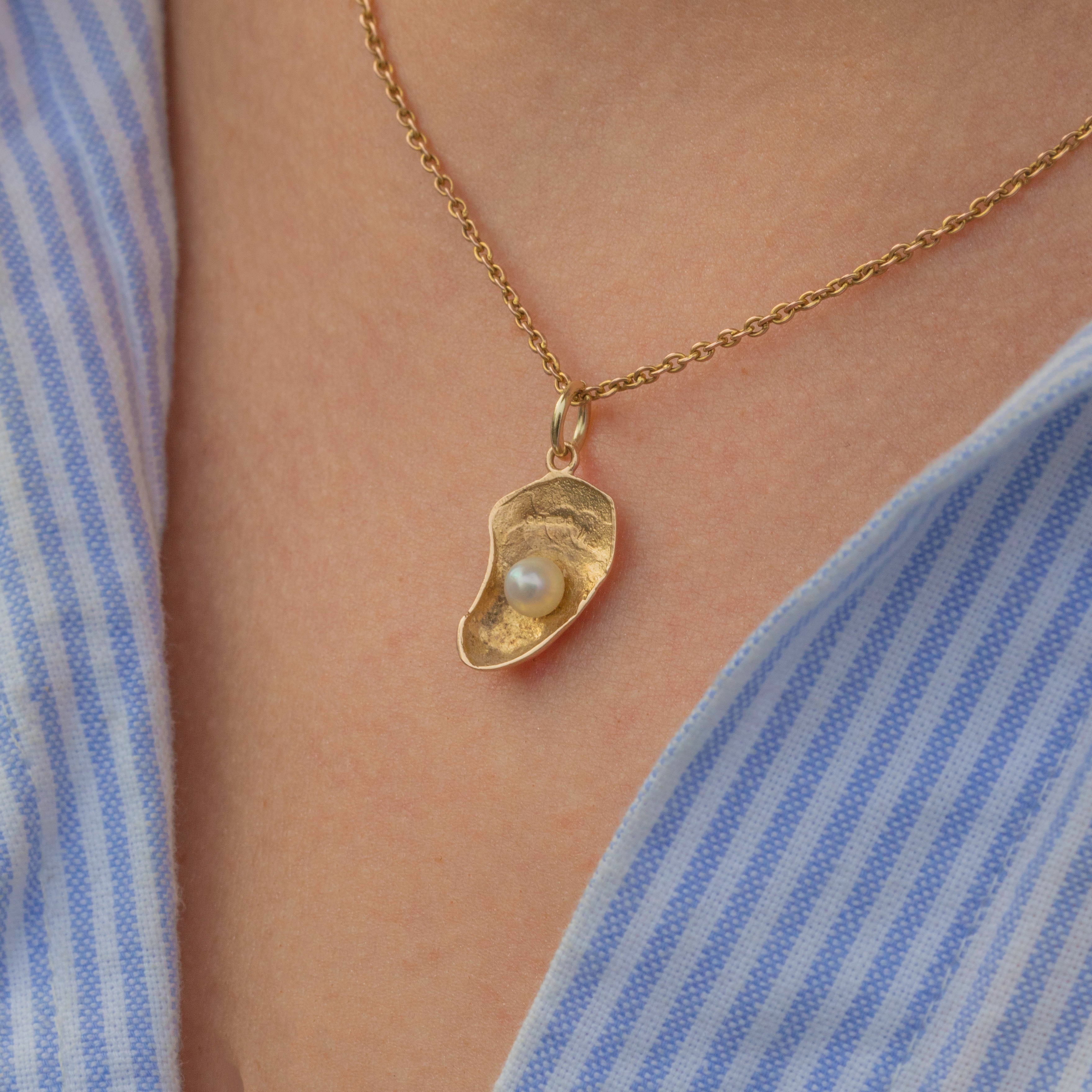 Delicately crafted to reflect the shimmering hues of sun-kissed sands, this charm features a creamy iridescent Pearl, effortlessly complimented by the warmth of her 9ct Gold shell. Suspended from a fine chain, this versatile vintage piece is the perfect whimsical treasure to add to your collection.
