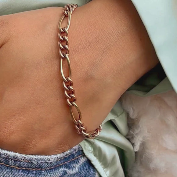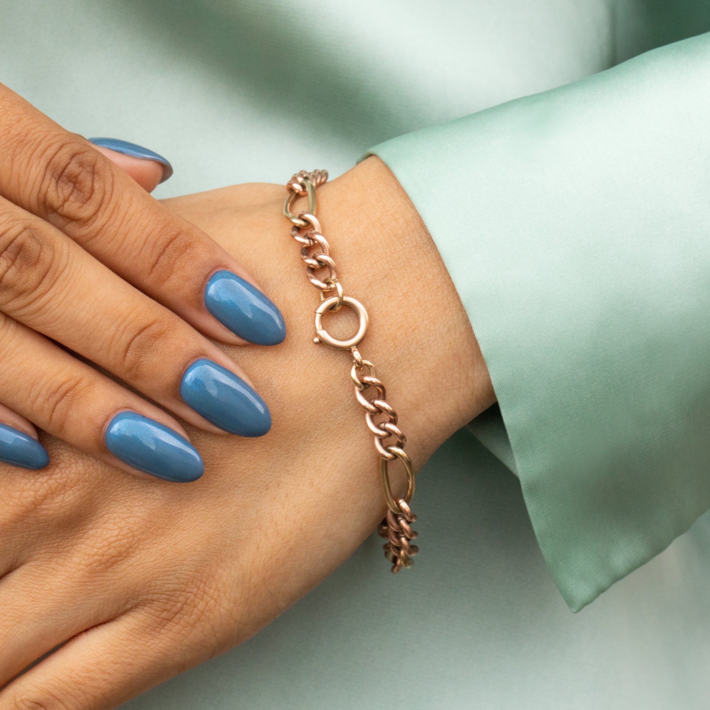 Bracelet Figaro bicolore en or 9 carats antique, 12,5 g
