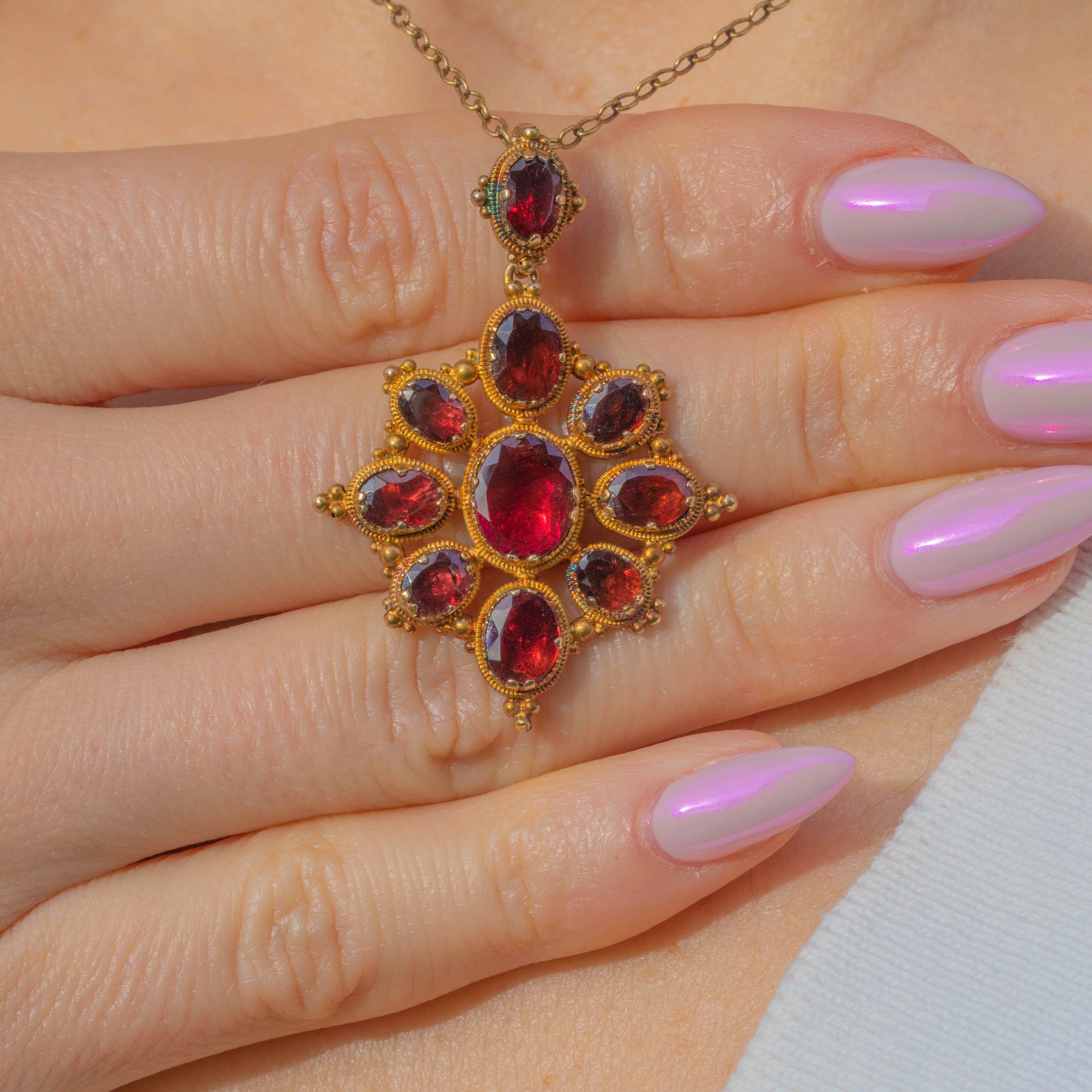 Impeccable Georgian Era Garnet Cruciform Cluster Pendant c.1820