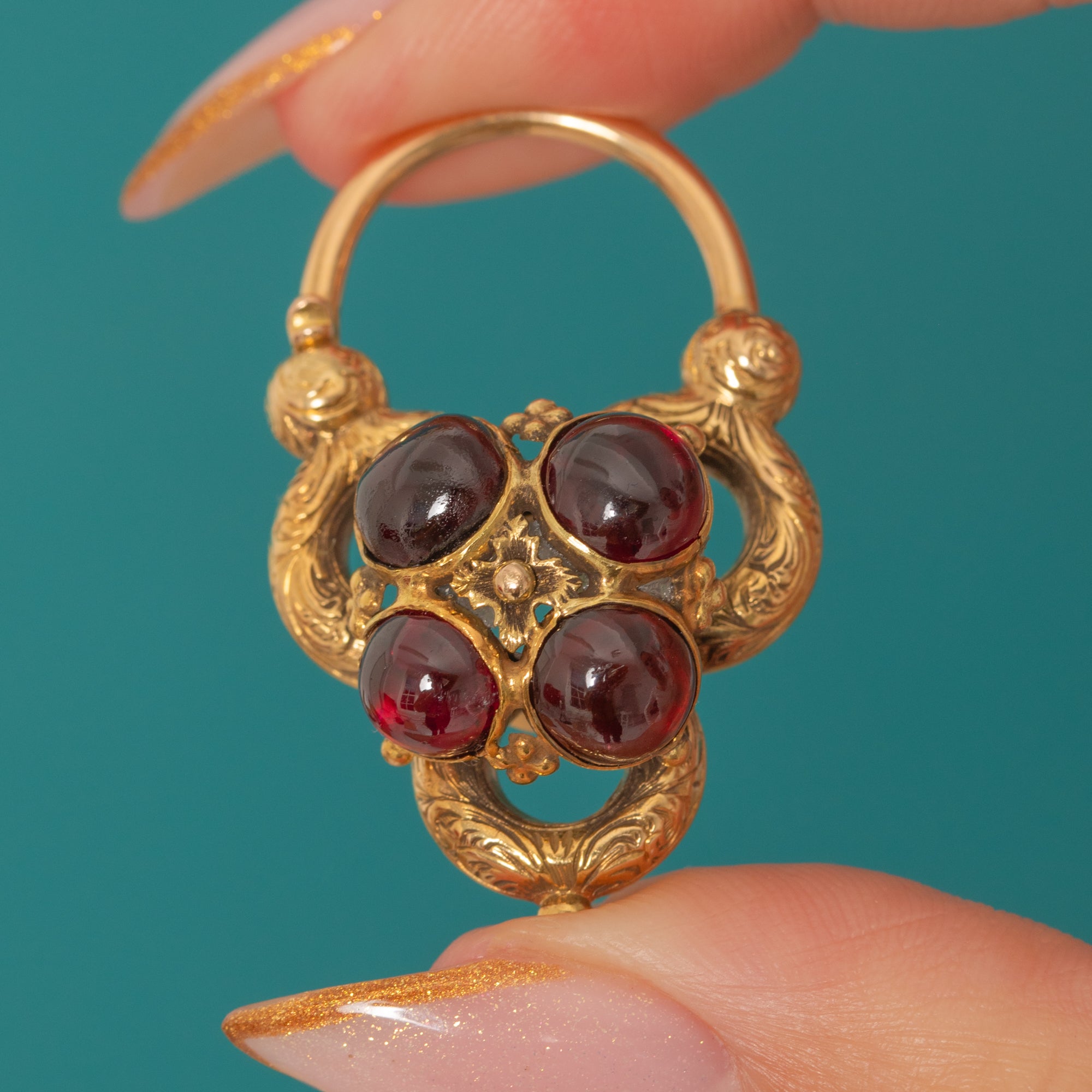 MATERIALS: Tests as 18ct Gold, Garnet.