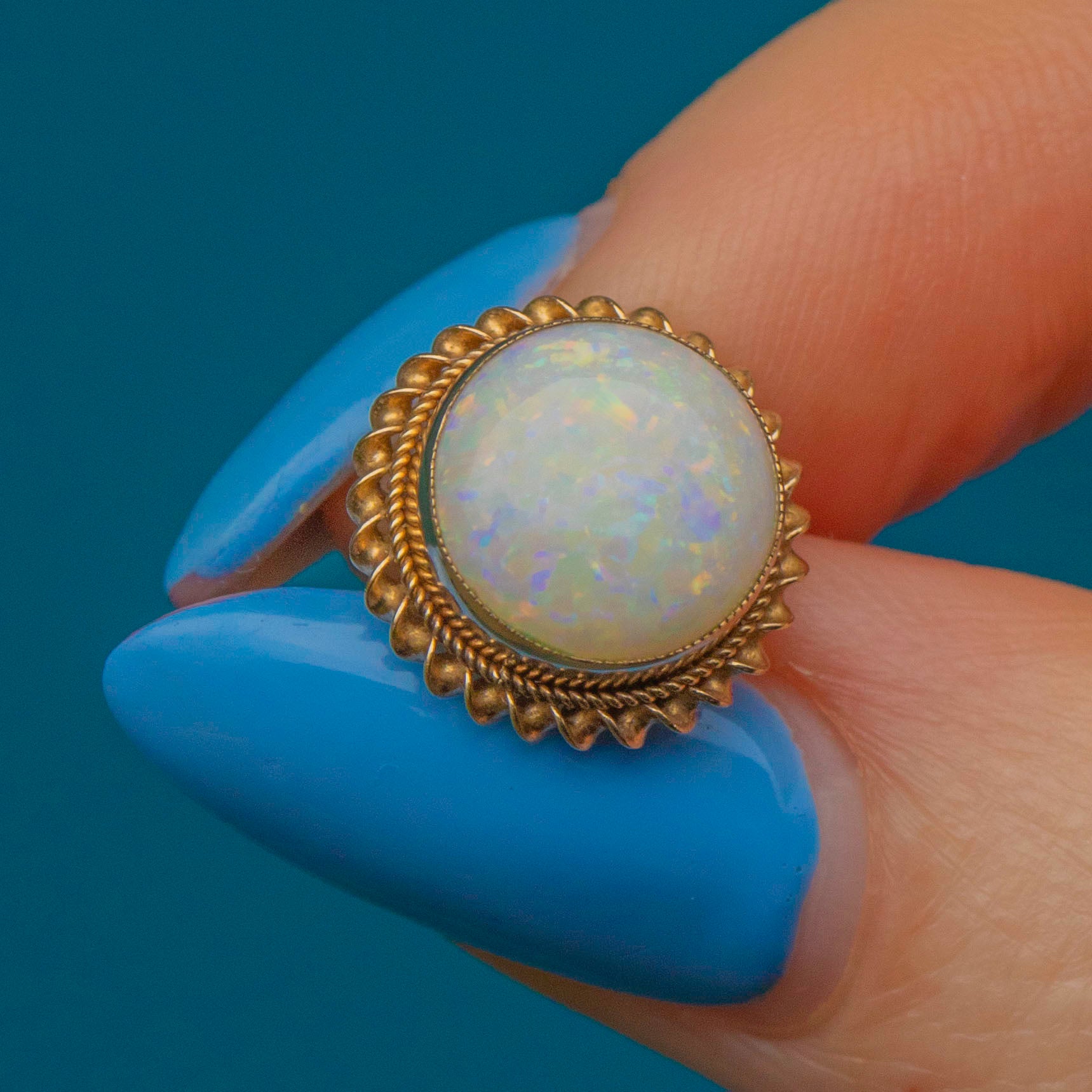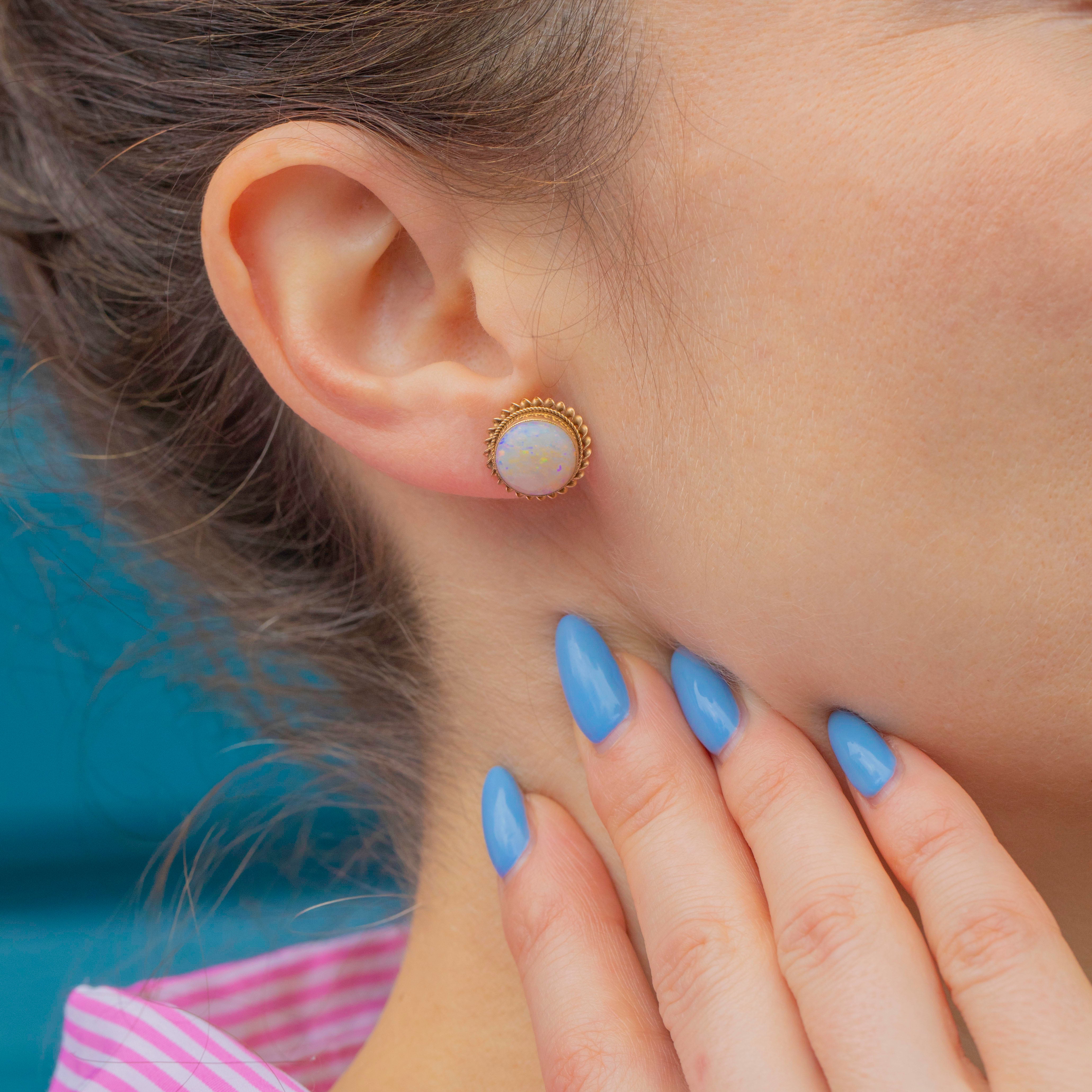 The surface of each Opal glistens as the light hits, illuminating a rainbow of colours. Complete with super wearable posts and butterfly backs, these vintage Gold studs will sit snug in your lobes all day long.