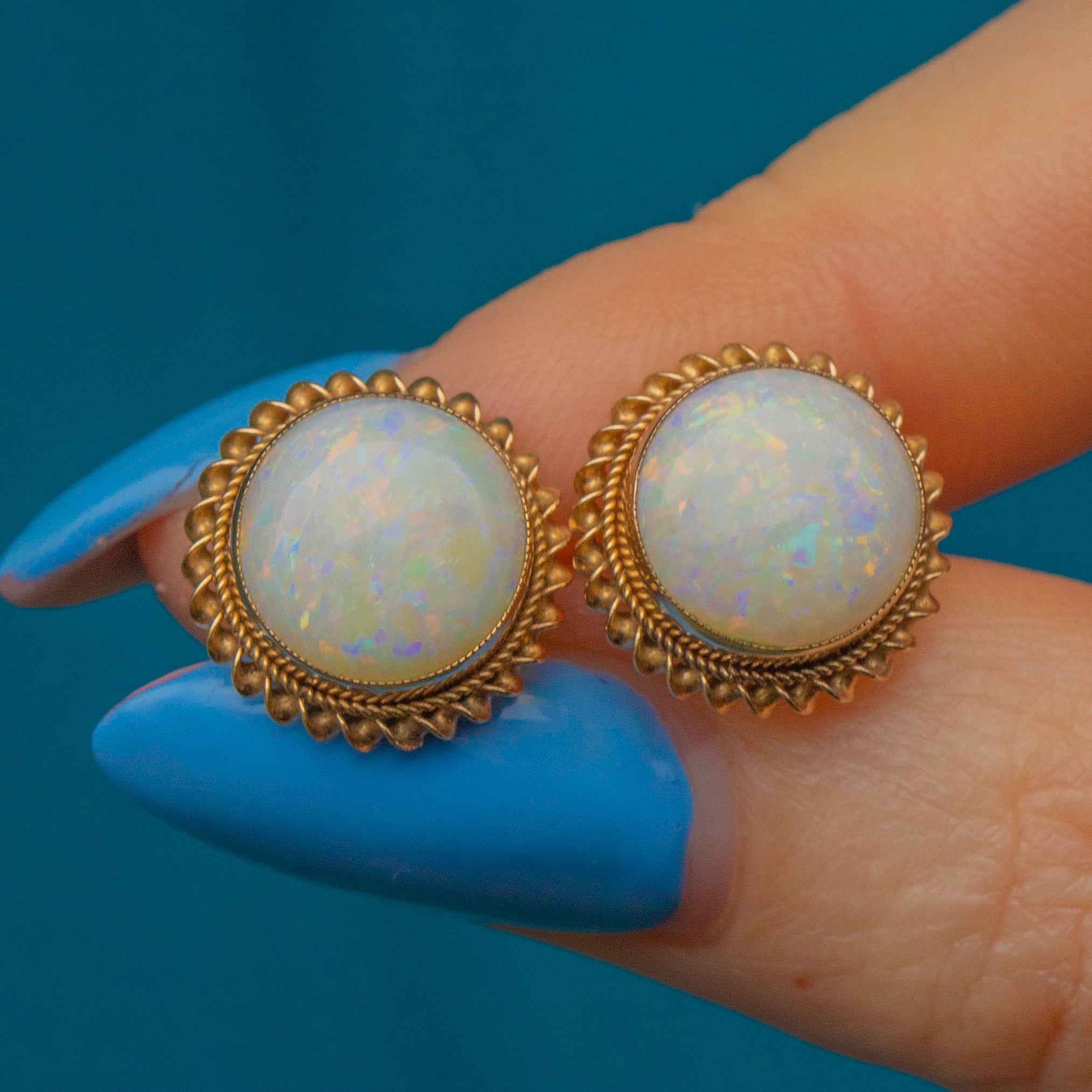 Opals are 9.5mm in diameter, weighing approx. 4.90ct combined.