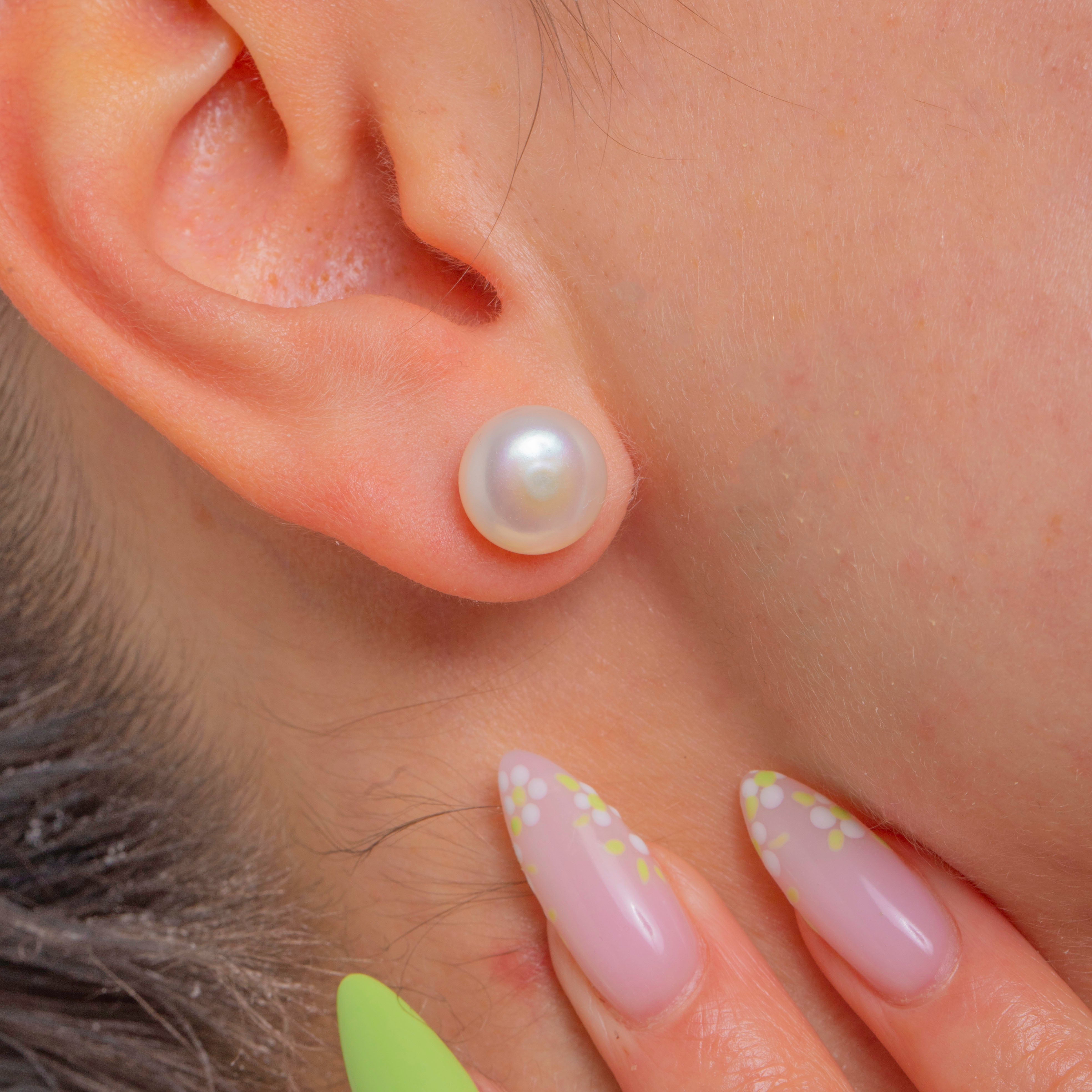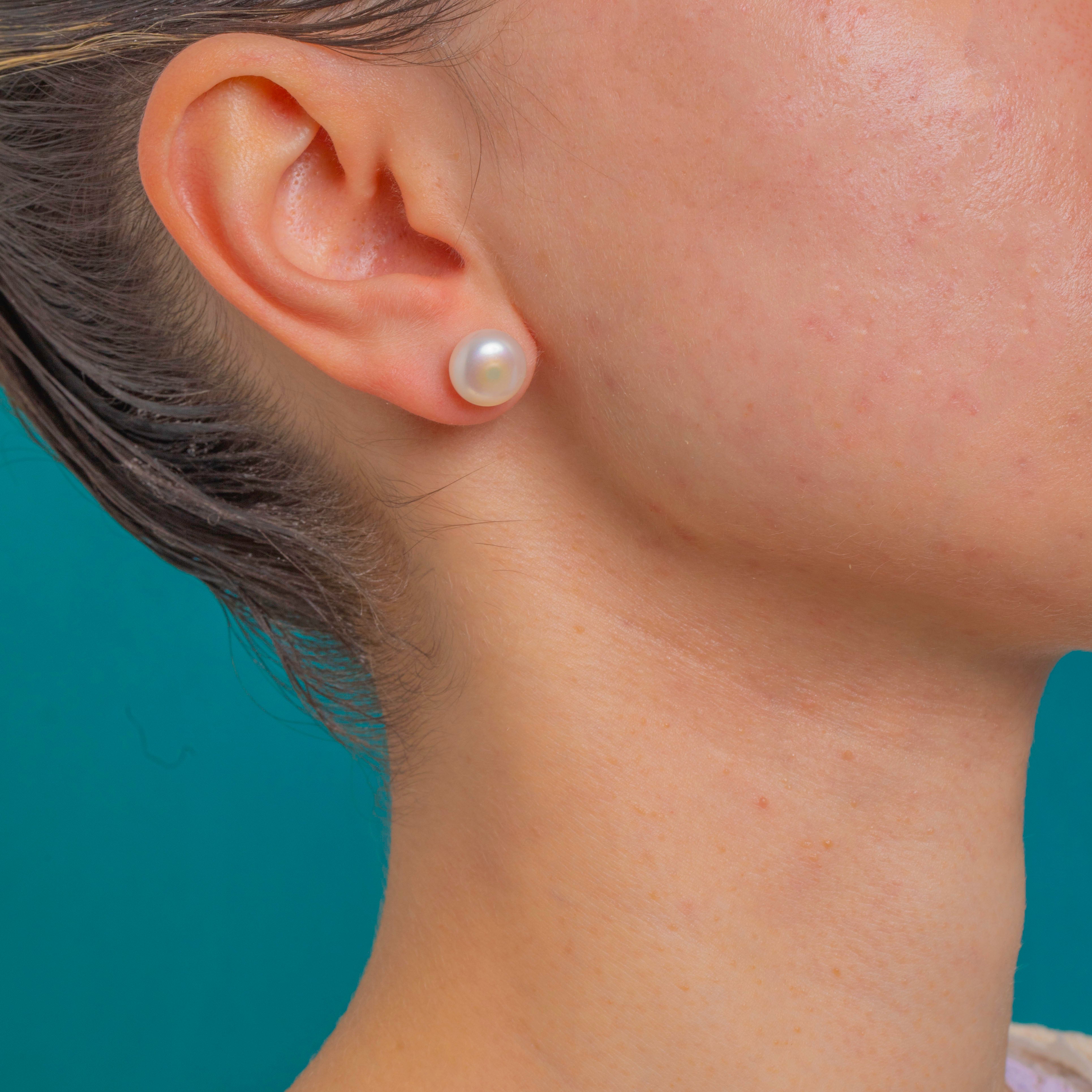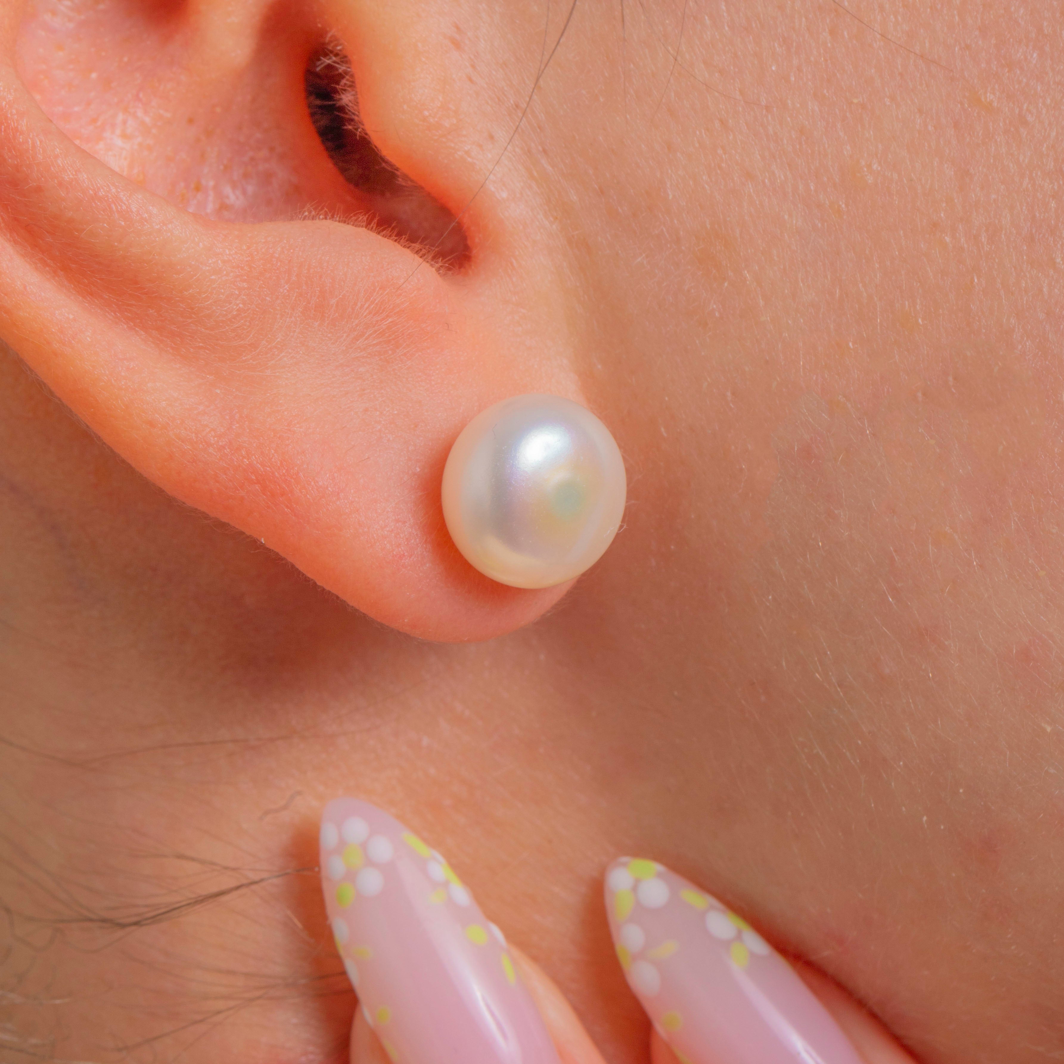 Timeless and beautifully refined, these large Pearl stud earrings are the ultimate wear-anywhere classic. Each creamy white Pearl shimmers with high lustre and soft rose–silver overtones, creating a luminous glow that flatters every look. The minimalist cup-and-post setting lets the Pearls take centre stage for a chic, understated finish.