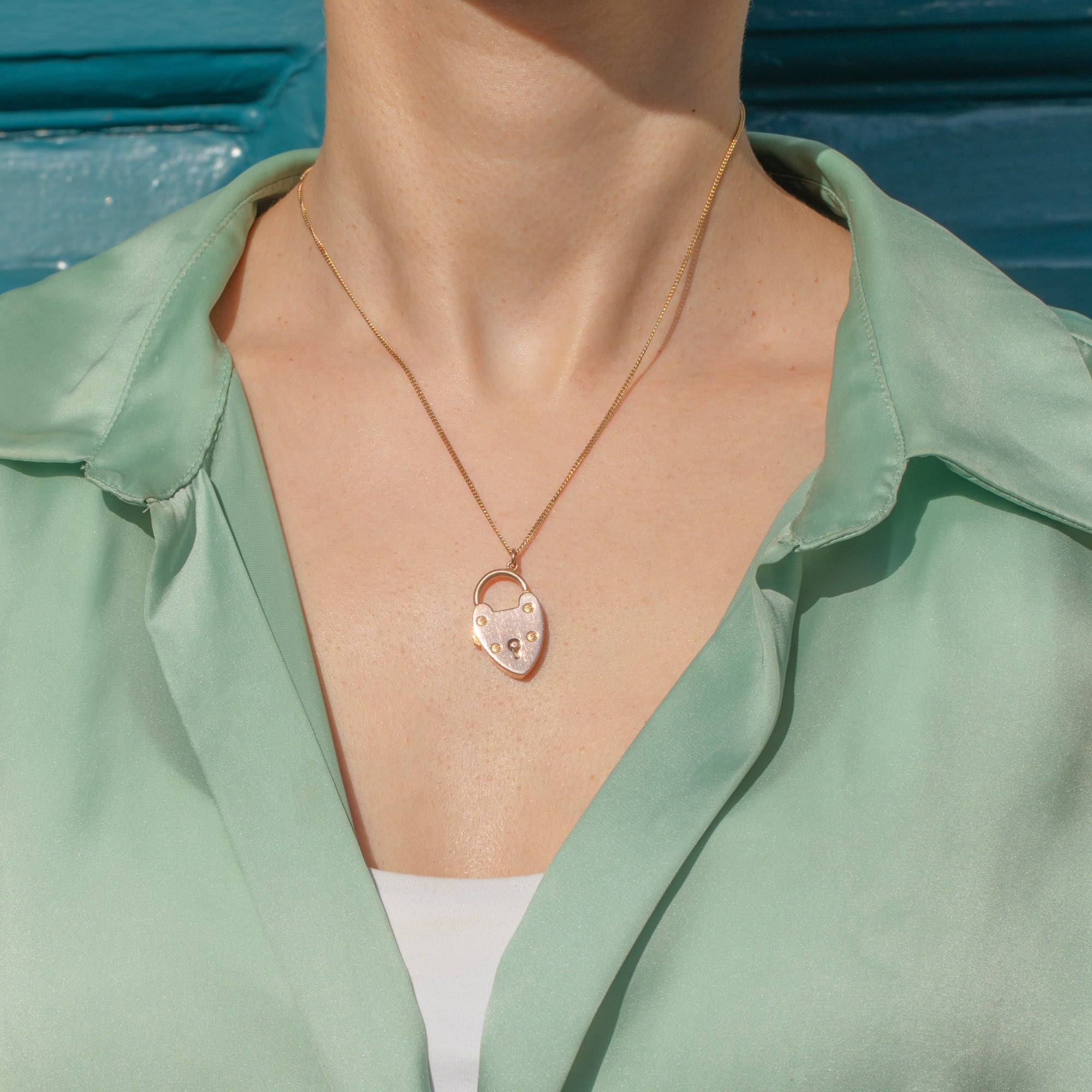 Large in size and complete with a jump-ring, she hangs at a lovely angle from a Gold chain. Hearts are a timeless symbol of love and devotion, with this sweet padlock being no exception. You are certain to emanate all things romantic with her in your possession!