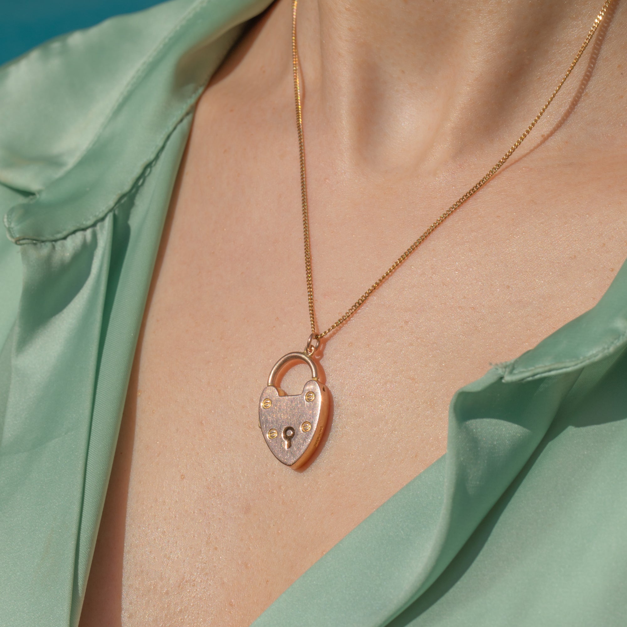 This large antique 9ct Gold heart padlock pendant will make a lovely addition to your repertoire! Composed of a buttery 9ct Gold, this antique heart pendant is gloriously glossy and smooth to the touch.