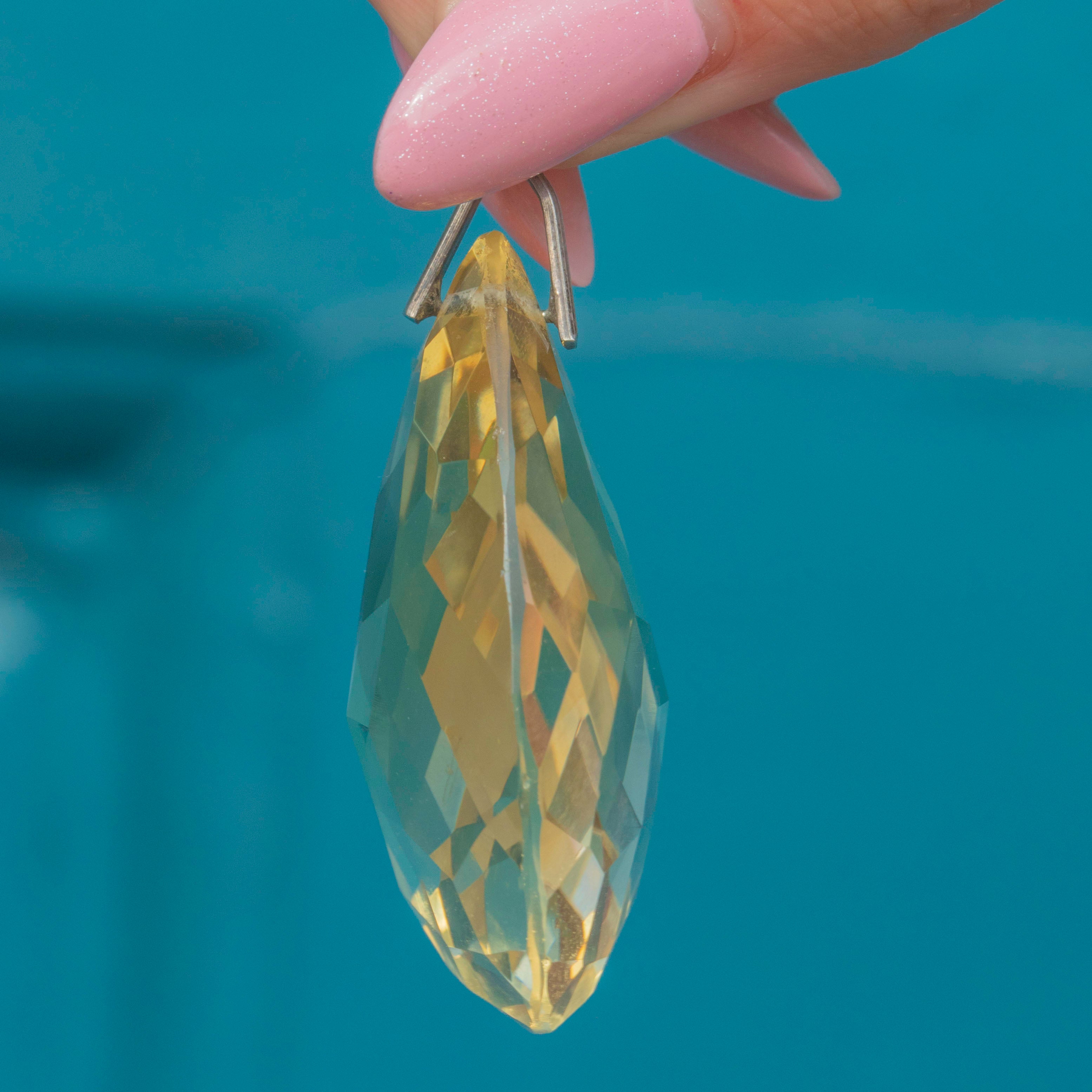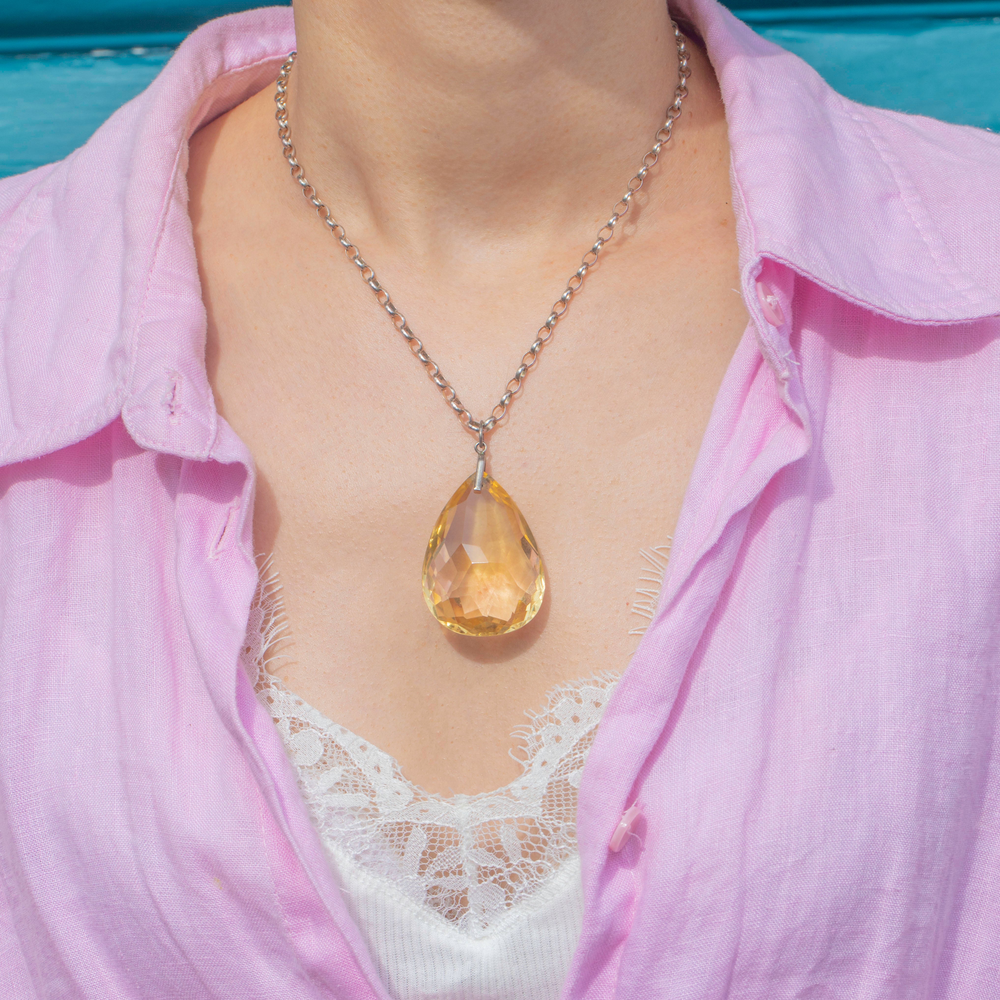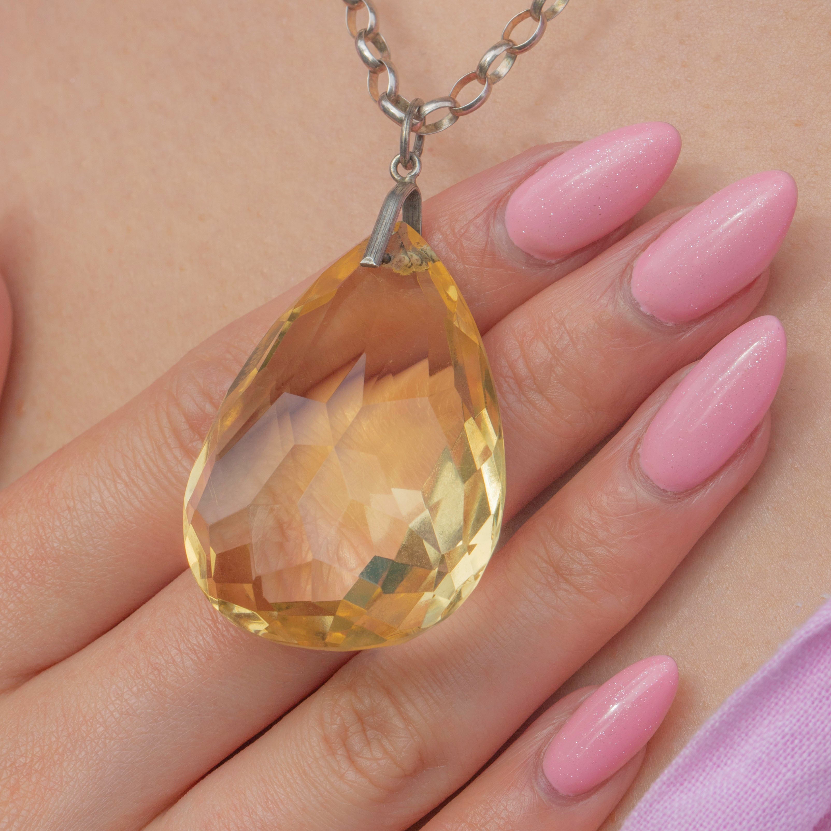 The 76.00ct Citrine has crisp cut facets that catch the light from every angle, revealing a soft peachy yellow hue. We imagine this pendant looking best with a skinny Silver chain so she can take centre stage!