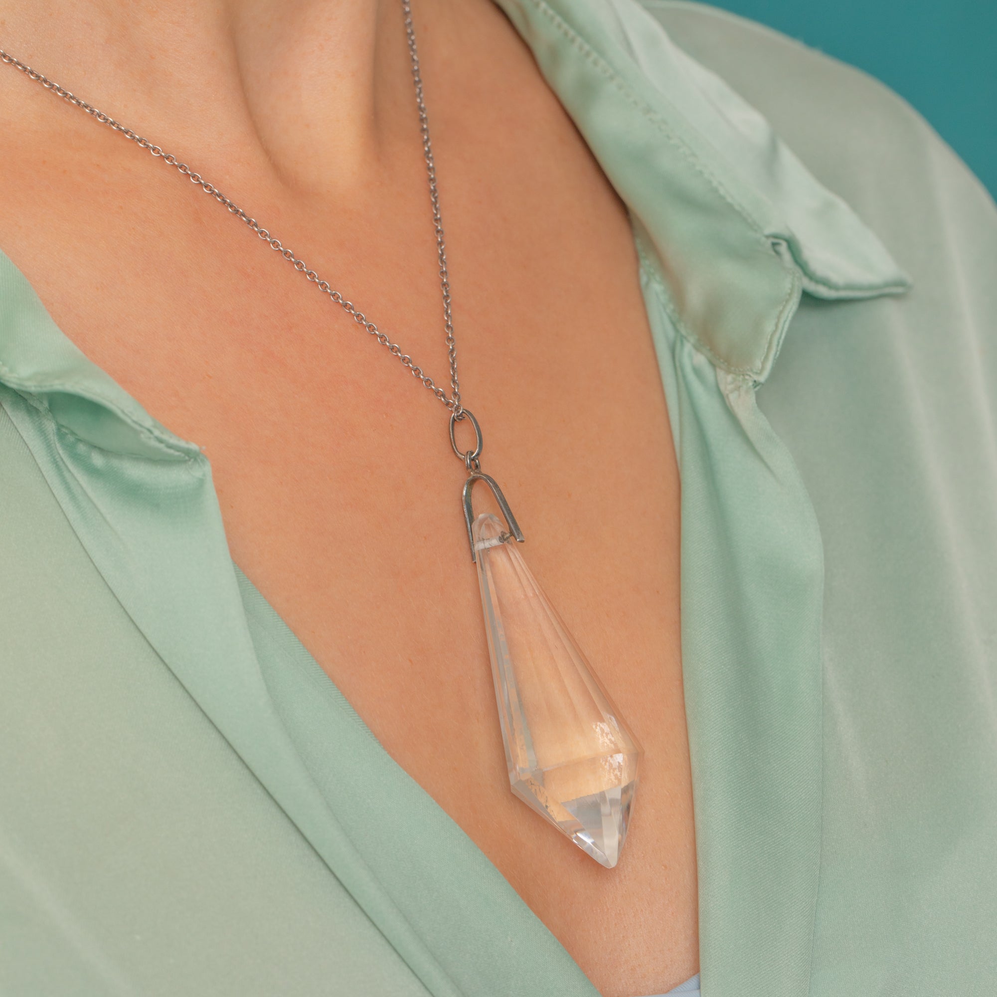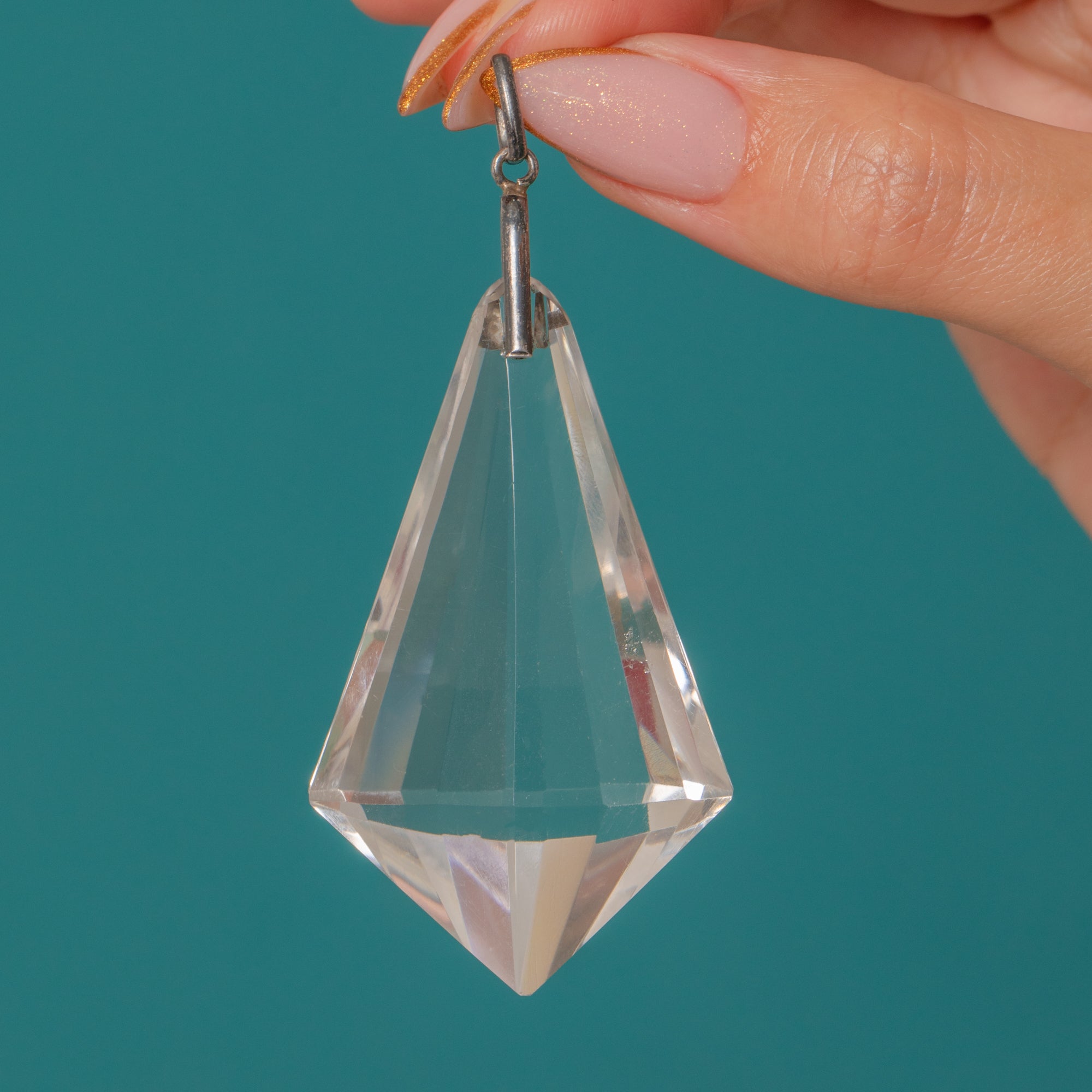 Large Art Deco Silver Faceted Rock Crystal Pendant- 120.00ct