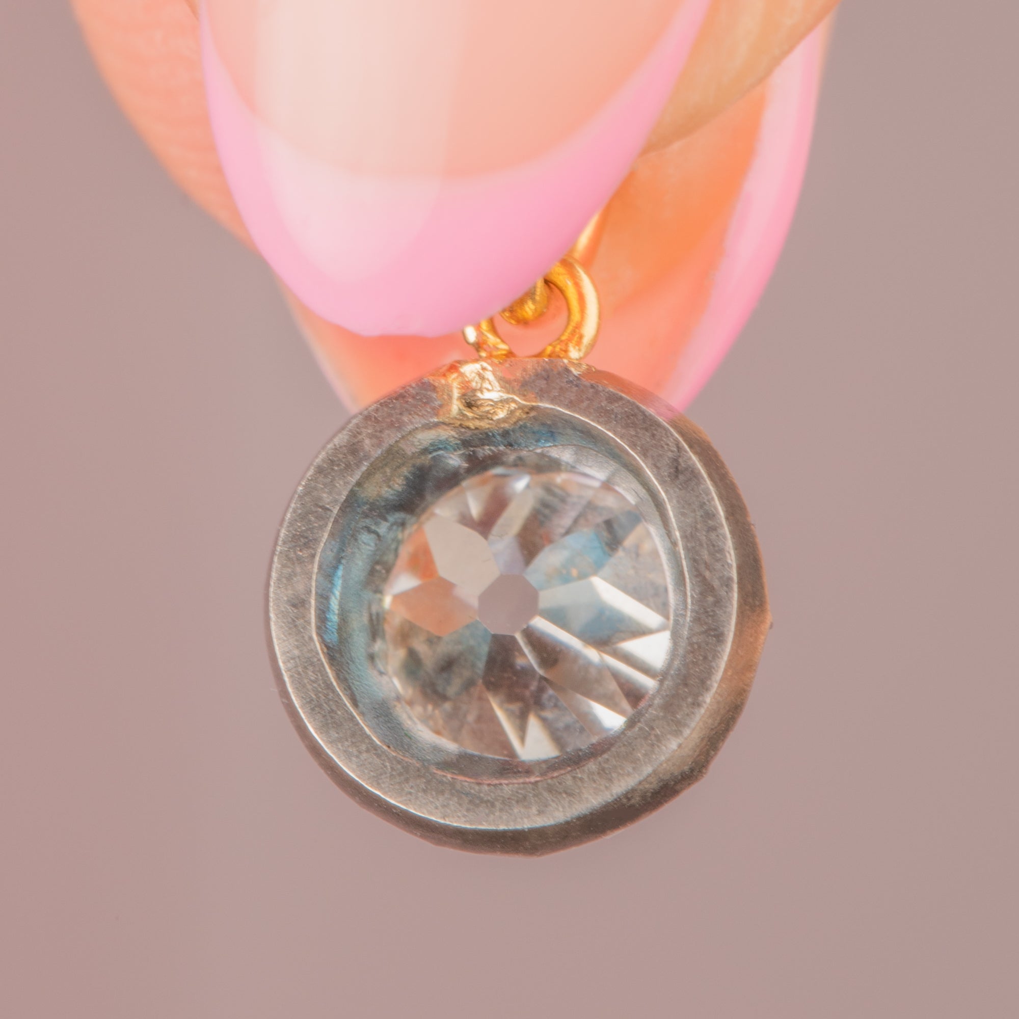 Don't miss the chance to add this Georgian old-mine-cut Diamond charm to your antique jewellery collection! This antique Diamond charm is home to a 0.90ct old-mine-cut Diamond set in a classic Silver Georgian pie crust setting, with an 18ct Gold hasp and jump ring to finish.