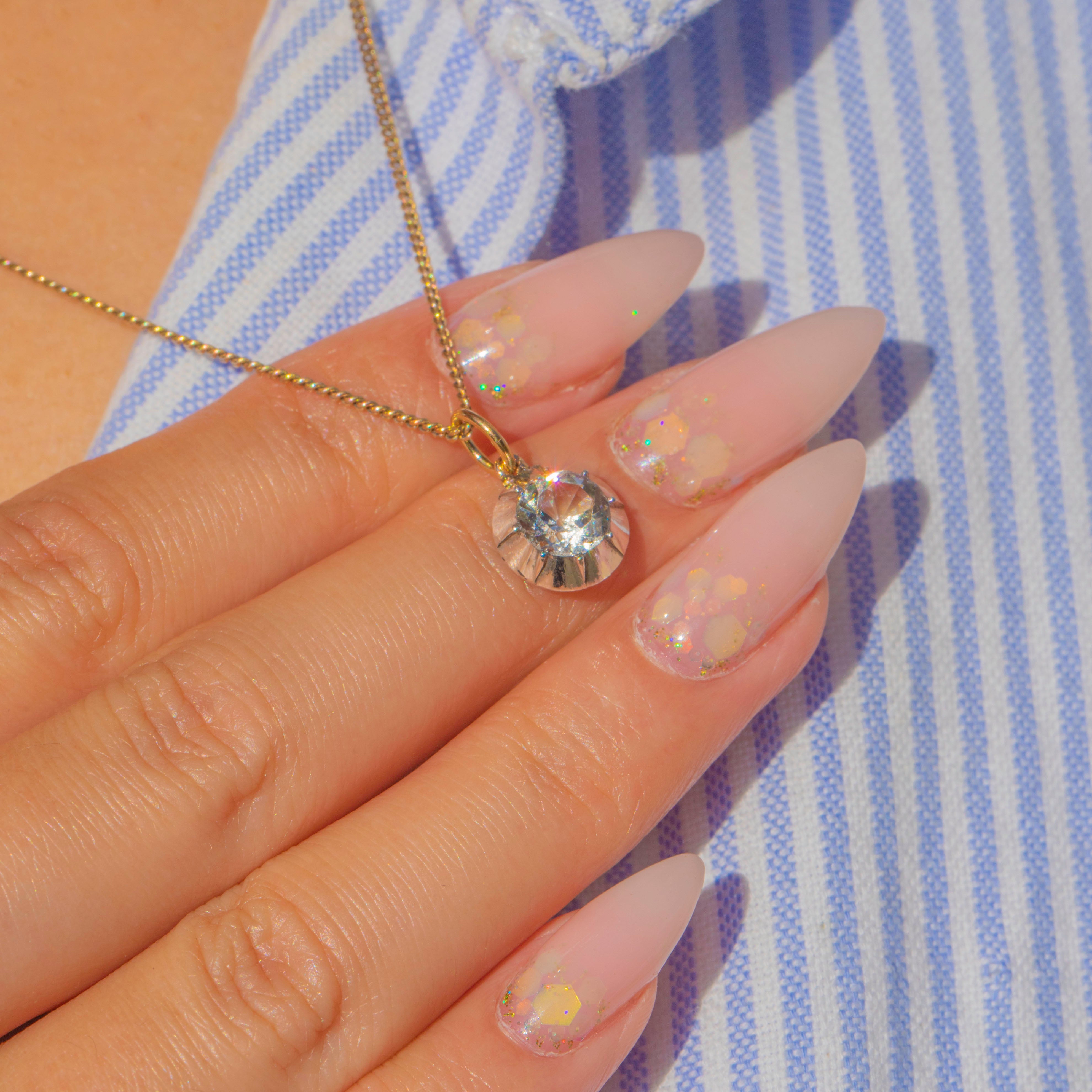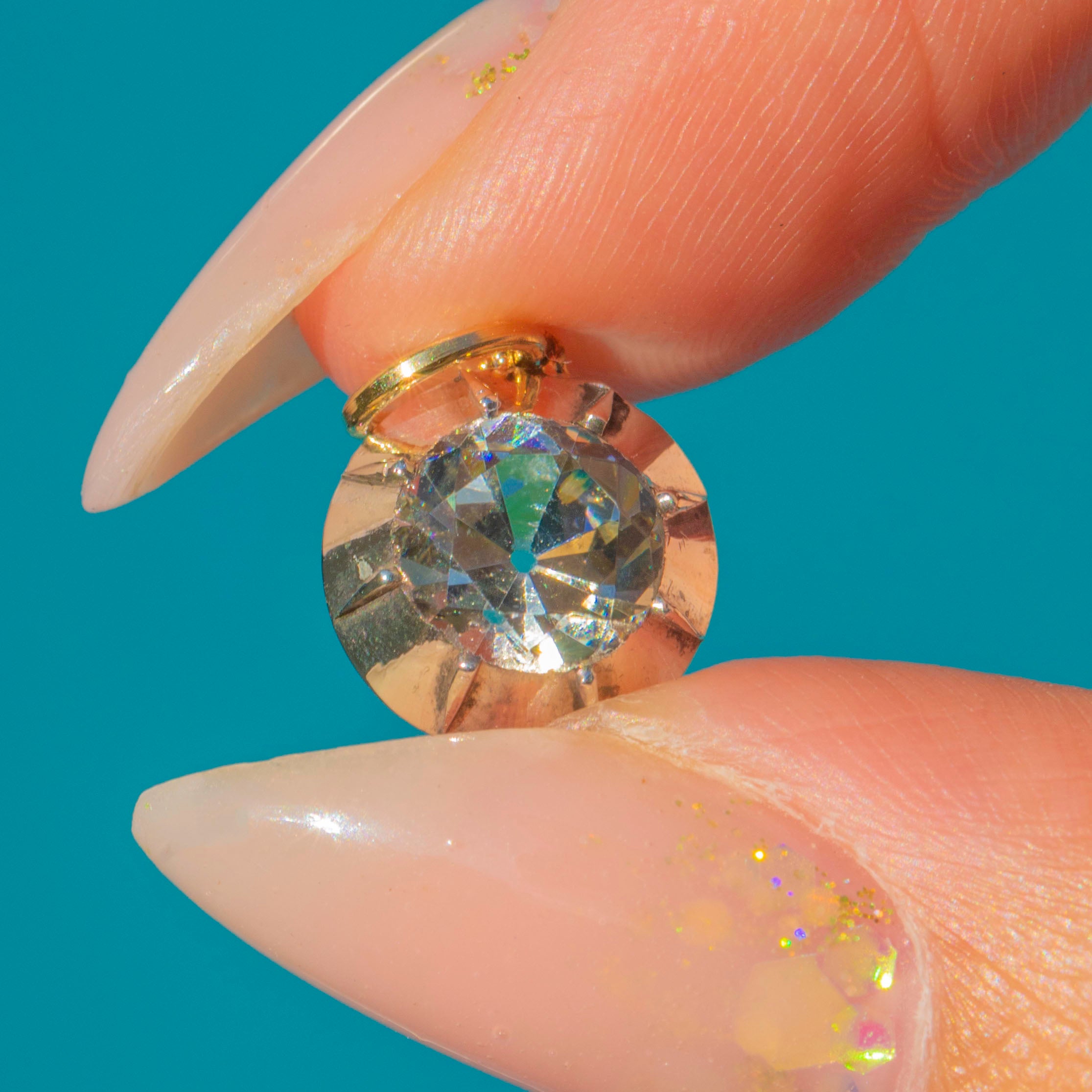 This large Georgian charm showcases a glittering white Paste stone, set in a striking Silver collet with a rich 18ct Gold jump ring. Measuring 6.5mm across, the stone is equivalent in size to a 1.10ct Diamond, giving it impressive presence and sparkle.