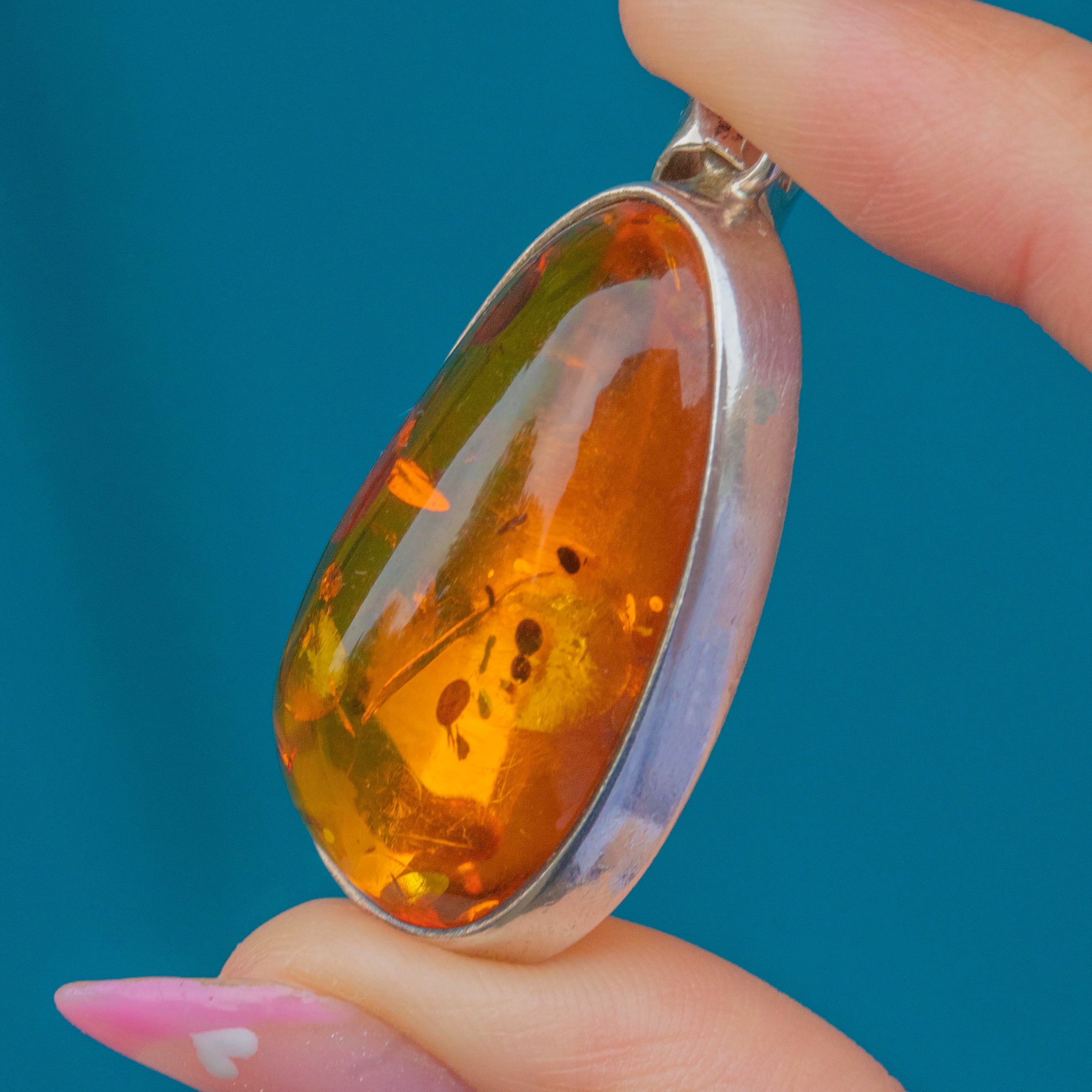 VERY GOOD TO EXCELLENT: The Amber is in beautiful condition with natural inclusions and rich internal detail. The Silver has a bright finish with only minimal light wear consistent with age. Well cared for throughout.