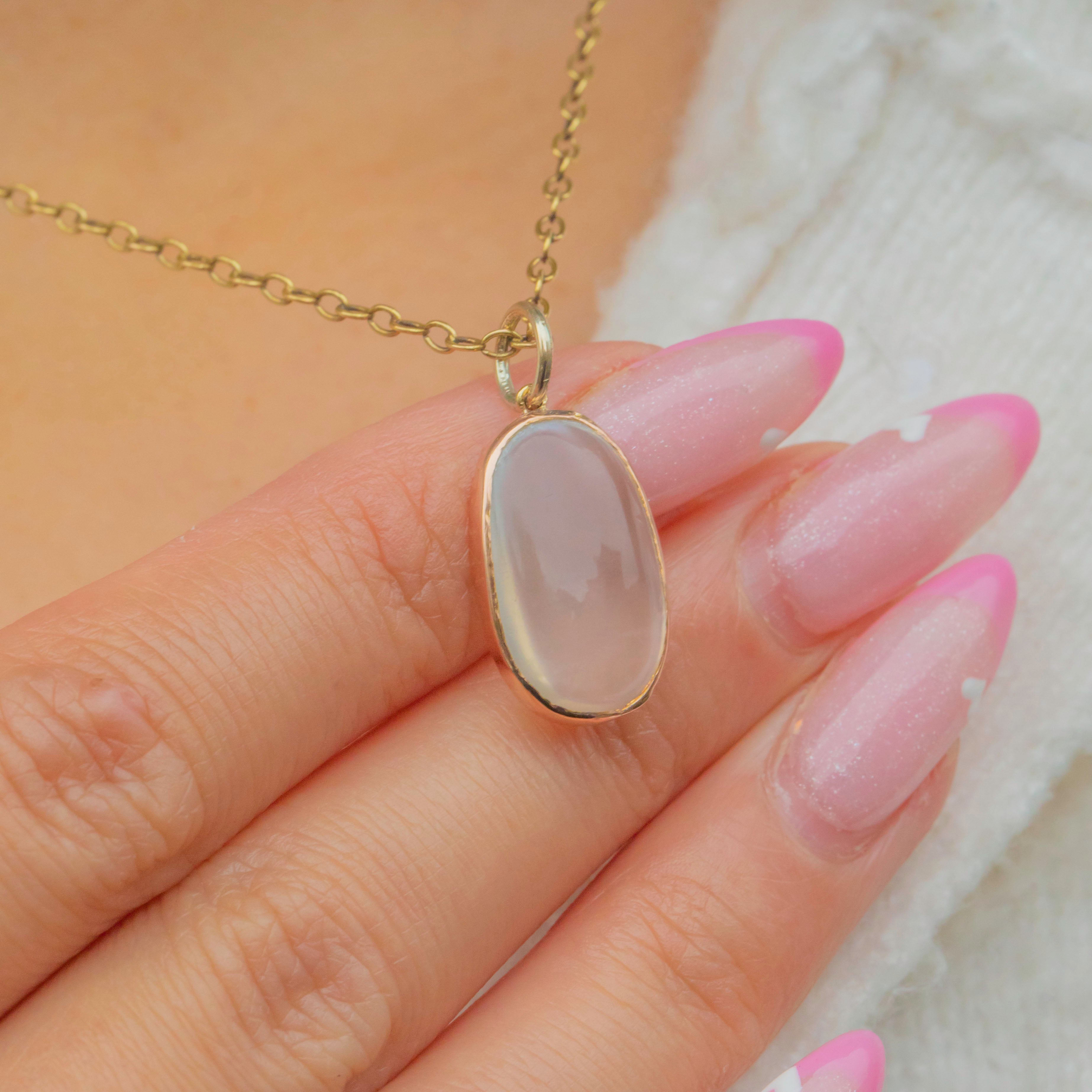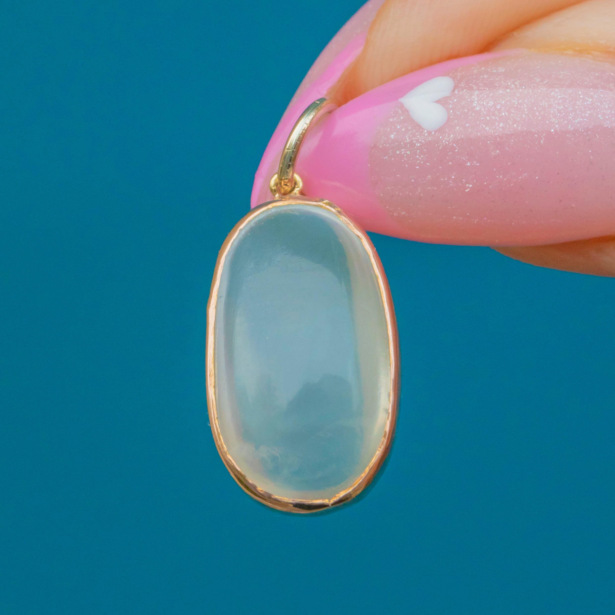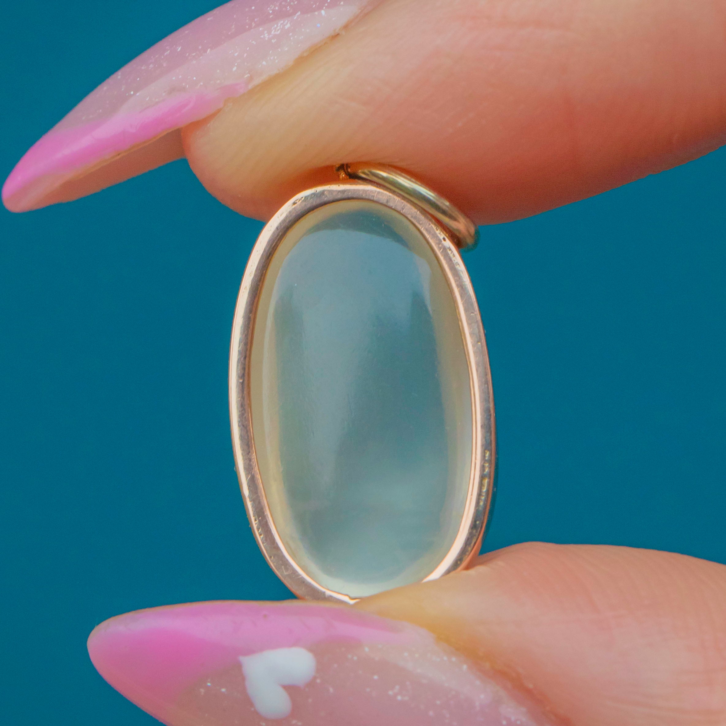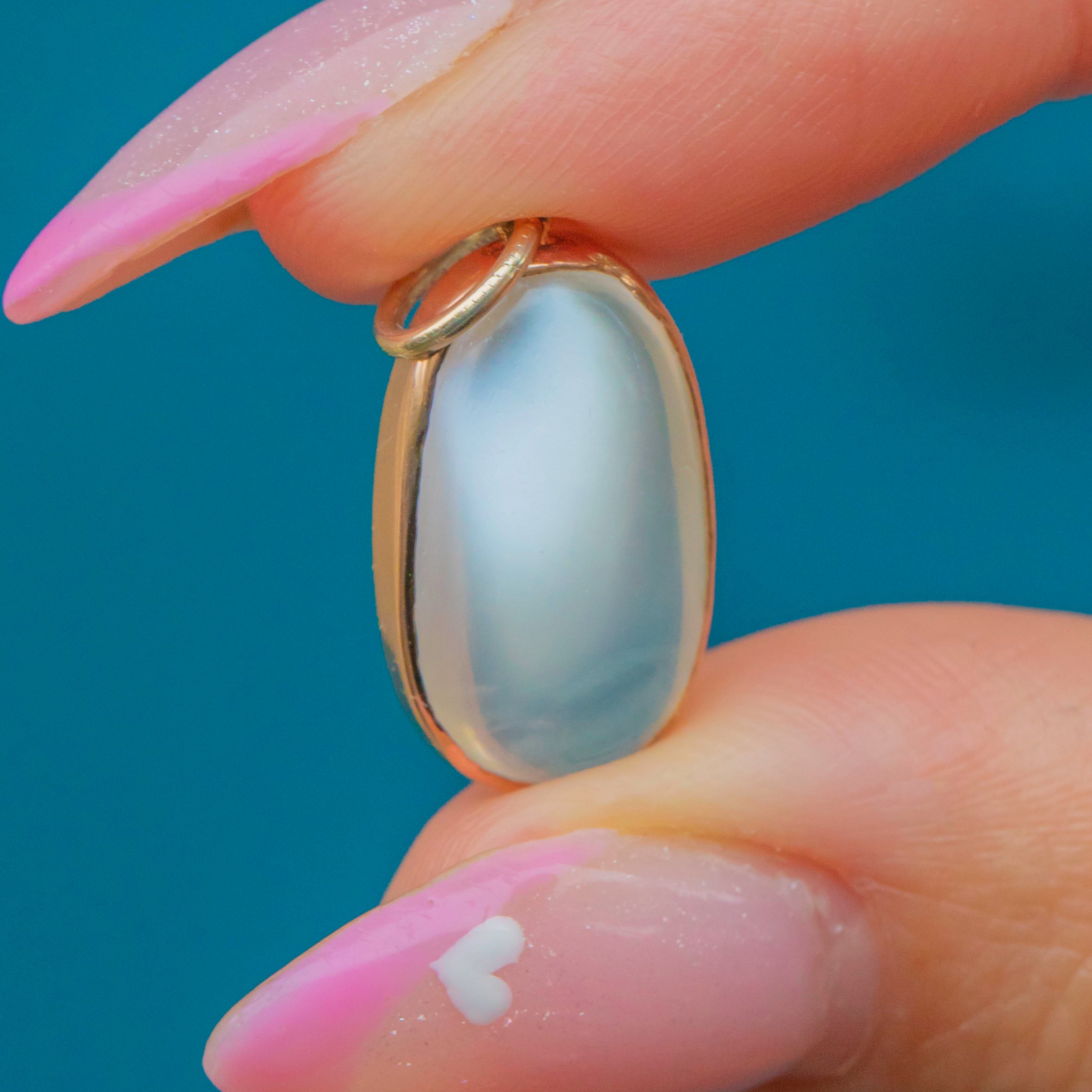 This beautiful Victorian charm features a luminous oval Moonstone set in warm 9ct Gold. The gem displays a soft, ethereal adularescence with natural inclusions visible beneath the surface, hallmarks of a genuine antique Moonstone.