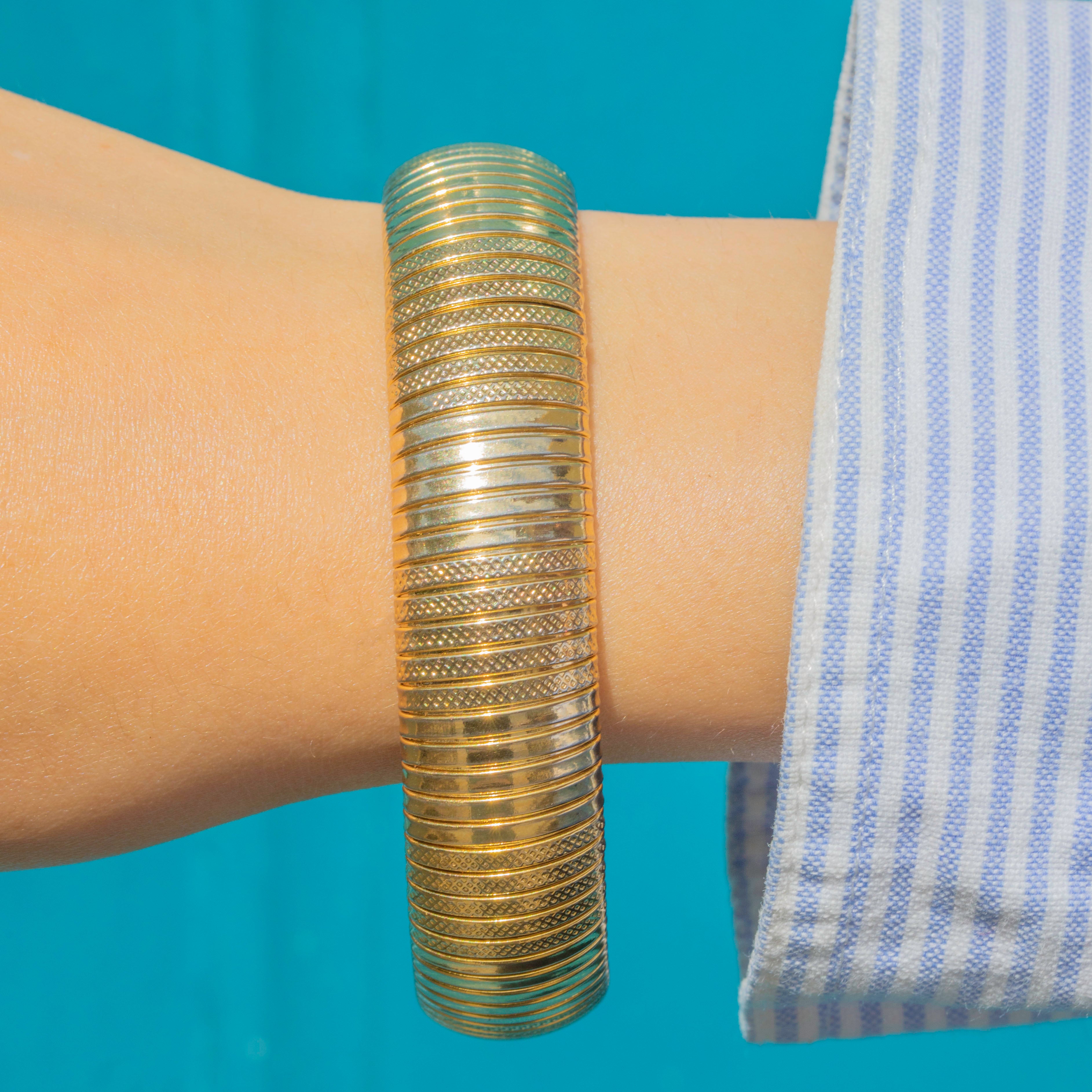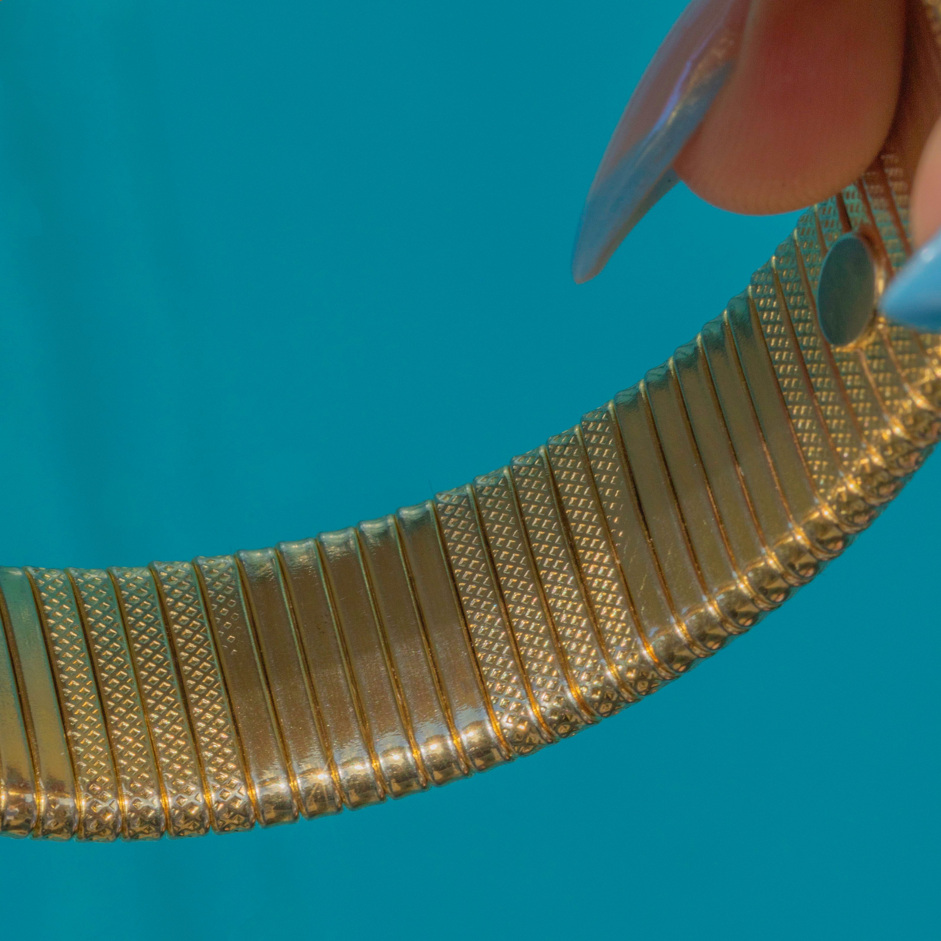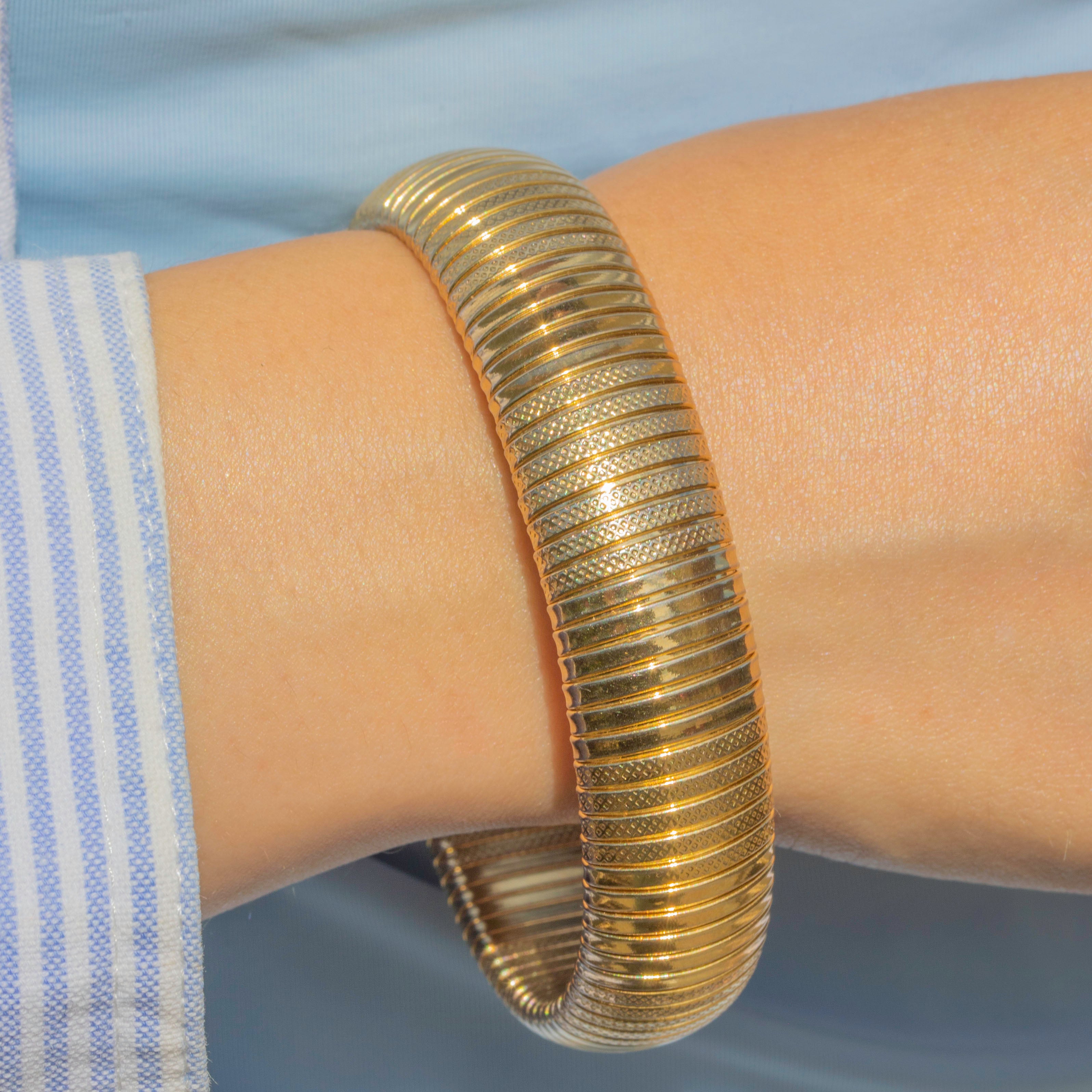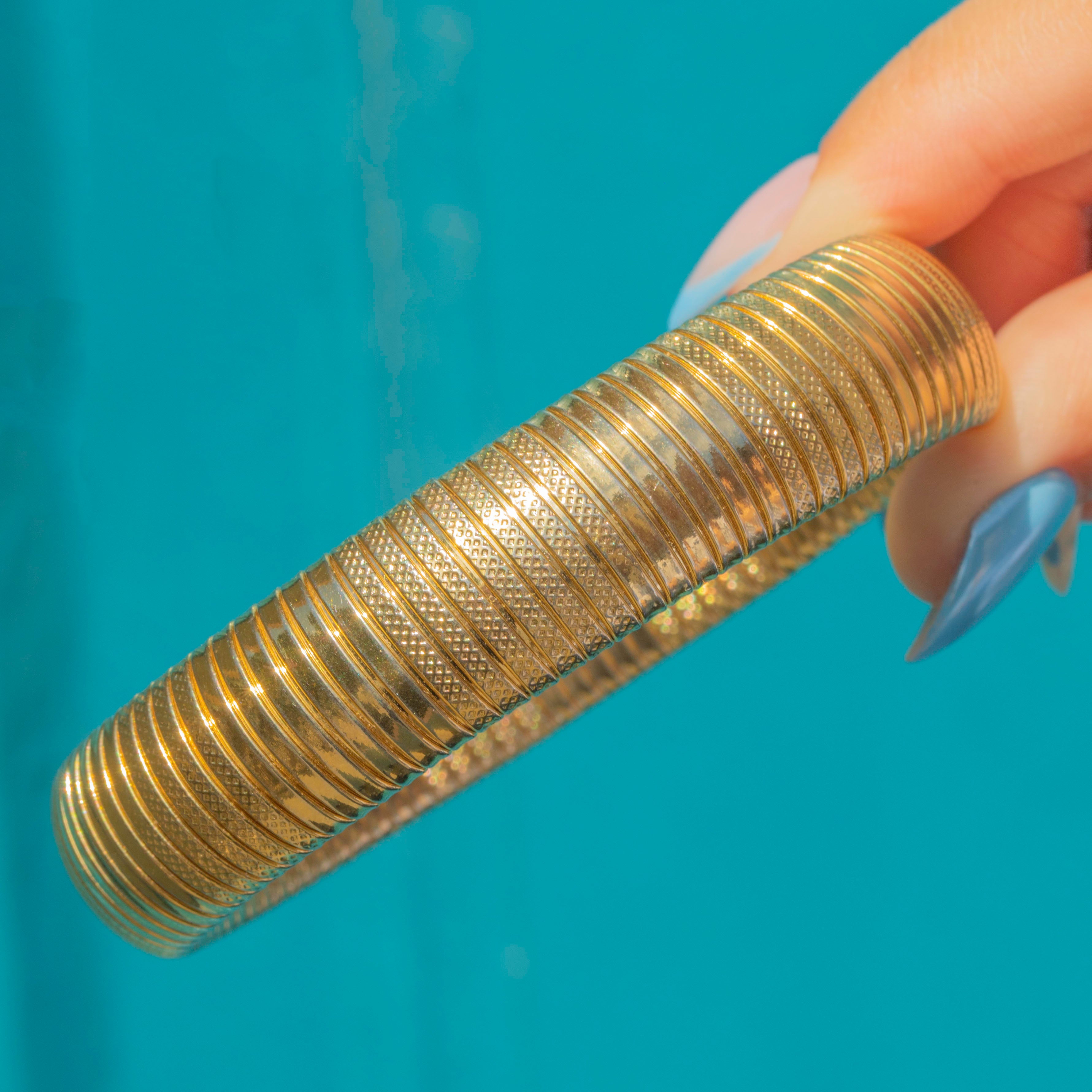 This chunky vintage bracelet is crafted from bright and glossy rolled Gold, with its gas pipe formation providing a wonderful texture and depth.