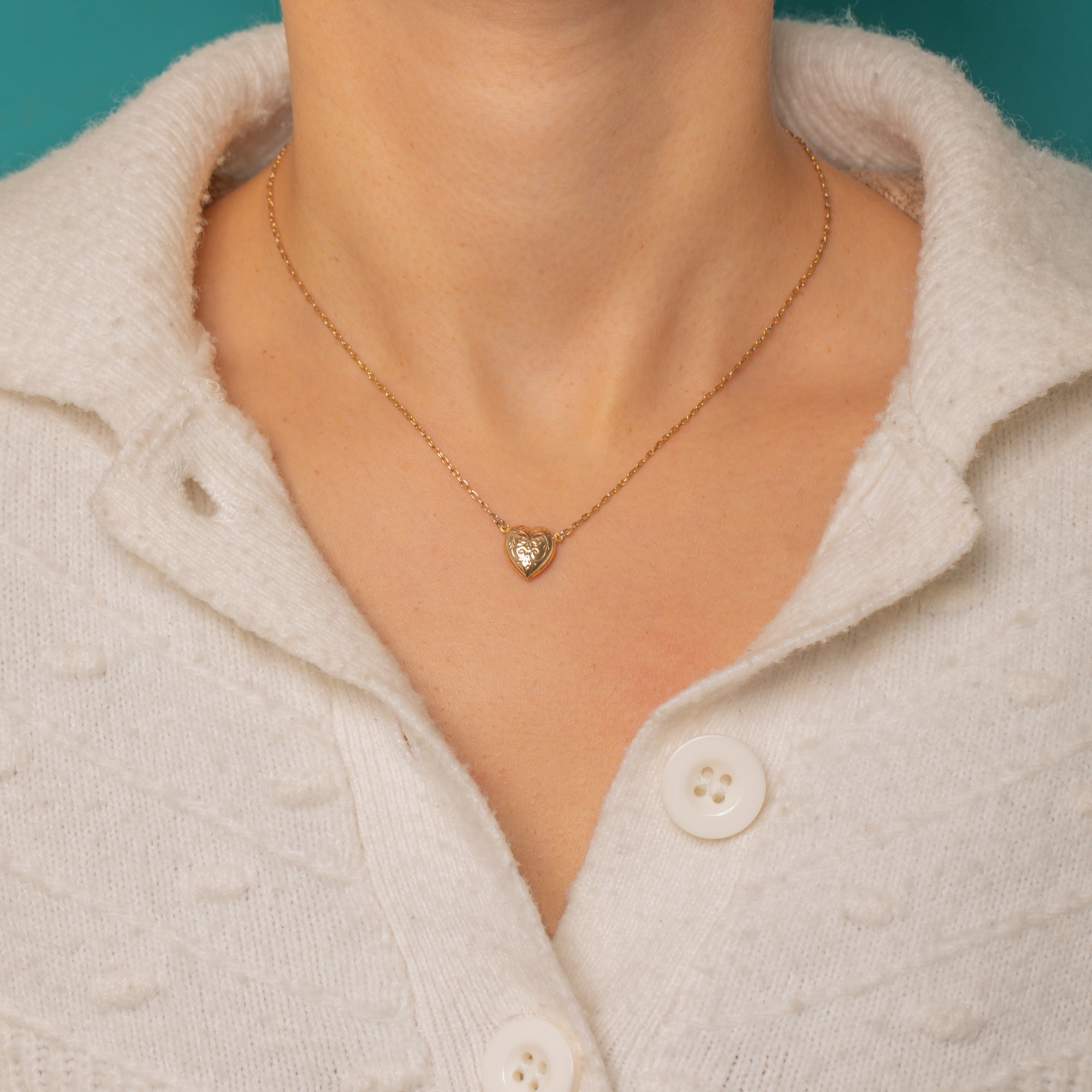 Mid-Century Vintage 9ct Gold Repousse Heart Necklace